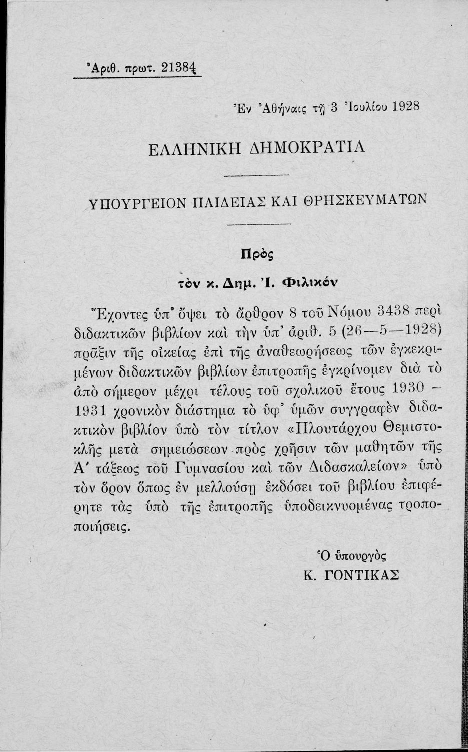 Υπουργική απόφαση / Σύμβαση: 21384/26-5-1928