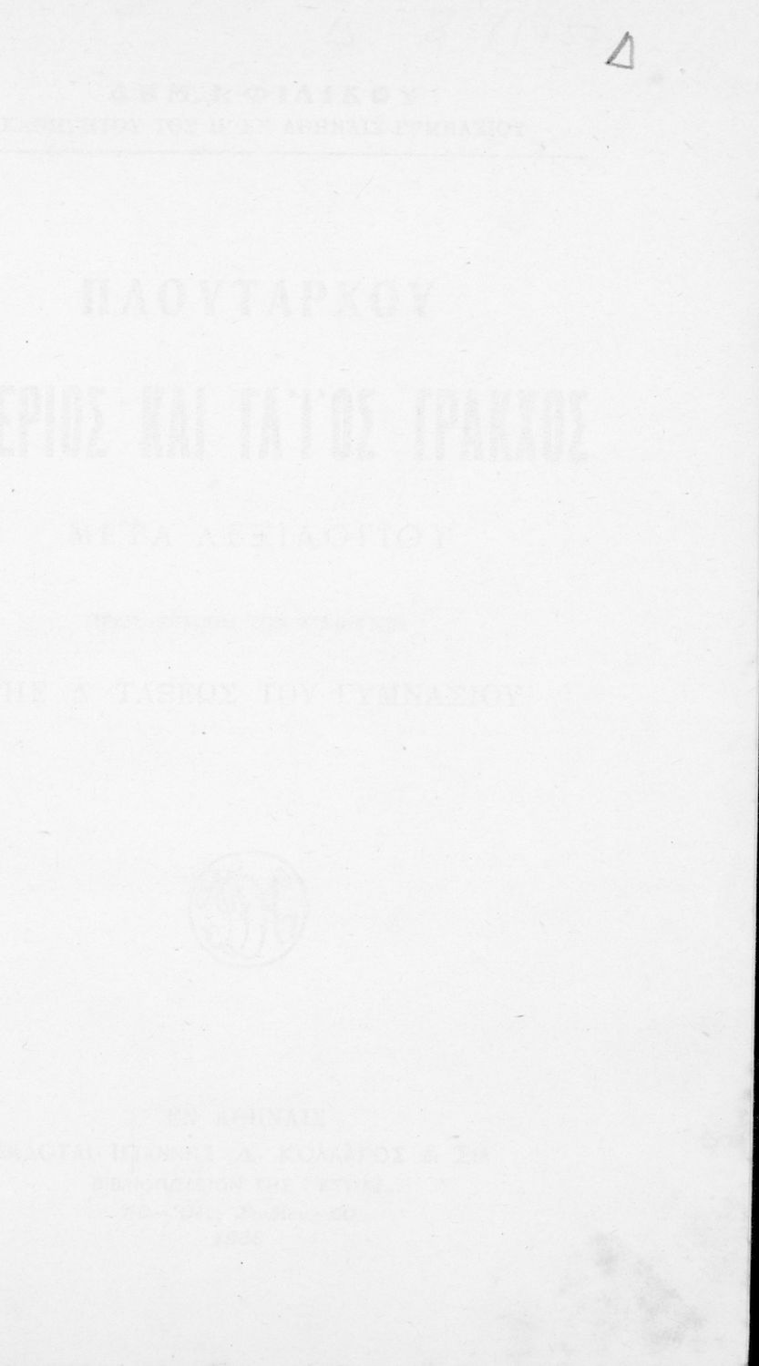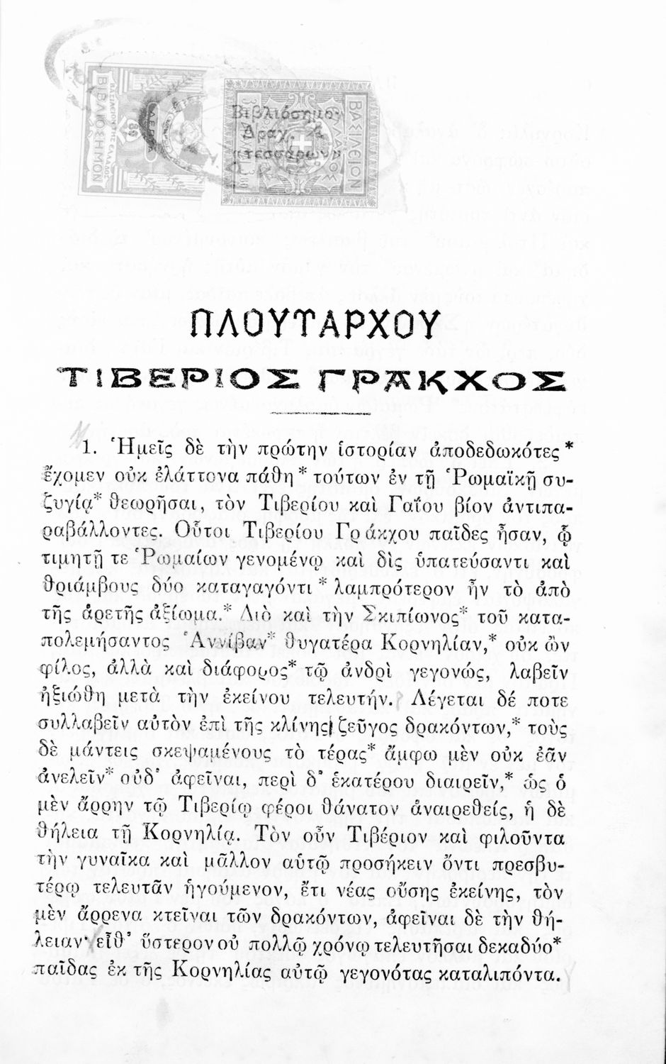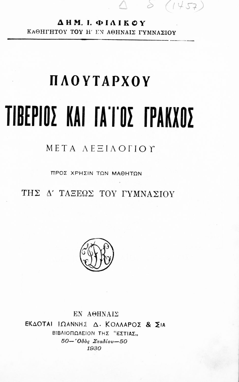 Τίτλος: Πλουτάρχου Τιβέριος και Γάιος Γράκχος μετά λεξιλογίου προς χρήσιν της Δ΄ τάξεως του Γυμνασίου