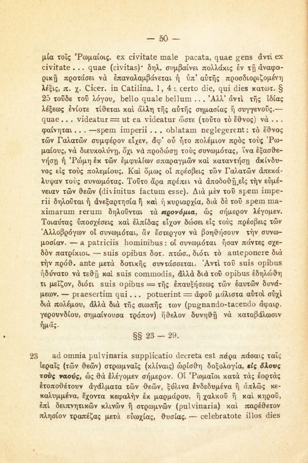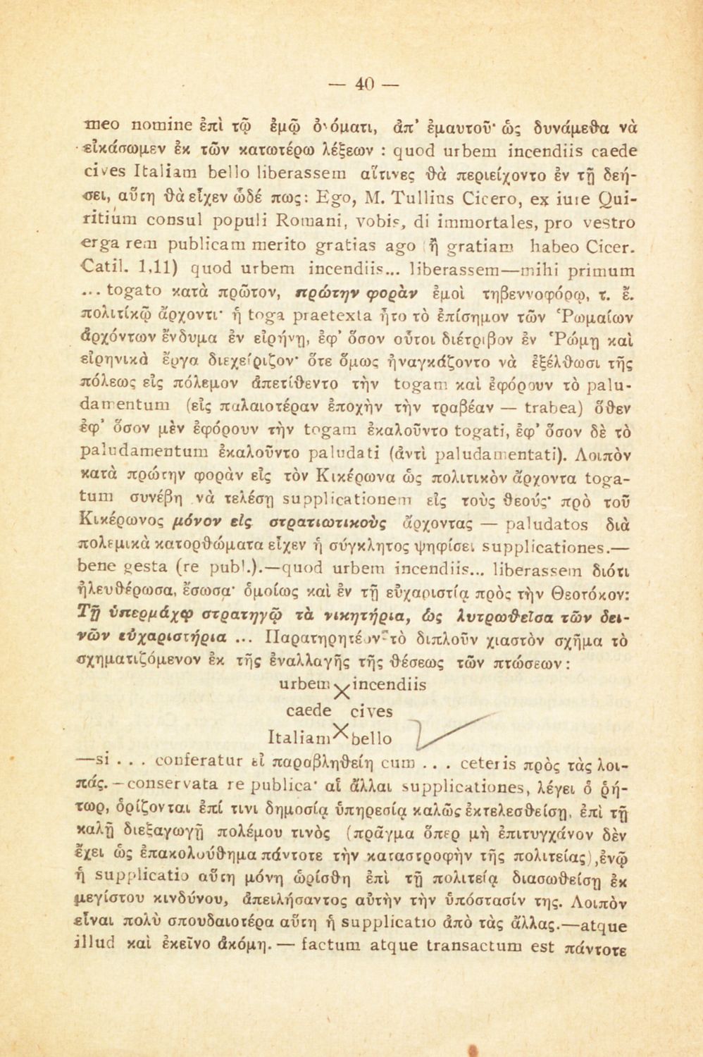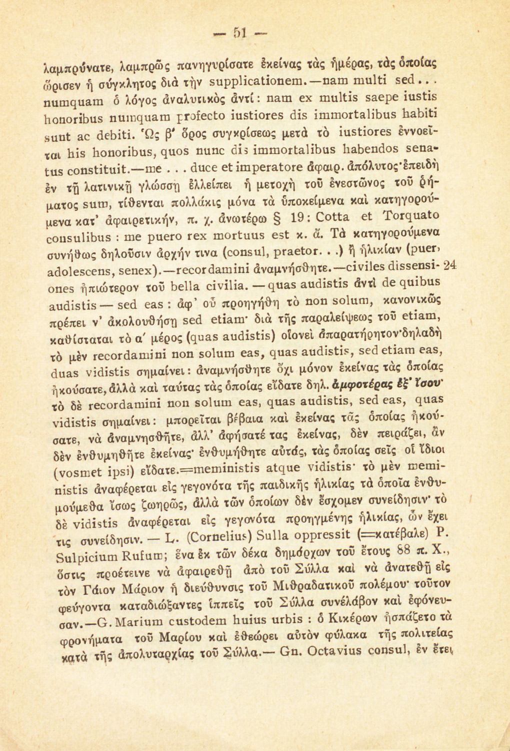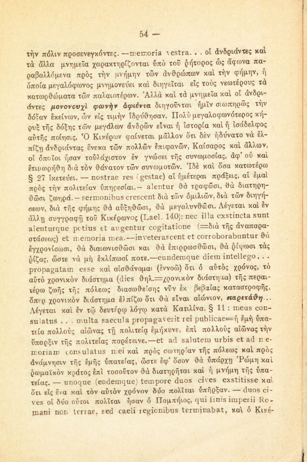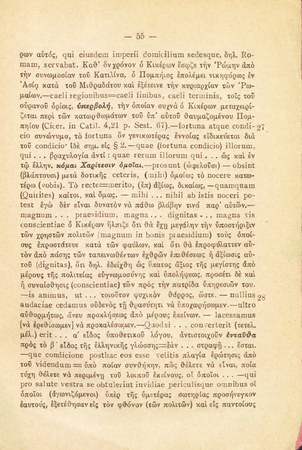 Σχολικό εγχειρίδιο Λατινικών για τη Γ΄ Γυμνασίου που περιλαμβάνει κείμενο, βιογραφικό σημείωμα του Κικέρωνα, εισαγωγικές παρατηρήσεις και ερμηνευτικές σημειώσεις.