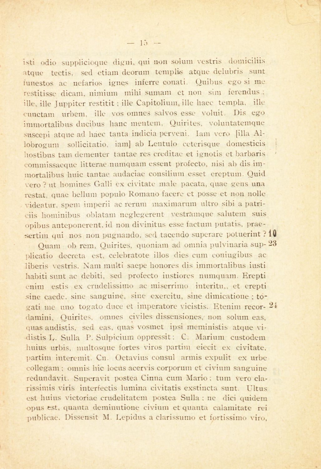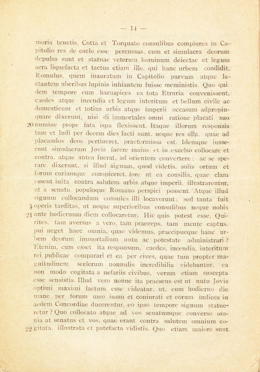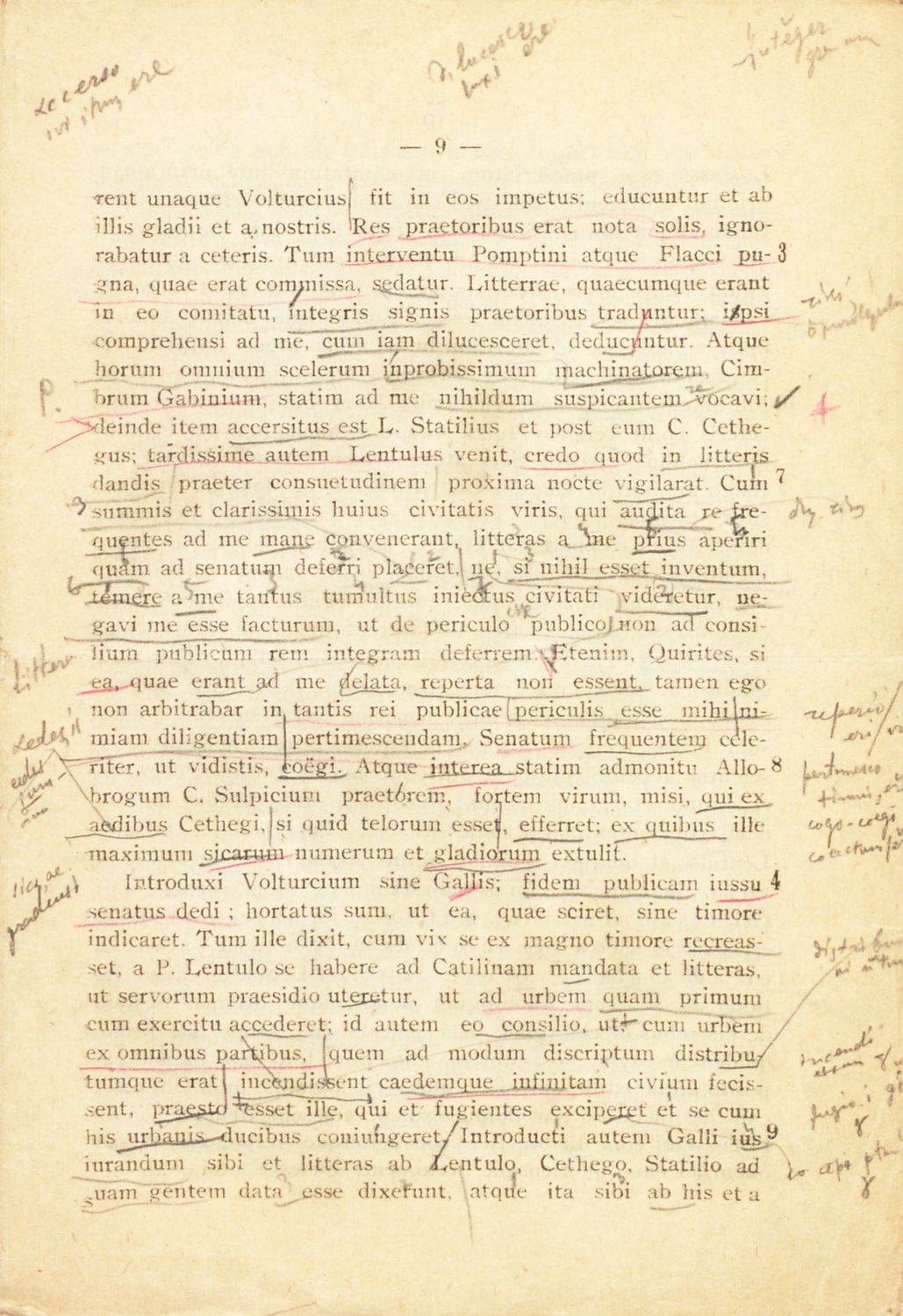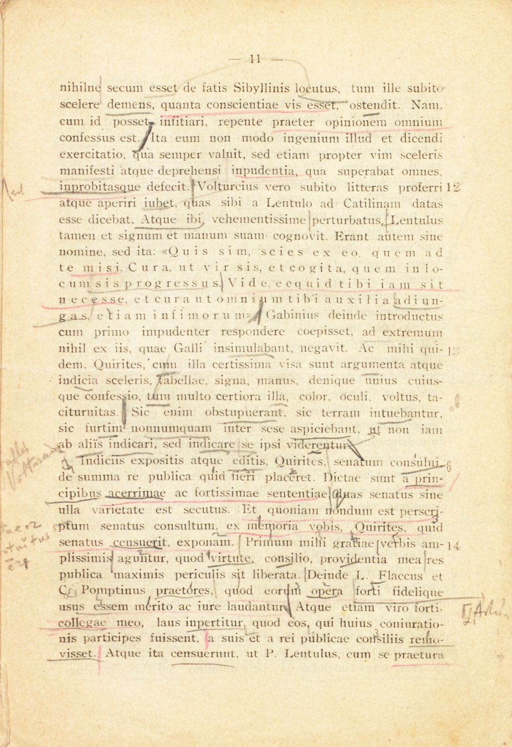 Σχολικό εγχειρίδιο Λατινικών Γ΄ Γυμνασίου που περιλαμβάνει την εισαγωγή στο έργο και τη ζωή του Κικέρωνα, το λατινικό κείμενο του Τρίτου Λόγου κατά Κατιλίνα και ερμηνευτικά, γραμματικά και πραγματολογικά σχόλια.