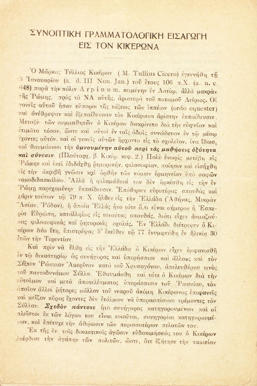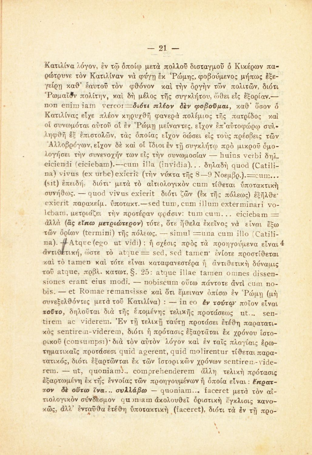 LDR 01569 2200217 4500 035 ## _a20-01461 040 ## _aΚΕΝΕΚ - Εταιρεία Σπουδών Νεοελληνικού Πολιτισμού και Παιδείας 041 ## _ael 100 ## _aΜάρκος Τύλλιος Κικέρωνας (M. Tullius Cicero) _aΘεοφάνης Α. Κακριδής (εισαγωγή _aσχόλια _aσημειώσεις) 110 ## _a1461 245 0# _aΜάρκου Τύλλιου Κικέρωνος Ο τρίτος κατά Κατιλίνα Λόγος προς χρήσιν των μαθητών της Γ΄ τάξεως του Γυμνασίου 250 ## _a6η Έκδοση 260 ## _aΑθήνα _bΙωάννης Δ. Κολλάρος, Βιβλιοπωλείο της "Εστίας" _c1928 300 ## _a58 _c21 520 ## _aΣχολικό εγχειρίδιο Λατινικών Γ΄ Γυμνασίου που περιλαμβάνει την εισαγωγή στο έργο και τη ζωή του Κικέρωνα, το λατινικό κείμενο του Τρίτου Λόγου κατά Κατιλίνα και ερμηνευτικά, γραμματικά και πραγματολογικά σχόλια. 521 ## _aΓ' Γυμνασίου 522 ## _aΕλλάδα 546 ## _aΚαθαρεύουσα 563 ## _aΜαλακό Εξώφυλλο 583 ## _a20986/ 18-5-1928 _c1928 650 #4 _aΓραμματική _aΕρμηνεία _aΚαίσαρας _aΚαπιτώλιο _aΚείμενα _aΚλίσεις _aΟυσιαστικά _aΡώμη _aΣυντακτικό