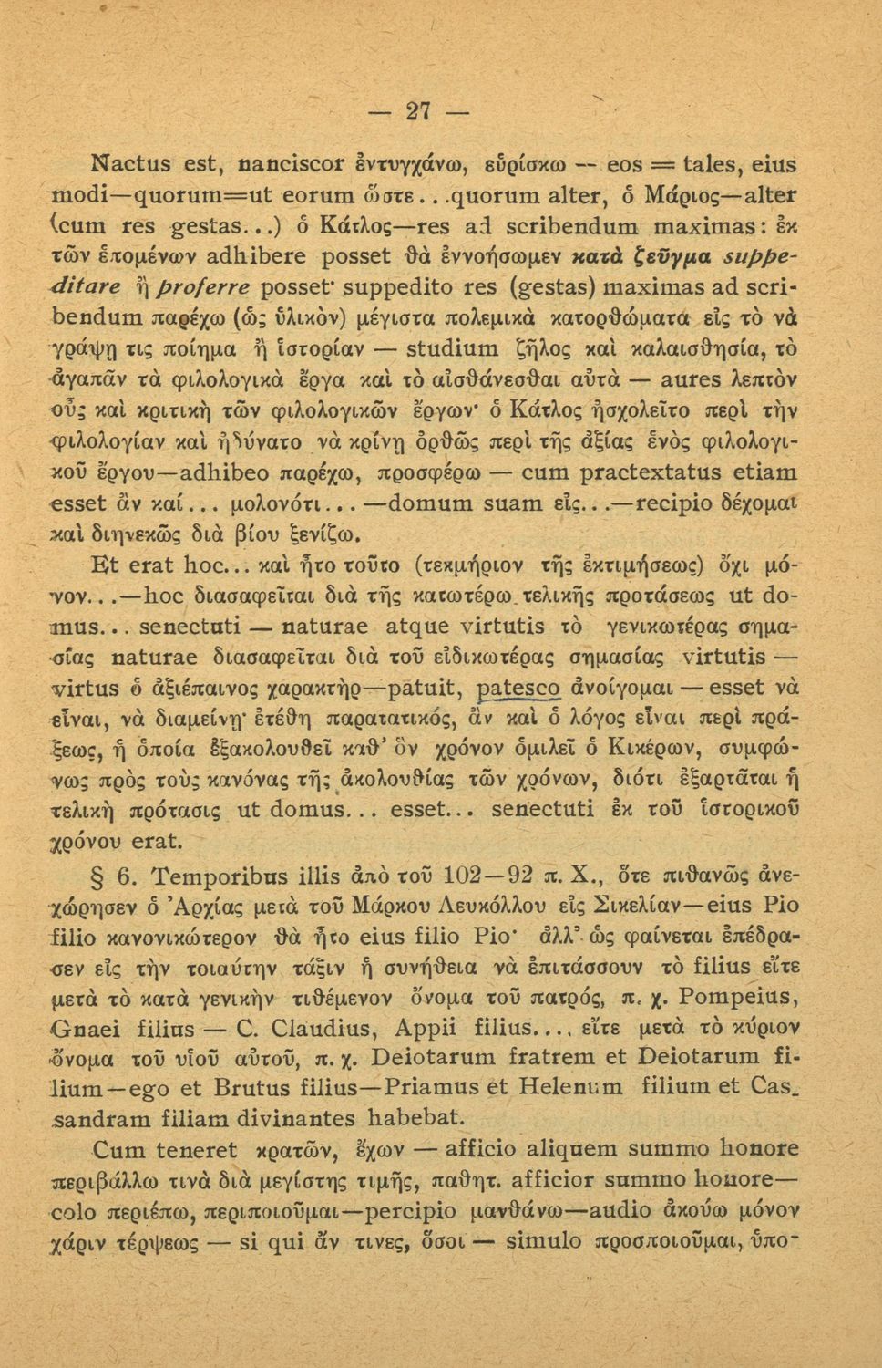 Μαθητικό βοήθημα Λατινικών για την Z΄ τάξη των Οκταταξίων Γυμνασίων που περιέχει κείμενο, μετάφραση, γραμματικά, σημασιολογικά και συντακτικά σχόλια, νόημα και περίληψη.