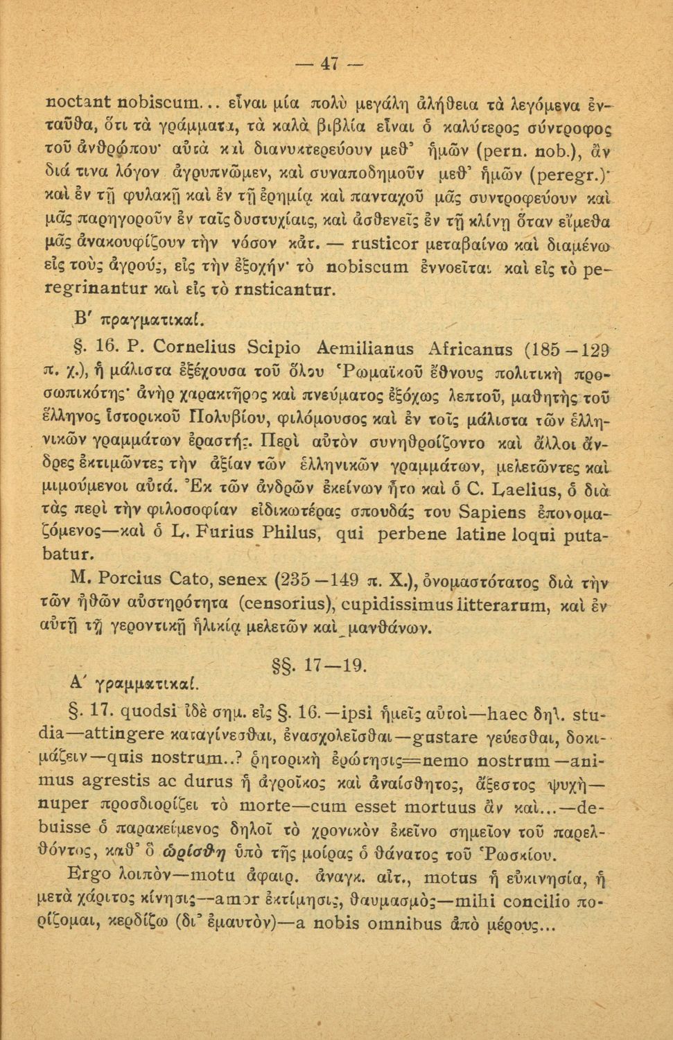 Σχολικό εγχειρίδιο Λατινικών για τη Γ΄ Γυμνασίου που περιλαμβάνει κείμενο, βιογραφικό σημείωμα του Κικέρωνα, εισαγωγικές παρατηρήσεις και ερμηνευτικές σημειώσεις.