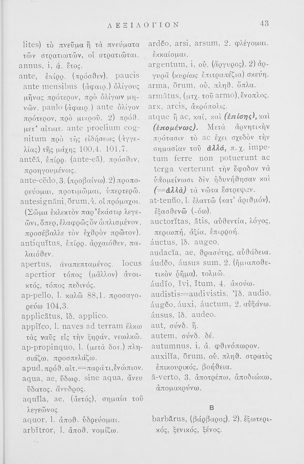 Σχολικό εγχειρίδιο Λατινικών που αποτελεί λεξιλόγιο των Υπομνημάτων του Ιούλιου Καίσαρα και περιέχει όλες τις λέξεις και εκφράσεις που περιλαμβάνονται στην εγκεκριμένη πέμπτη έκδοση. Ο συγγραφέας ήταν ...