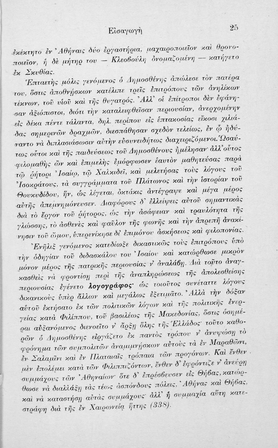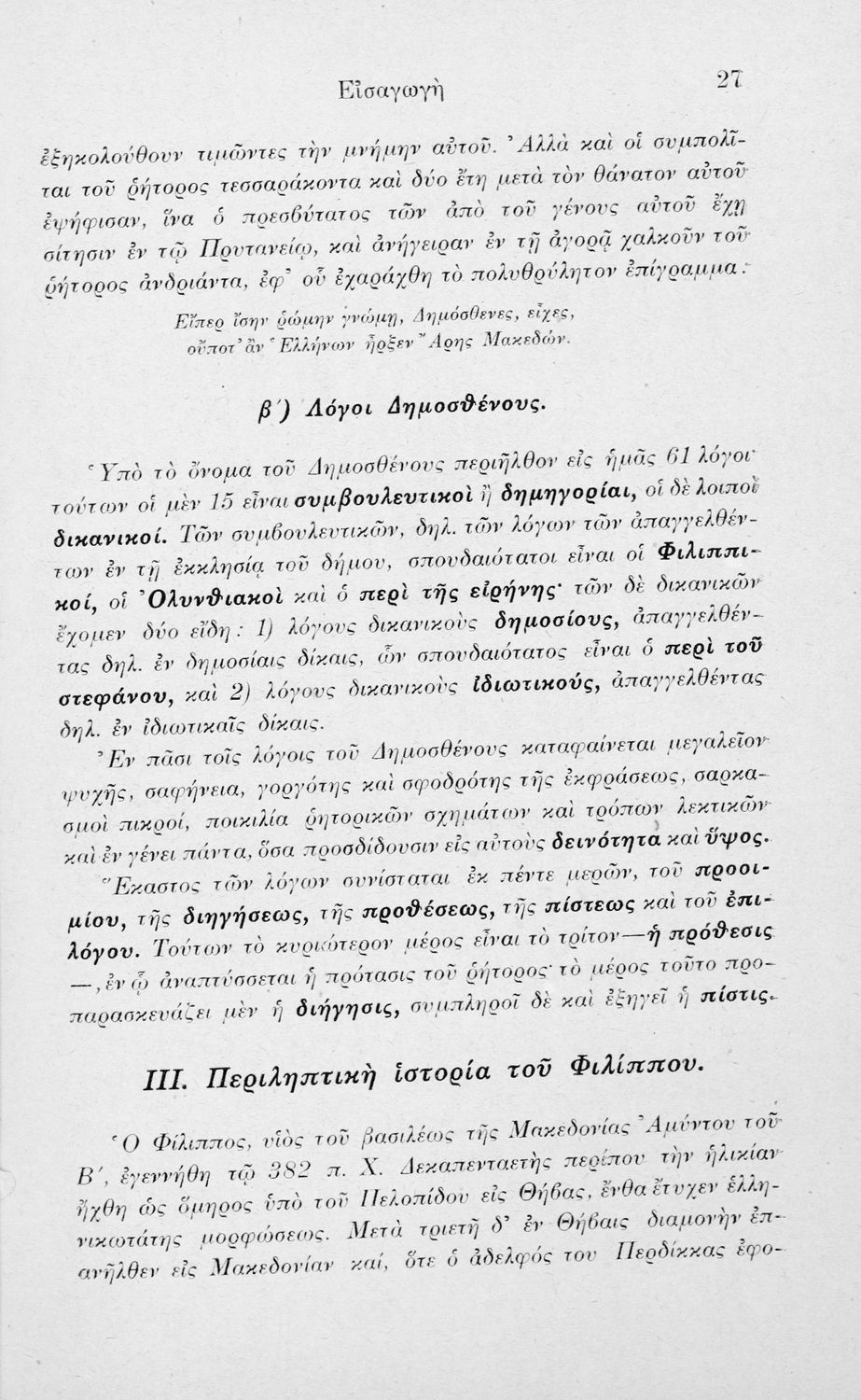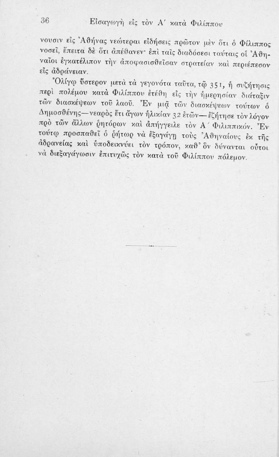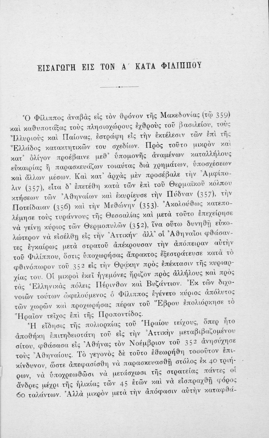 Σχολικό εγχειρίδιο Αρχαίων Ελληνικών Ε΄ Εξαταξίου Γυμνασίου που περιλαμβάνει τον Λόγο του Δημοσθένη Α΄ κατά Φιλίππου, εισαγωγή, ερμηνευτικά και γραμματικά σχόλια και παρατηρήσεις.