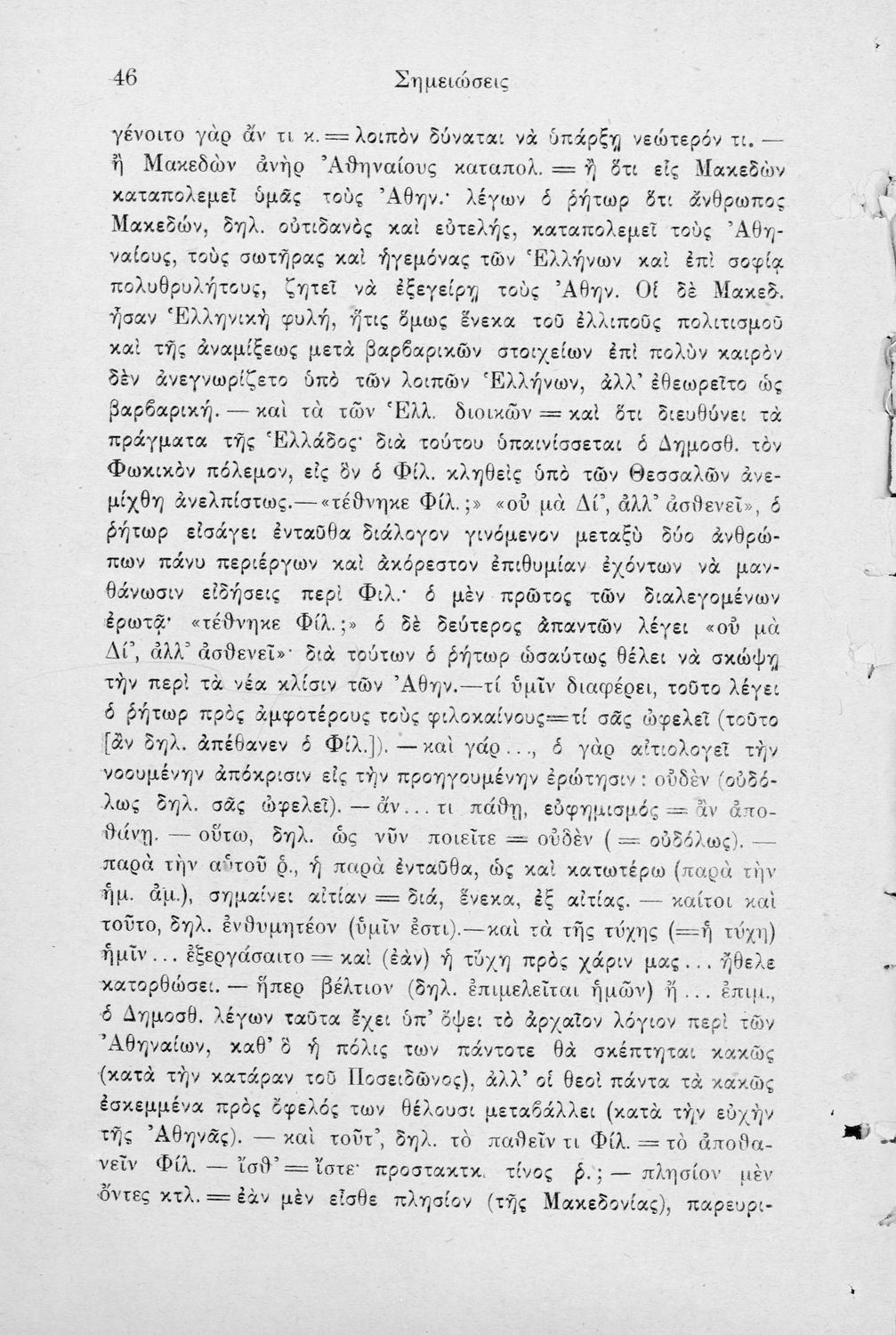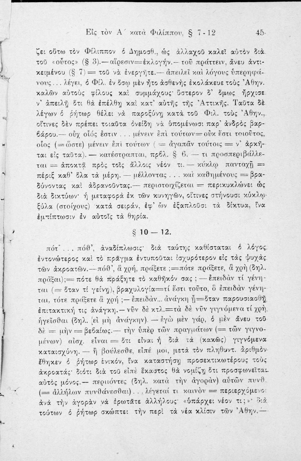 Σχολικό εγχειρίδιο Αρχαίων Ελληνικών Γ΄ Γυμνασίου που περιλαμβάνει τον Λόγο του Δημοσθένη Α΄ κατά Φιλίππου, εισαγωγικά σχόλια στο έργο και τη ζωή του, ερμηνευτικά και γραμματικά σχόλια και παρατηρήσεις.