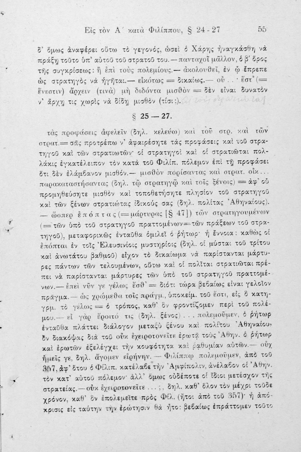 Σχολικό εγχειρίδιο Αρχαίων Ελληνικών Ε΄ Εξαταξίου Γυμνασίου που περιλαμβάνει τον Λόγο του Δημοσθένη Α΄ κατά Φιλίππου, εισαγωγή, ερμηνευτικά και γραμματικά σχόλια και παρατηρήσεις.