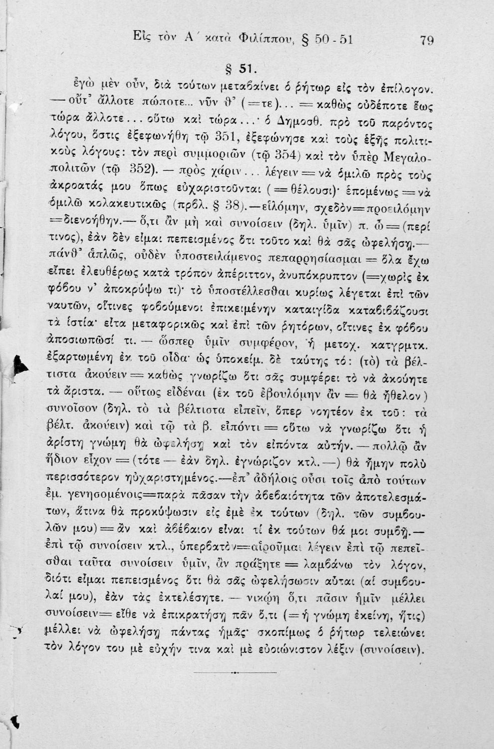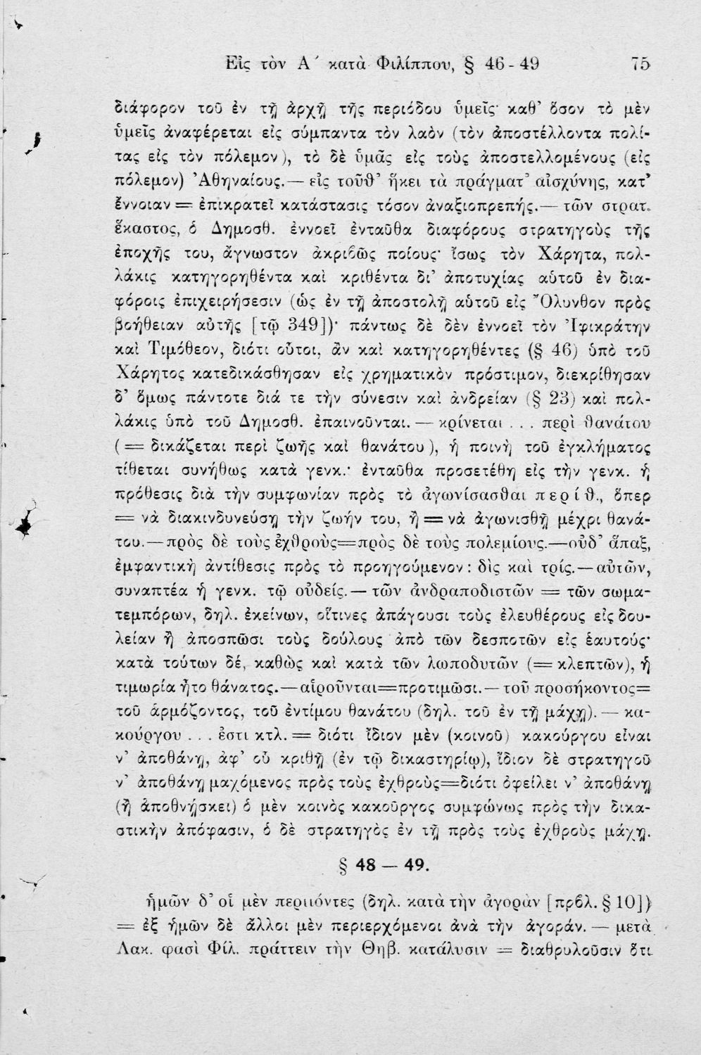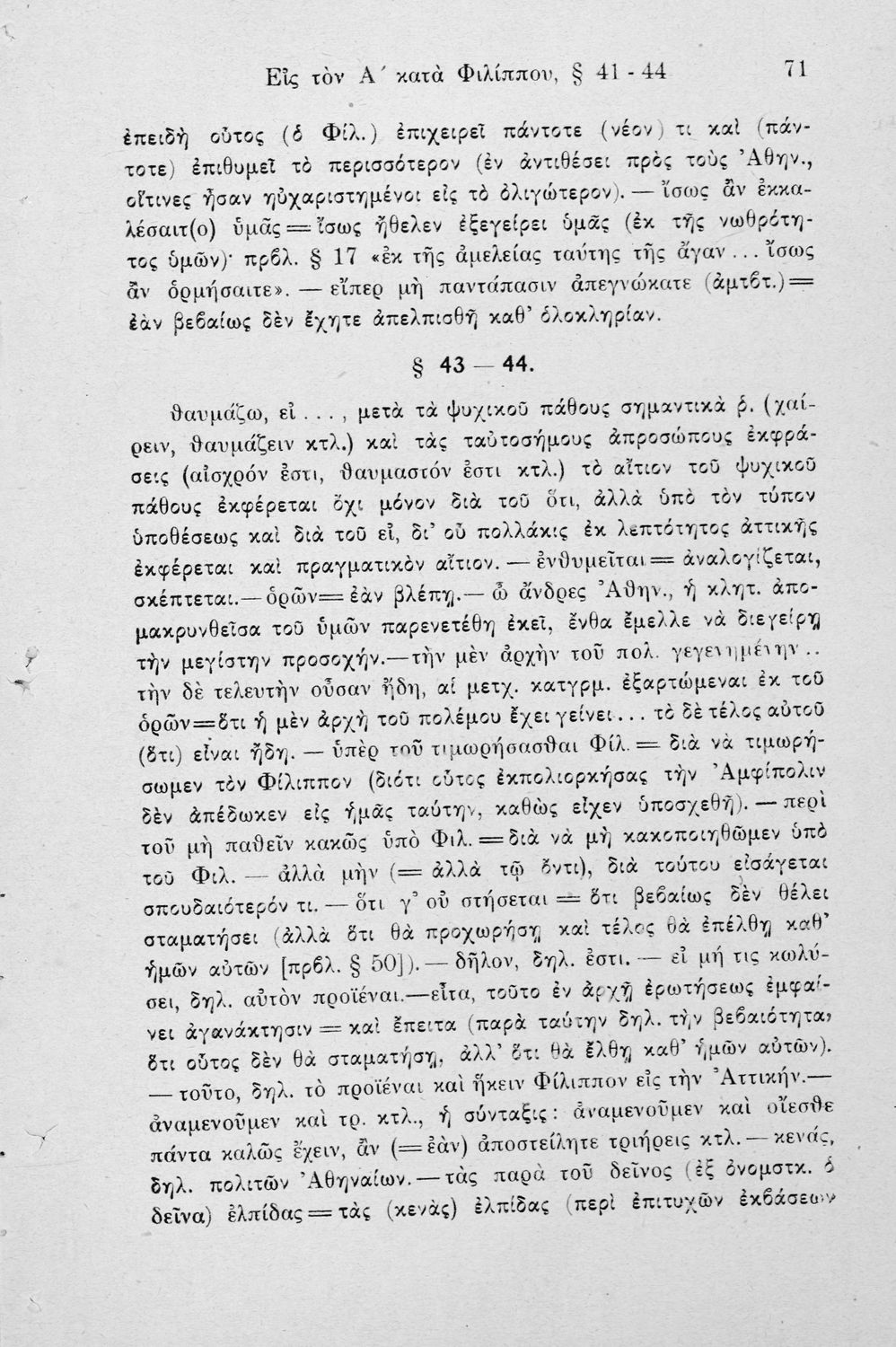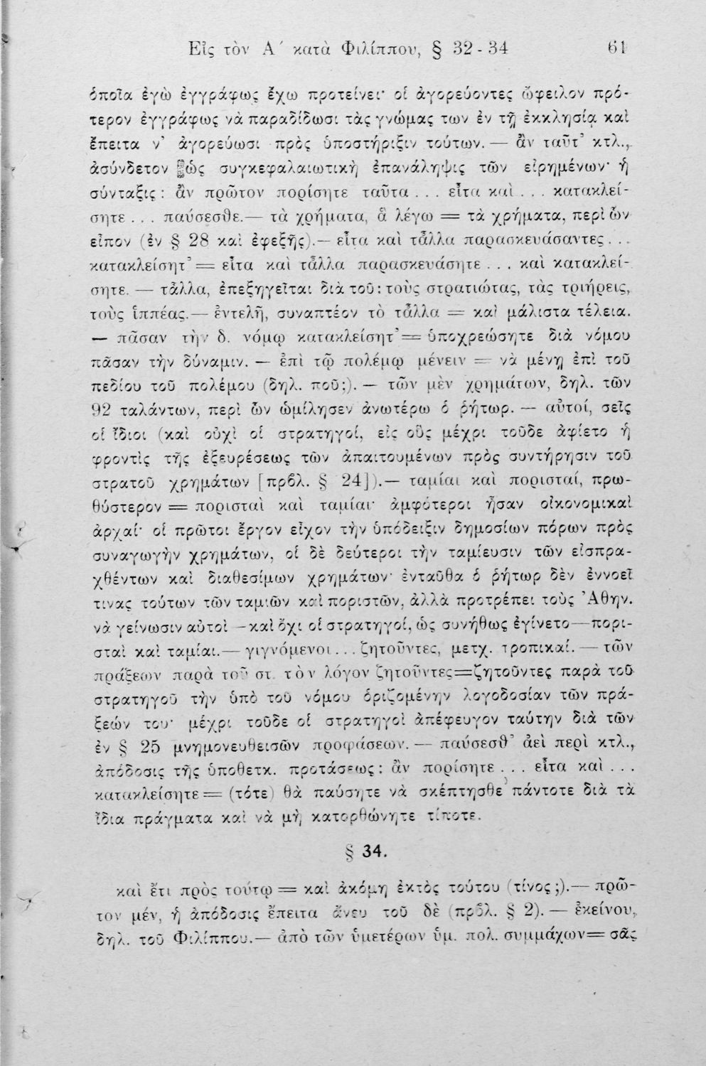 Σχολικό εγχειρίδιο Αρχαίων Ελληνικών Γ΄ Γυμνασίου που περιλαμβάνει τον Λόγο του Δημοσθένη Α΄ κατά Φιλίππου, εισαγωγικά σχόλια στο έργο και τη ζωή του, ερμηνευτικά και γραμματικά σχόλια και παρατηρήσεις.