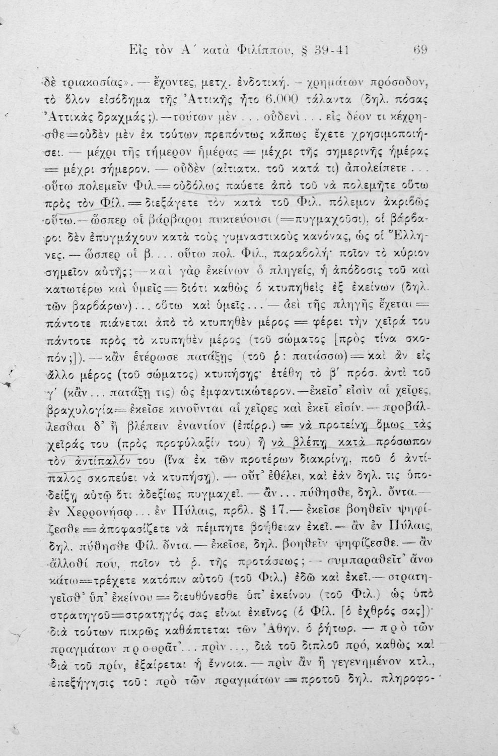 Μαθητικό βοήθημα Αρχαίων Ελληνικών ΣΤ΄ Οκταταξίου Γυμνασίου που περιέχει τον Α΄ Φιλιππικό του Δημοσθένη, μετάφραση, γραμματικά και συντακτικά σχόλια.