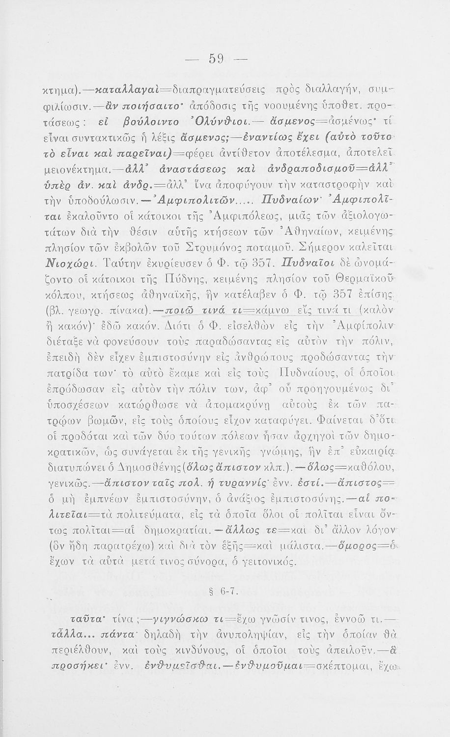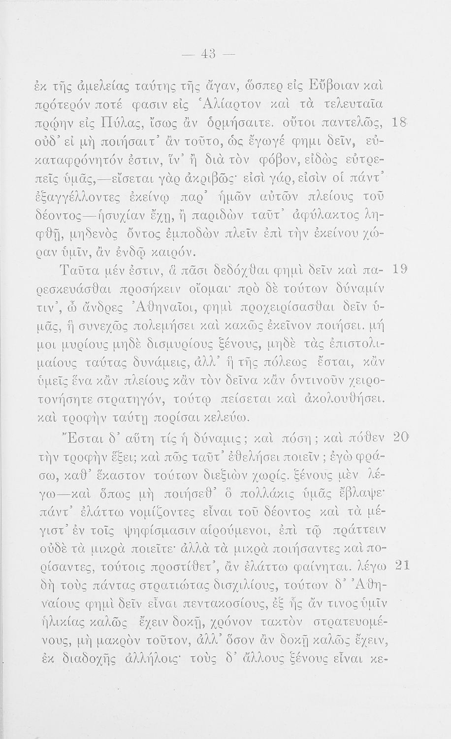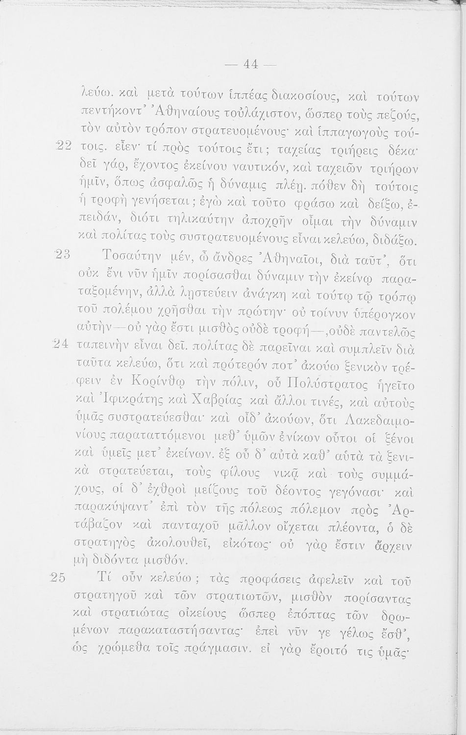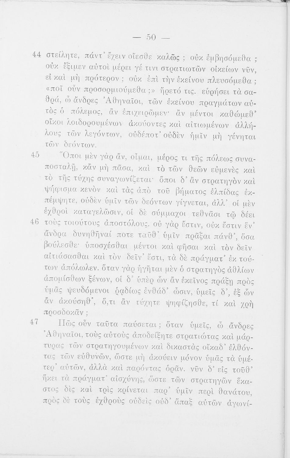 Μαθητικό βοήθημα Αρχαίων Ελληνικών της τρίτης τάξης των τετρατάξιων Γυμνασίων. Το βιβλίο περιέχει τα έργα του Δημοσθένη, Περί της ειρήνης και Α΄ Φιλιππικός από μετάφραση.