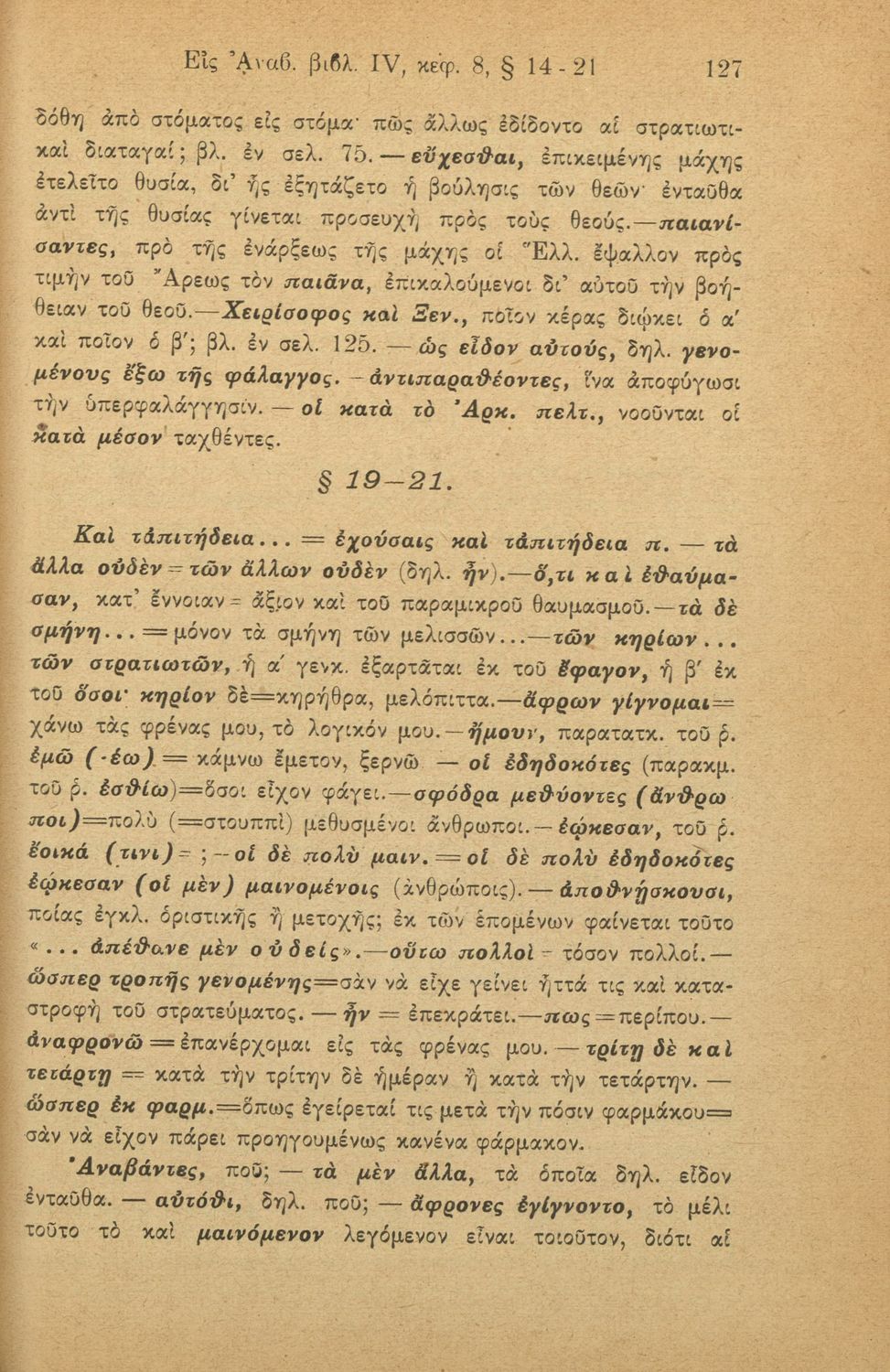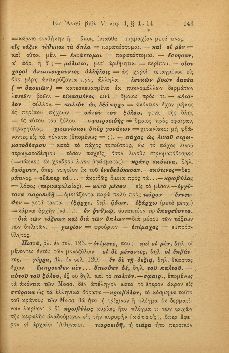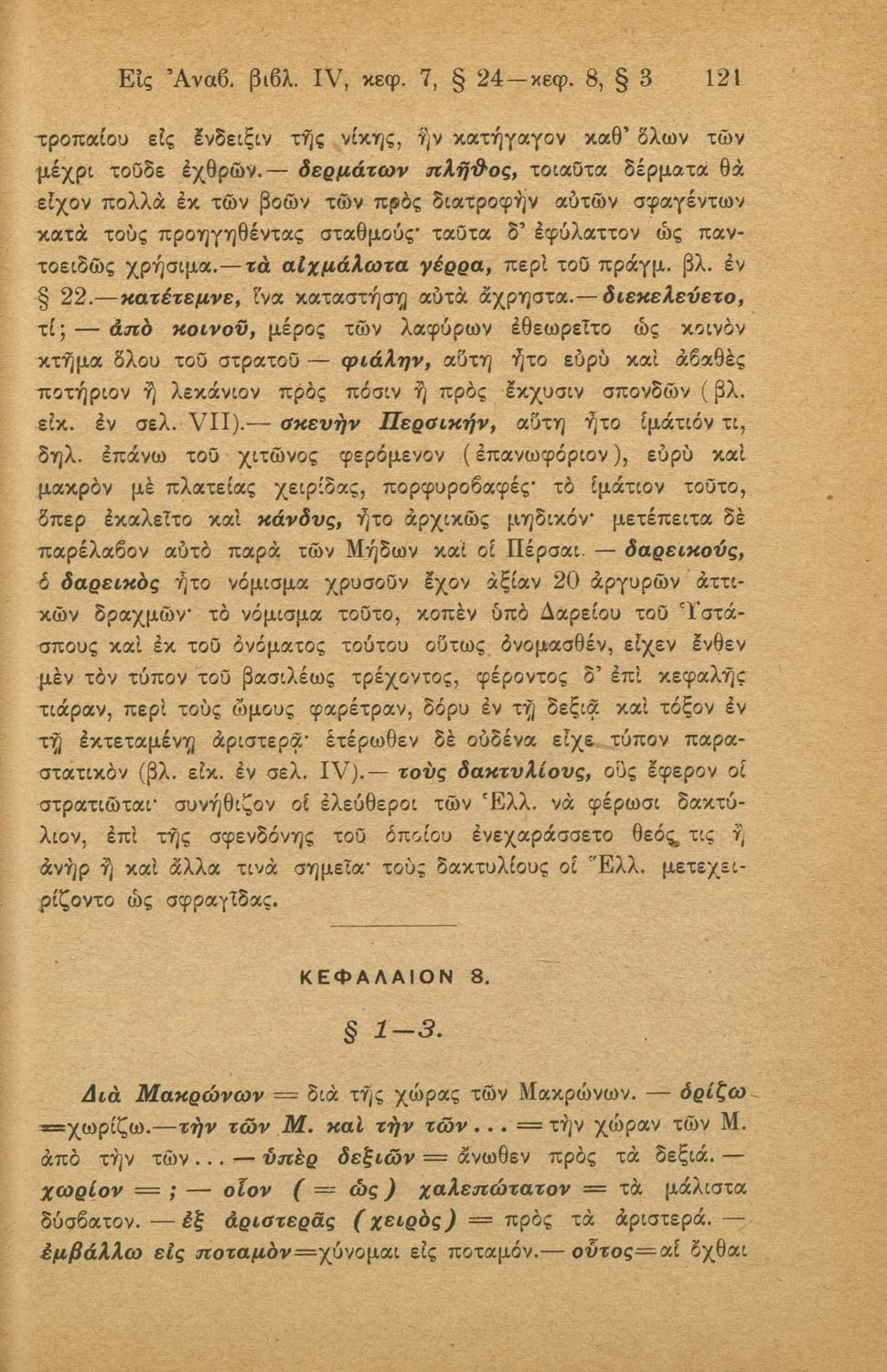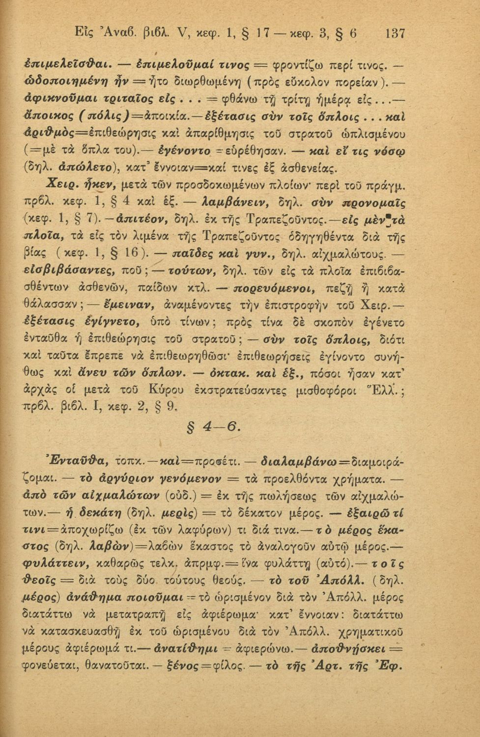 Σχολικό εγχειρίδιο της Γ' Ελληνικού Σχολείου και Αστικών Σχολείων για το μάθημα των Αρχαίων Ελληνικών. Το σύγγραμμα περιλαμβάνει κείμενα κατ΄ επιλογή από τα τέσσερα τελευταία βιβλία του έργου Κύρου Ανάβασις. ...