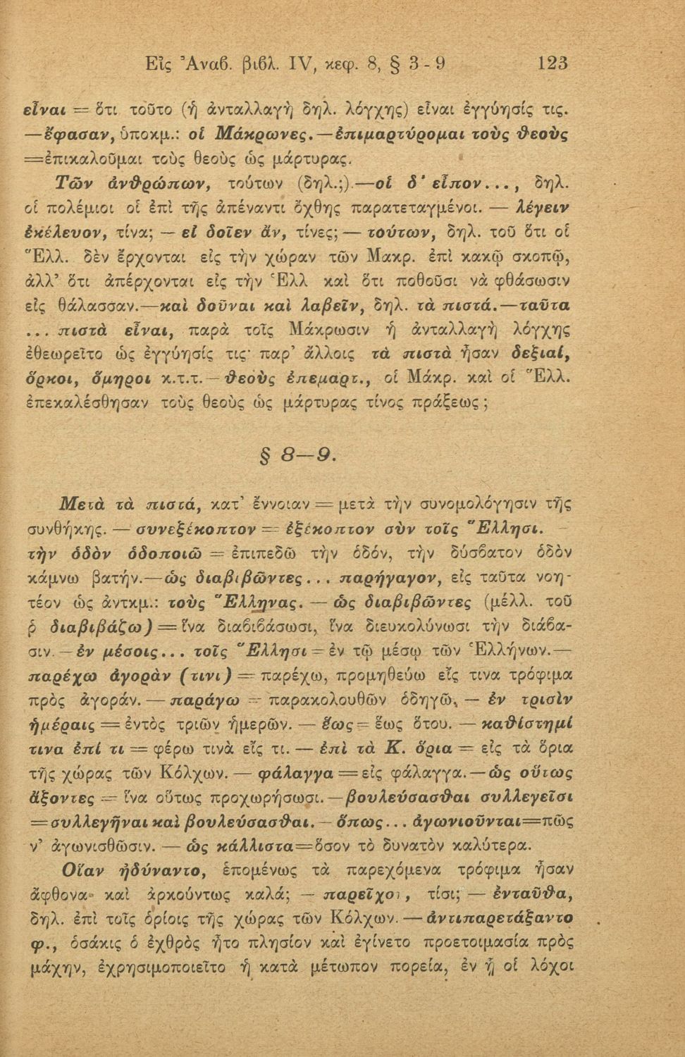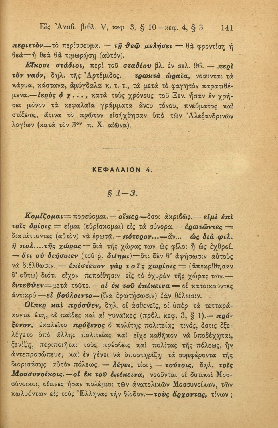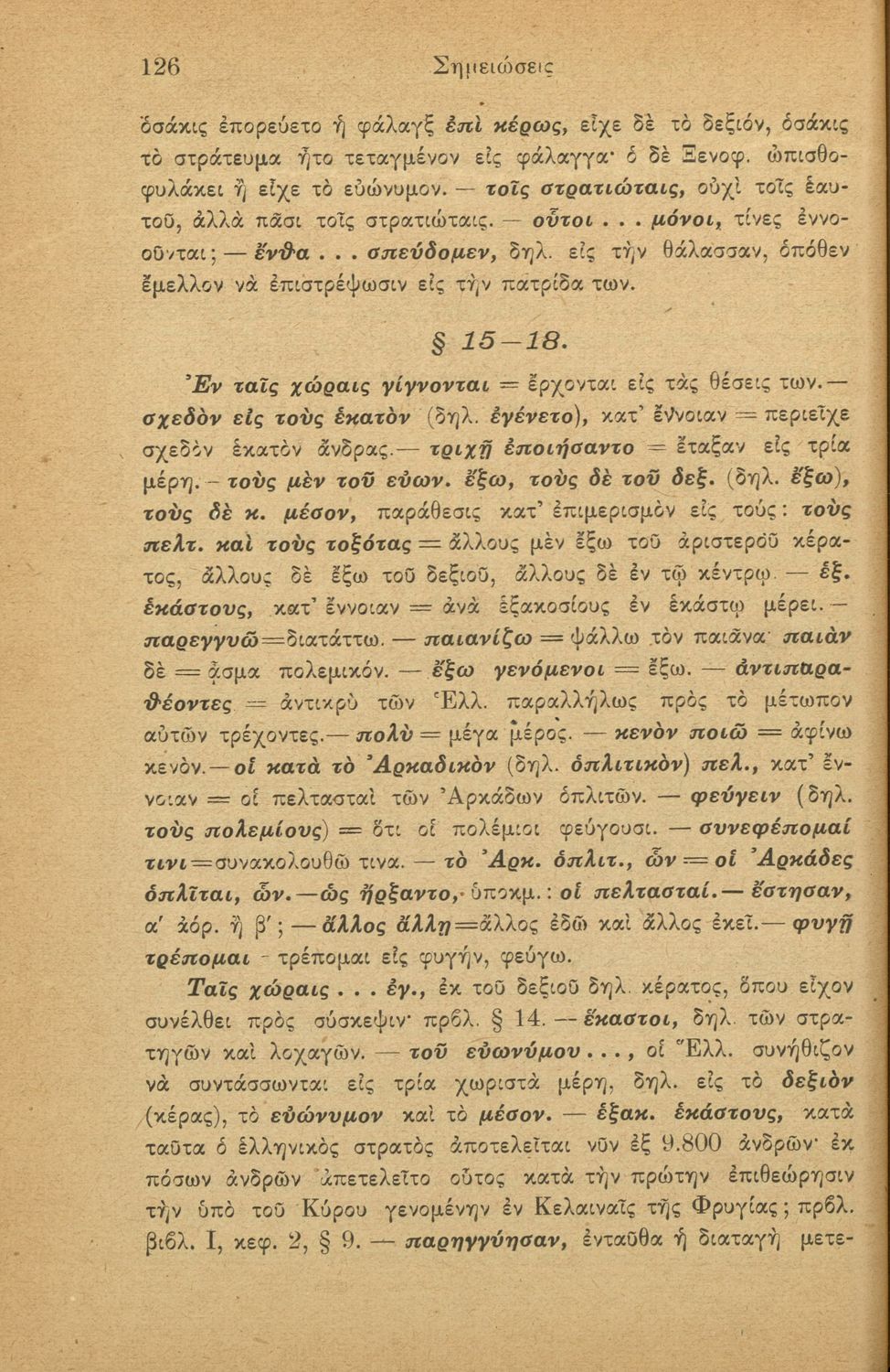 Σχολικό εγχειρίδιο Αρχαίων Ελληνικών για τις Γ΄ Ελληνικού Σχολείου και Α΄ Αστικού Σχολείου Θηλέων που περιλαμβάνει το έργο του Ξενοφώντα Κύρου Ανάβασις, ερμηνευτικά και πραγματολογικά σχόλια και λεξιλογικές ...