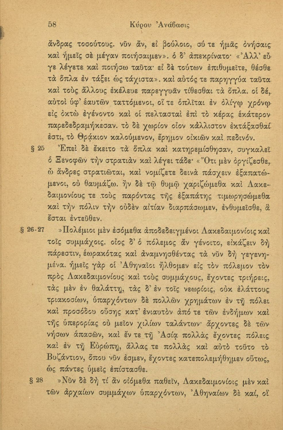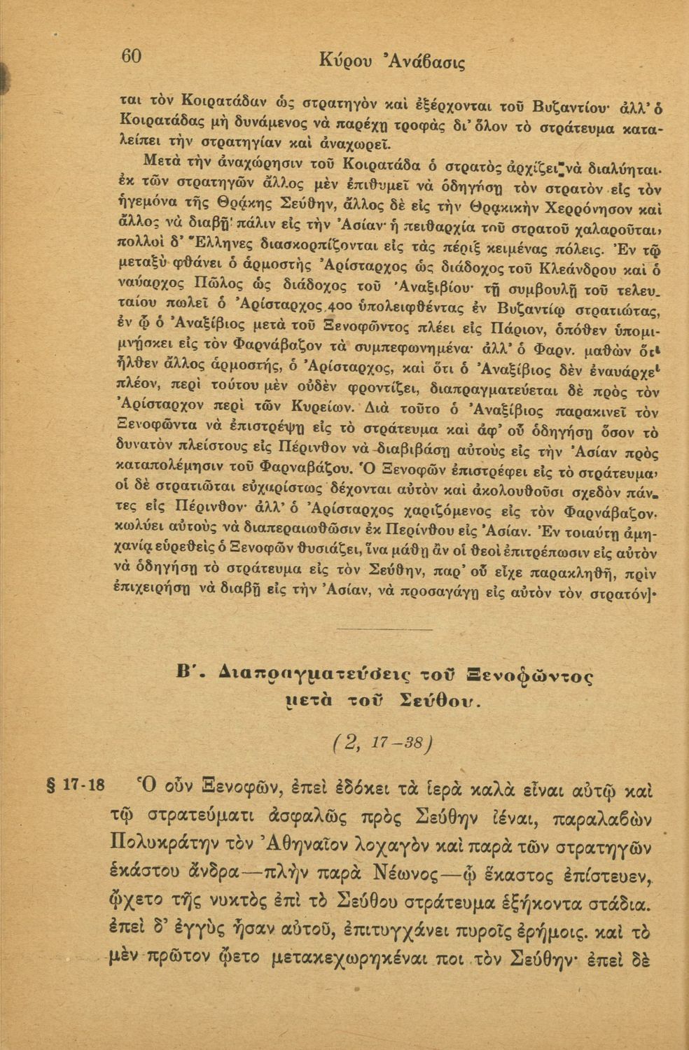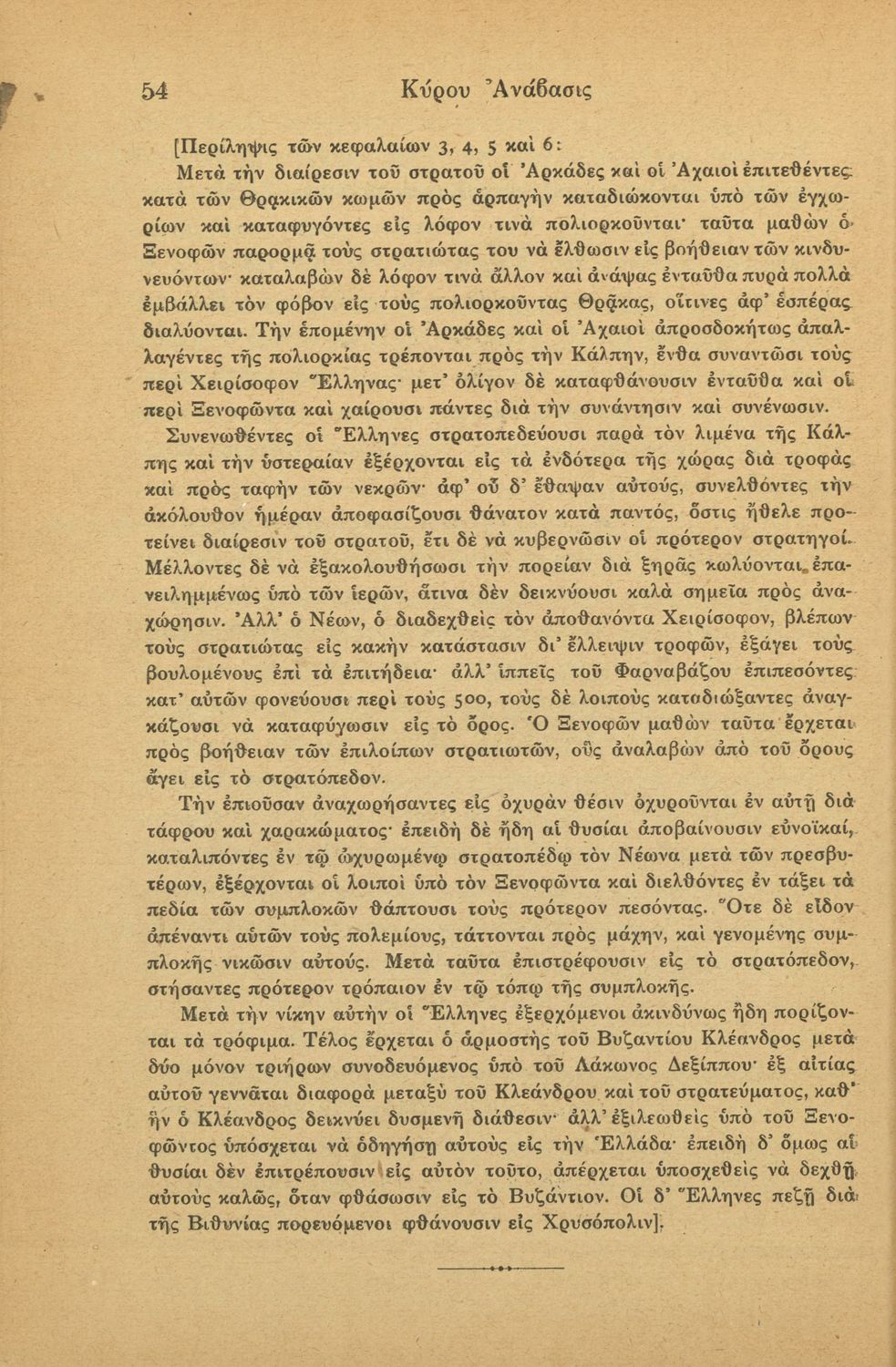 Σχολικό εγχειρίδιο της Γ' Ελληνικού Σχολείου και Αστικών Σχολείων για το μάθημα των Αρχαίων Ελληνικών. Το σύγγραμμα περιλαμβάνει κείμενα κατ΄ επιλογή από τα τέσσερα τελευταία βιβλία του έργου Κύρου Ανάβασις. ...