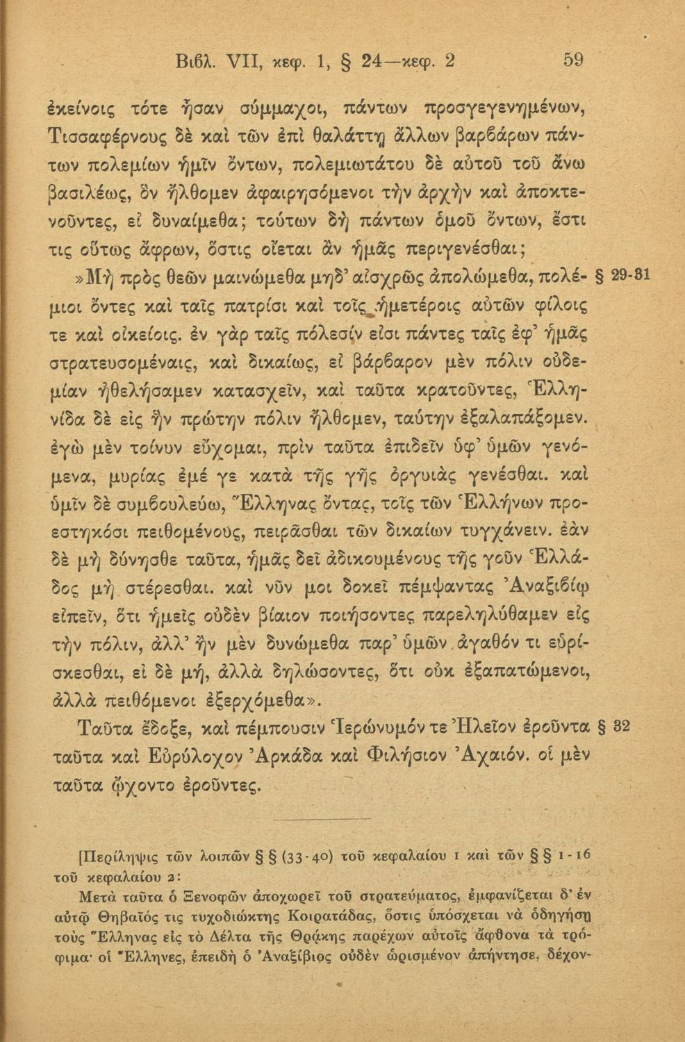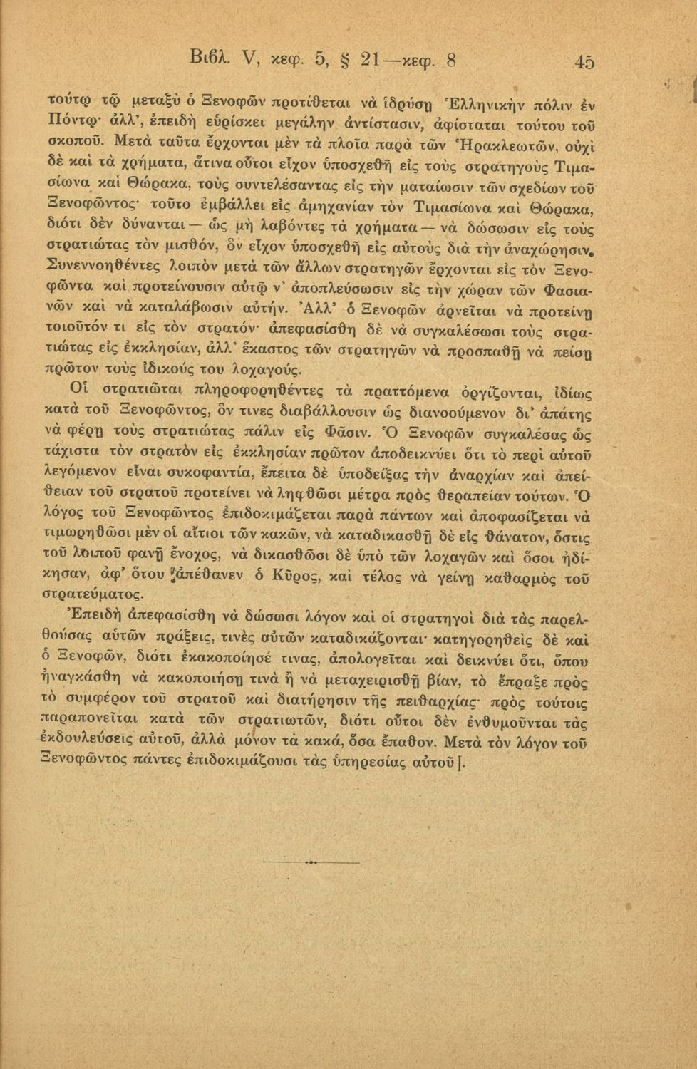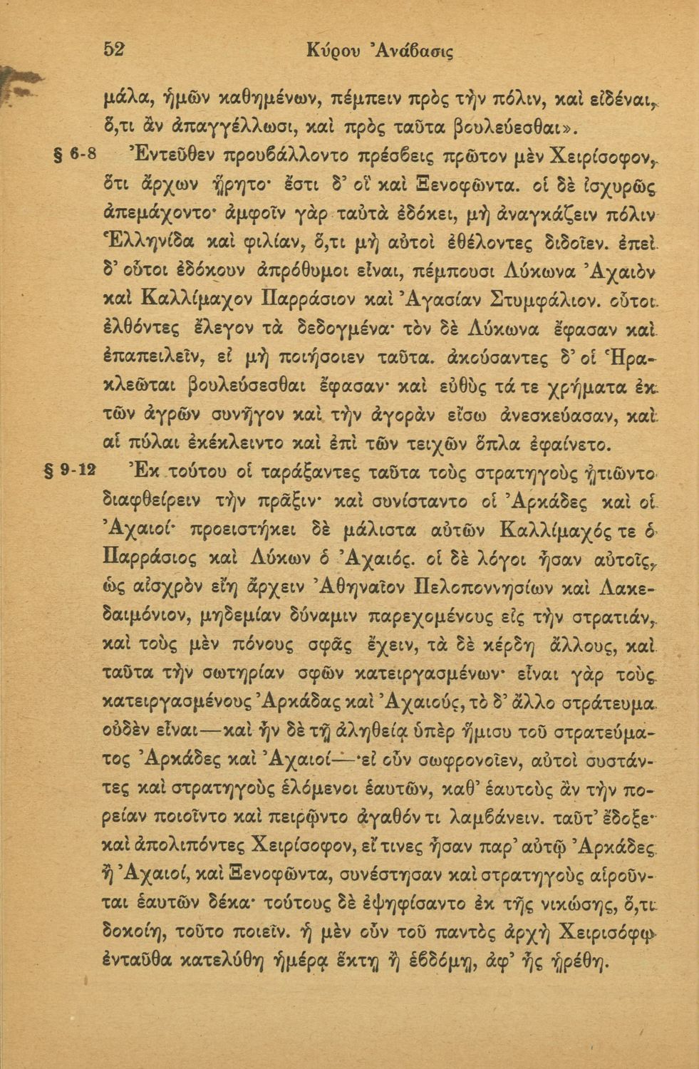Σχολικό εγχειρίδιο της Γ' Ελληνικού Σχολείου και Αστικών Σχολείων για το μάθημα των Αρχαίων Ελληνικών. Το σύγγραμμα περιλαμβάνει κείμενα κατ΄ επιλογή από τα τέσσερα τελευταία βιβλία του έργου Κύρου Ανάβασις. ...