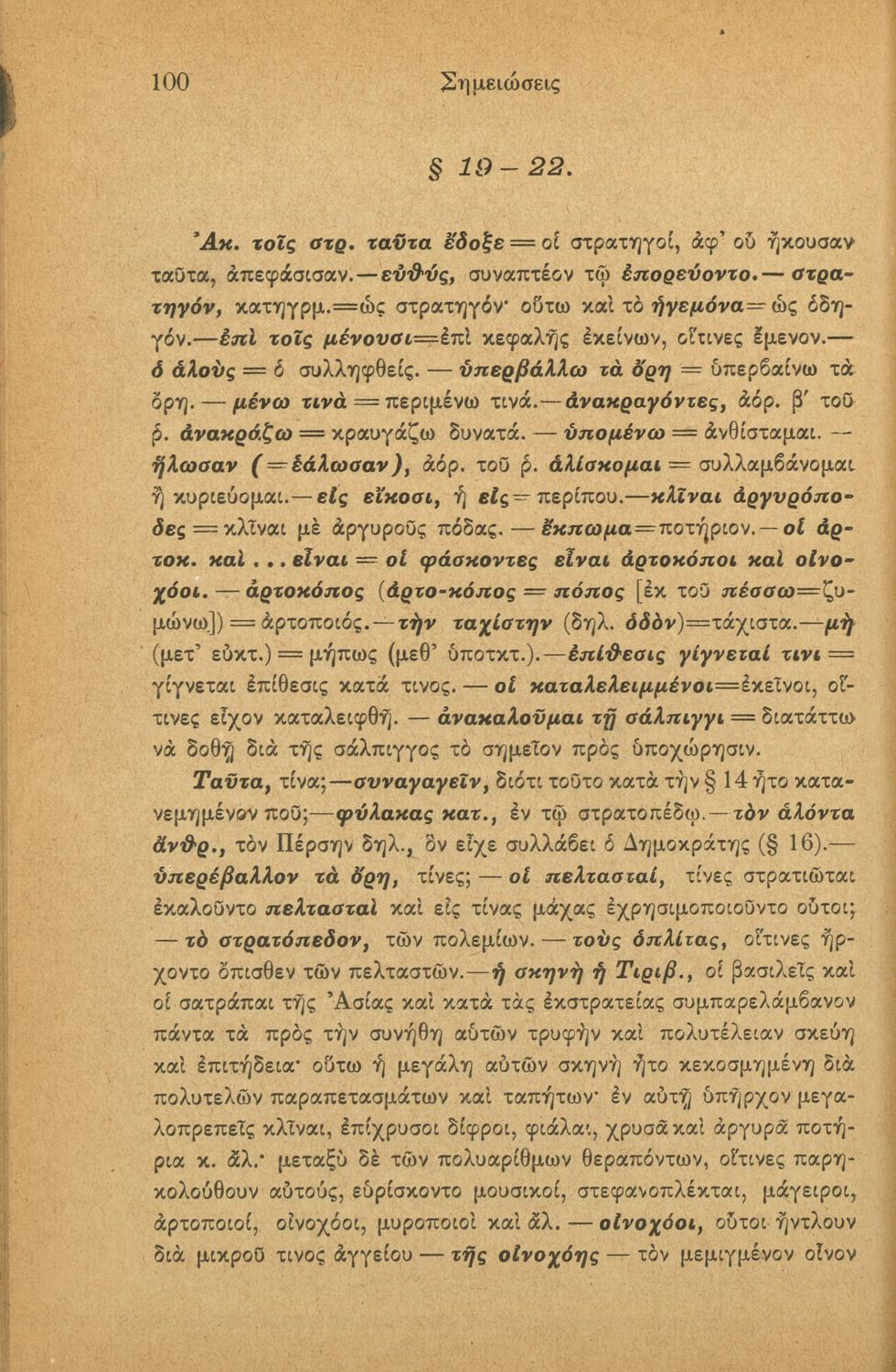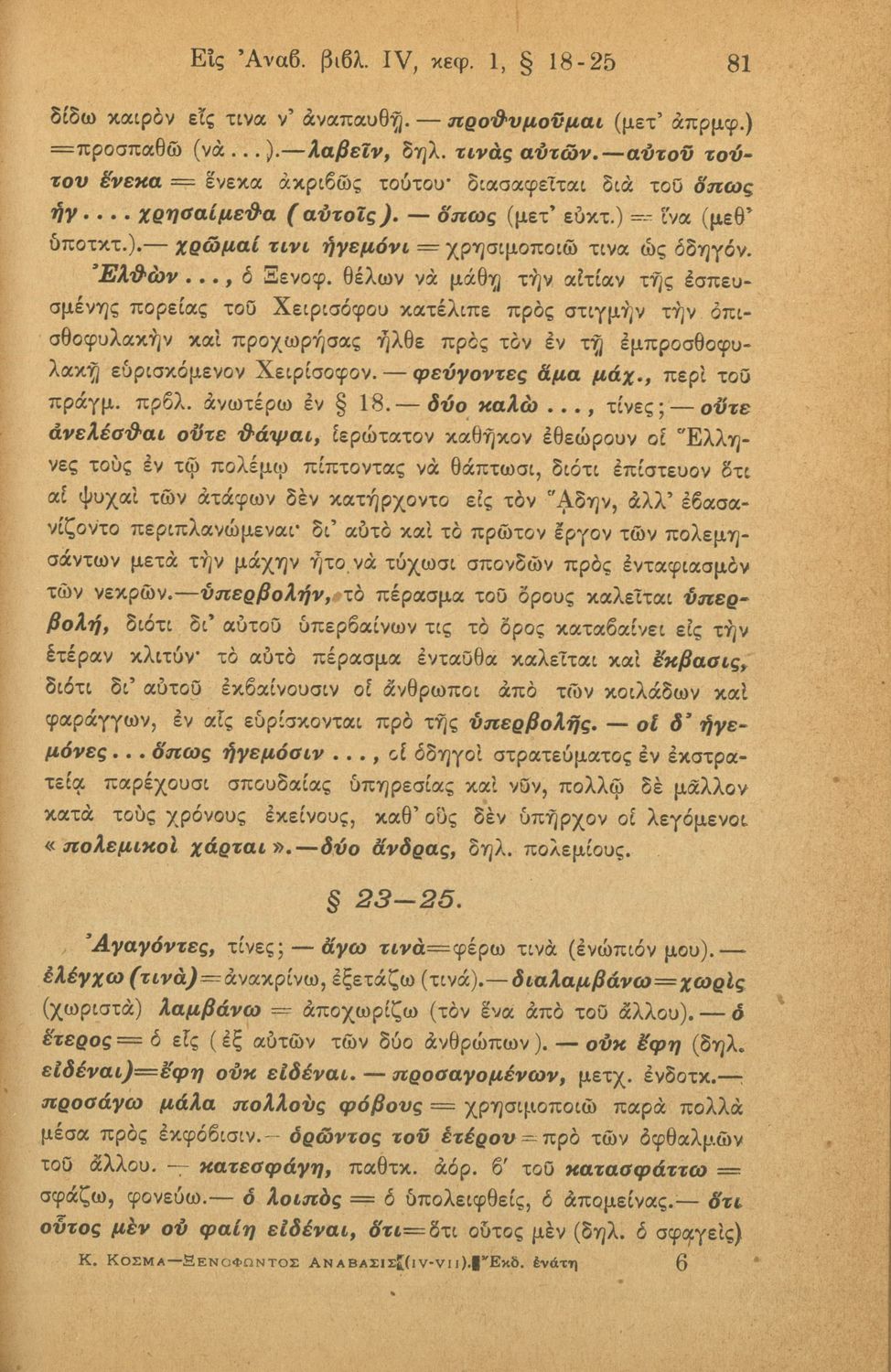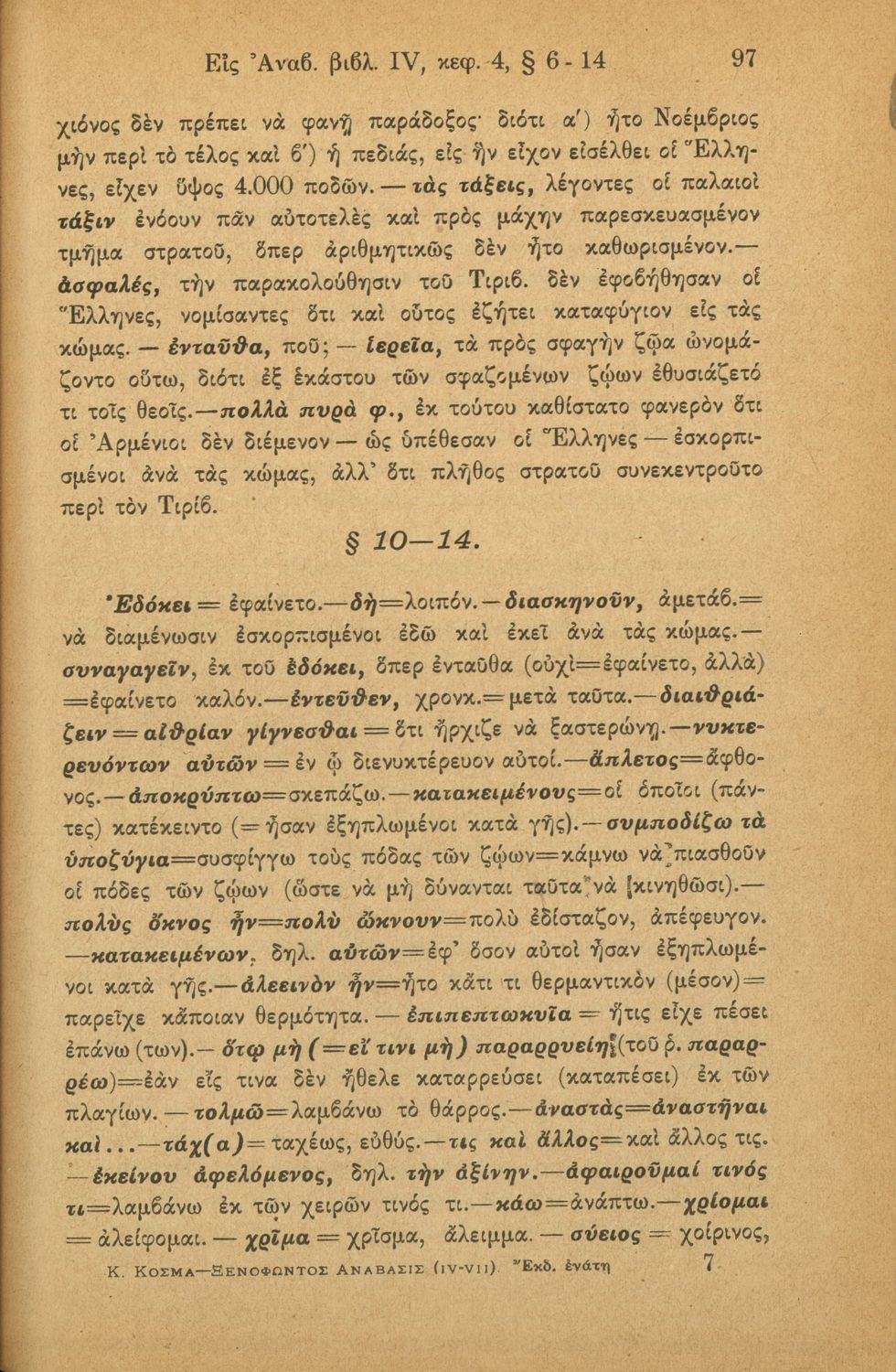 Σχολικό εγχειρίδιο της Γ' Ελληνικού Σχολείου και Αστικών Σχολείων για το μάθημα των Αρχαίων Ελληνικών. Το σύγγραμμα περιλαμβάνει κείμενα κατ΄ επιλογή από τα τέσσερα τελευταία βιβλία του έργου Κύρου Ανάβασις. ...