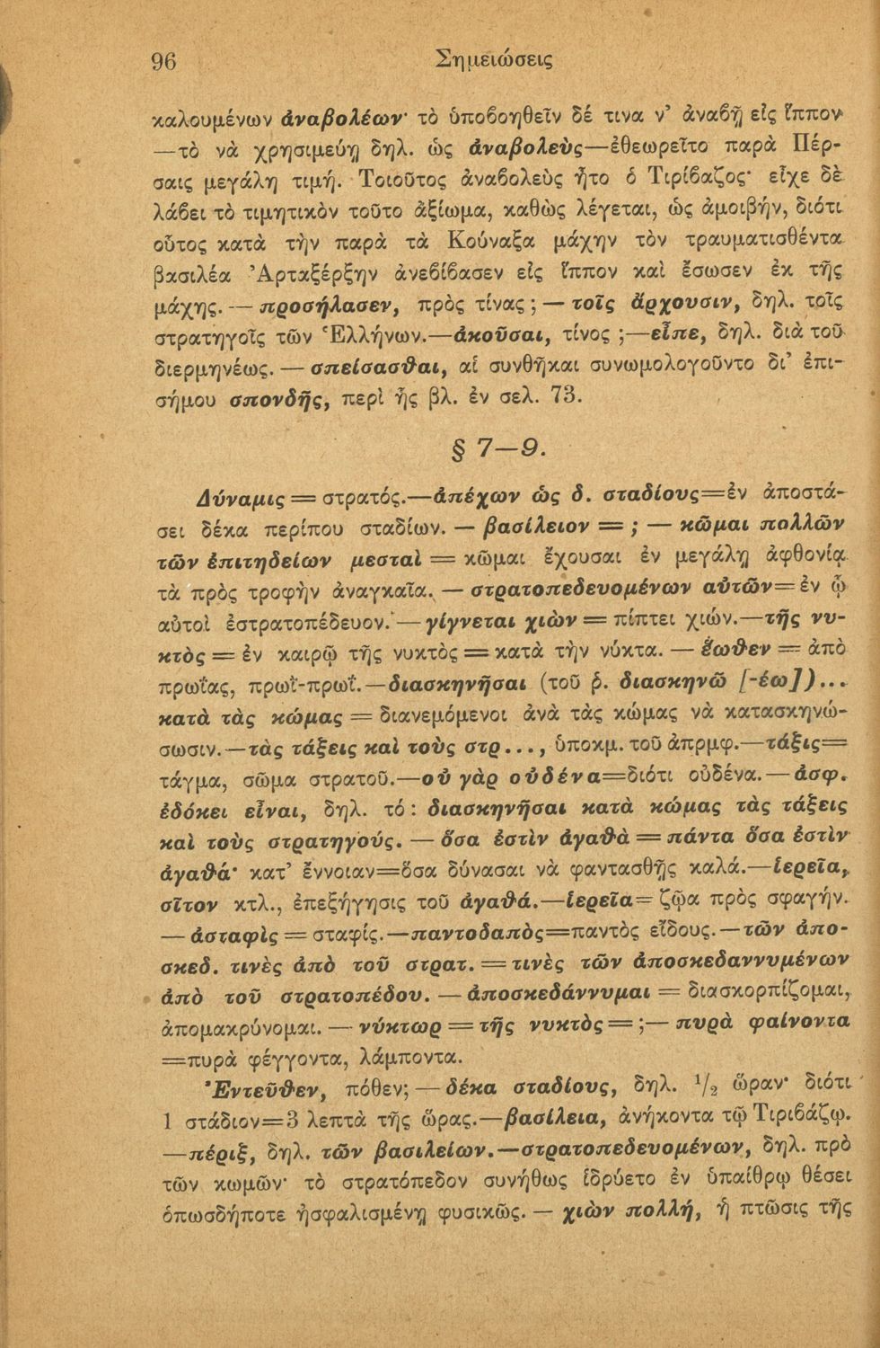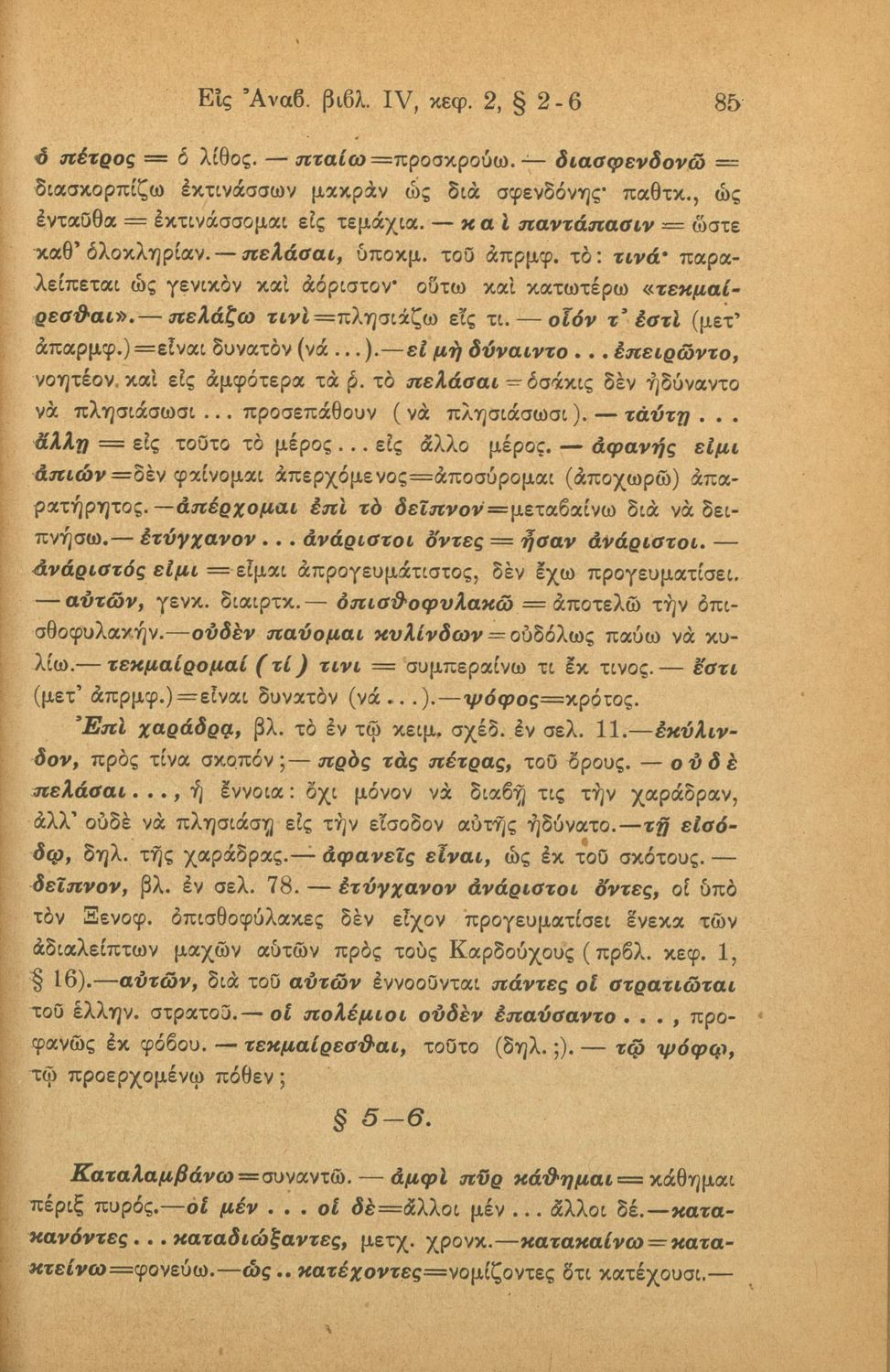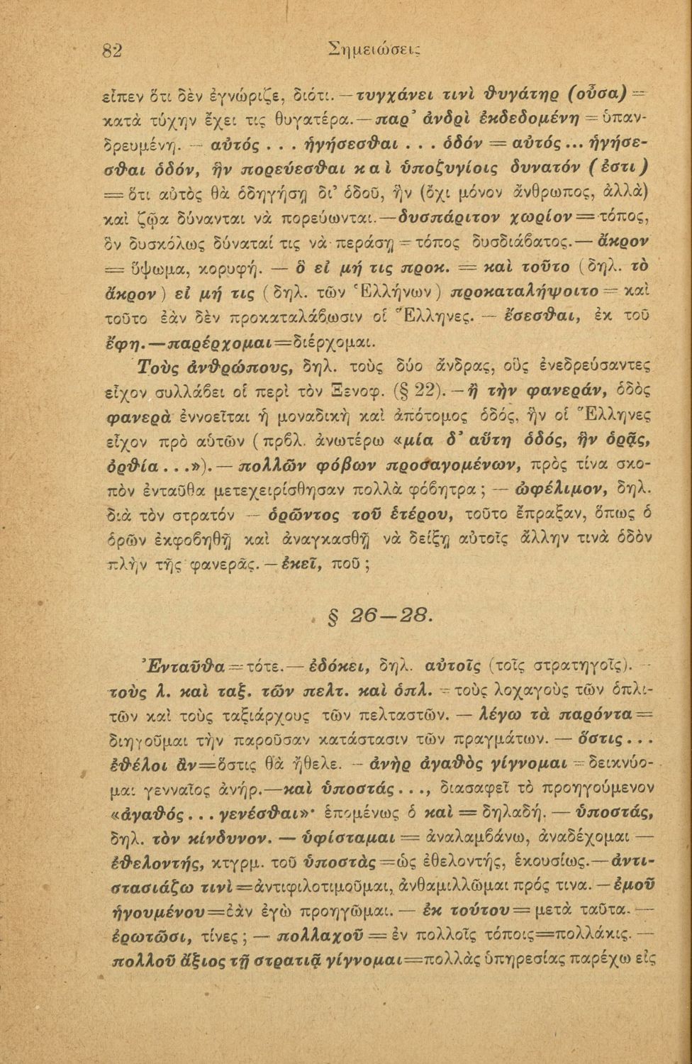 Σχολικό εγχειρίδιο της Γ' Ελληνικού Σχολείου και Αστικών Σχολείων για το μάθημα των Αρχαίων Ελληνικών. Το σύγγραμμα περιλαμβάνει κείμενα κατ΄ επιλογή από τα τέσσερα τελευταία βιβλία του έργου Κύρου Ανάβασις. ...