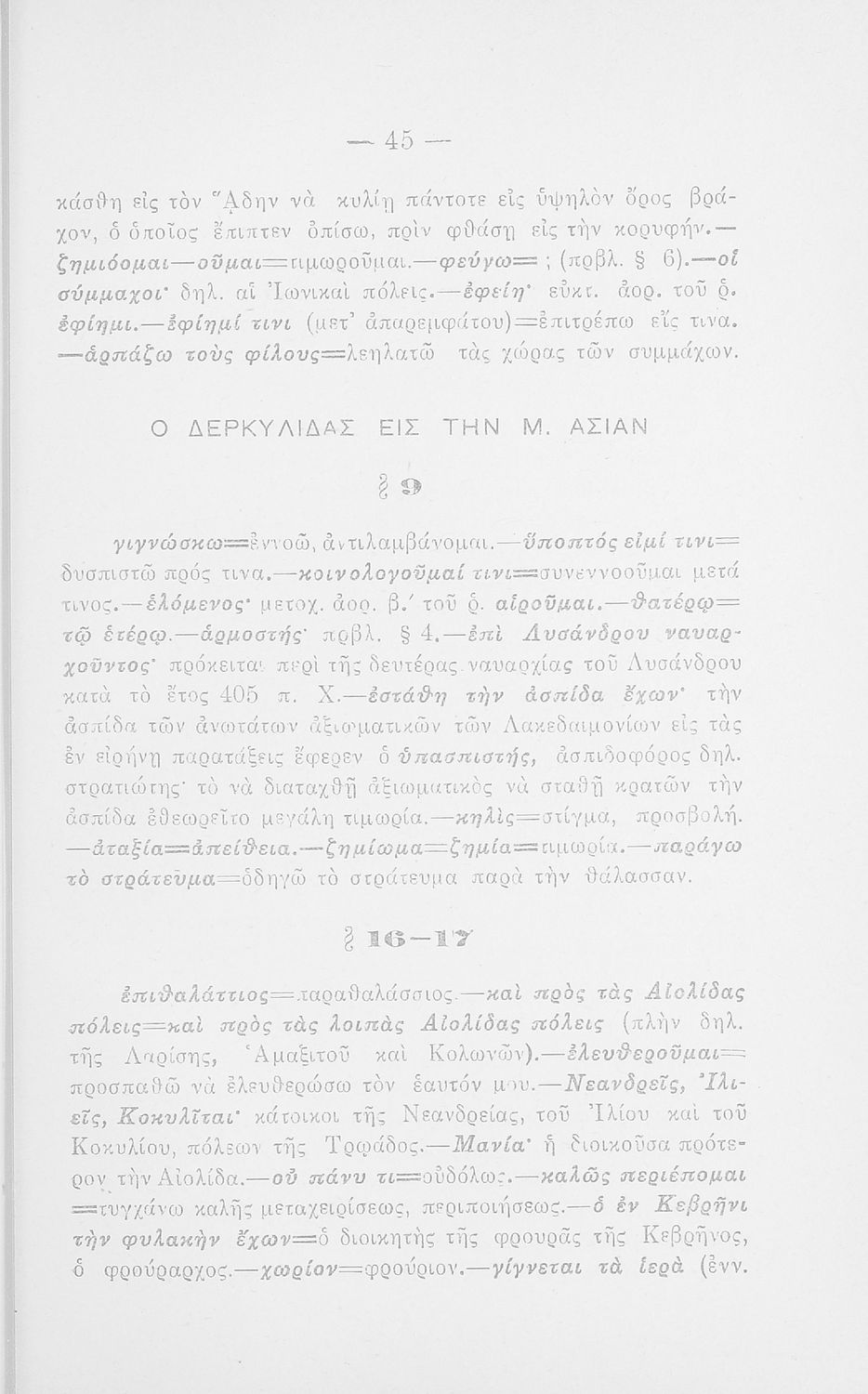 Σχολικό εγχειρίδιο Αρχαίων Ελληνικών που περιλαμβάνει αποσπάσματα από τα Ελληνικά του Ξενοφώντα, την εισαγωγή στο έργο, ερμηνευτικές σημειώσεις και χωρογραφικό πίνακα της περιοχής.