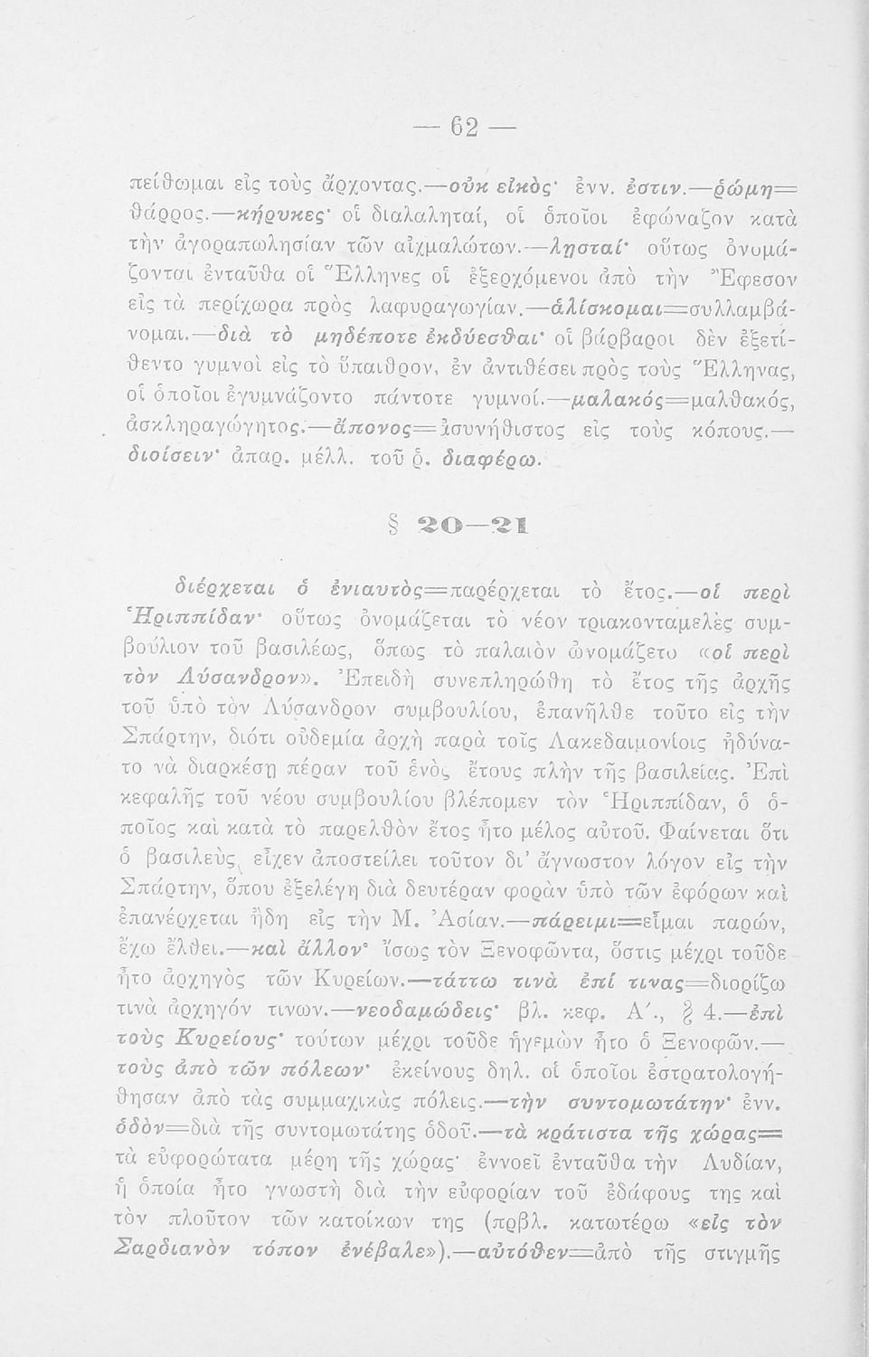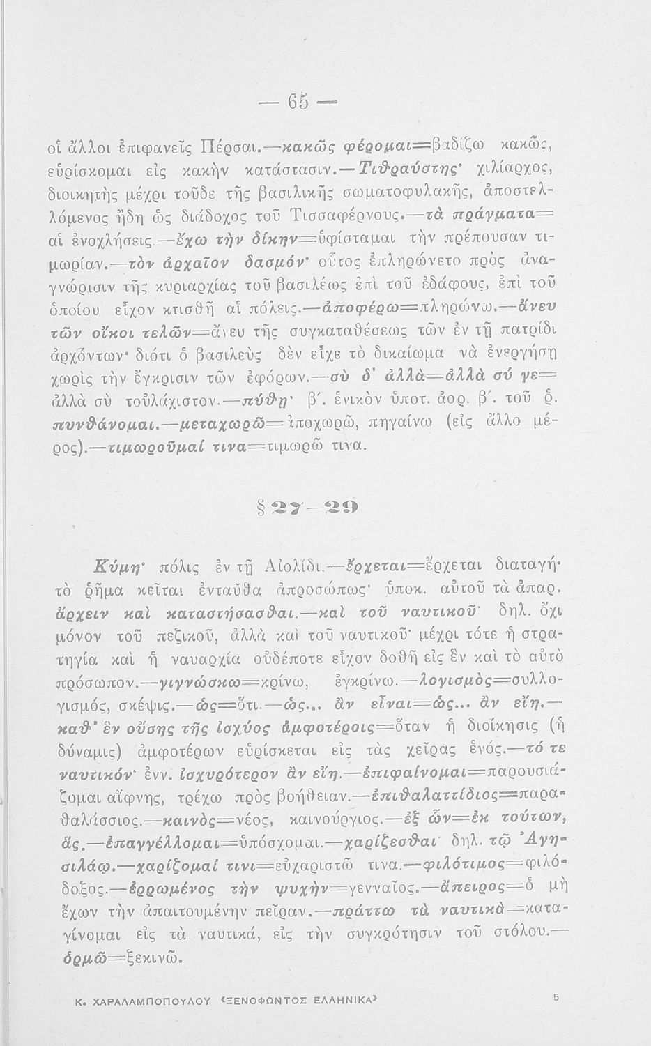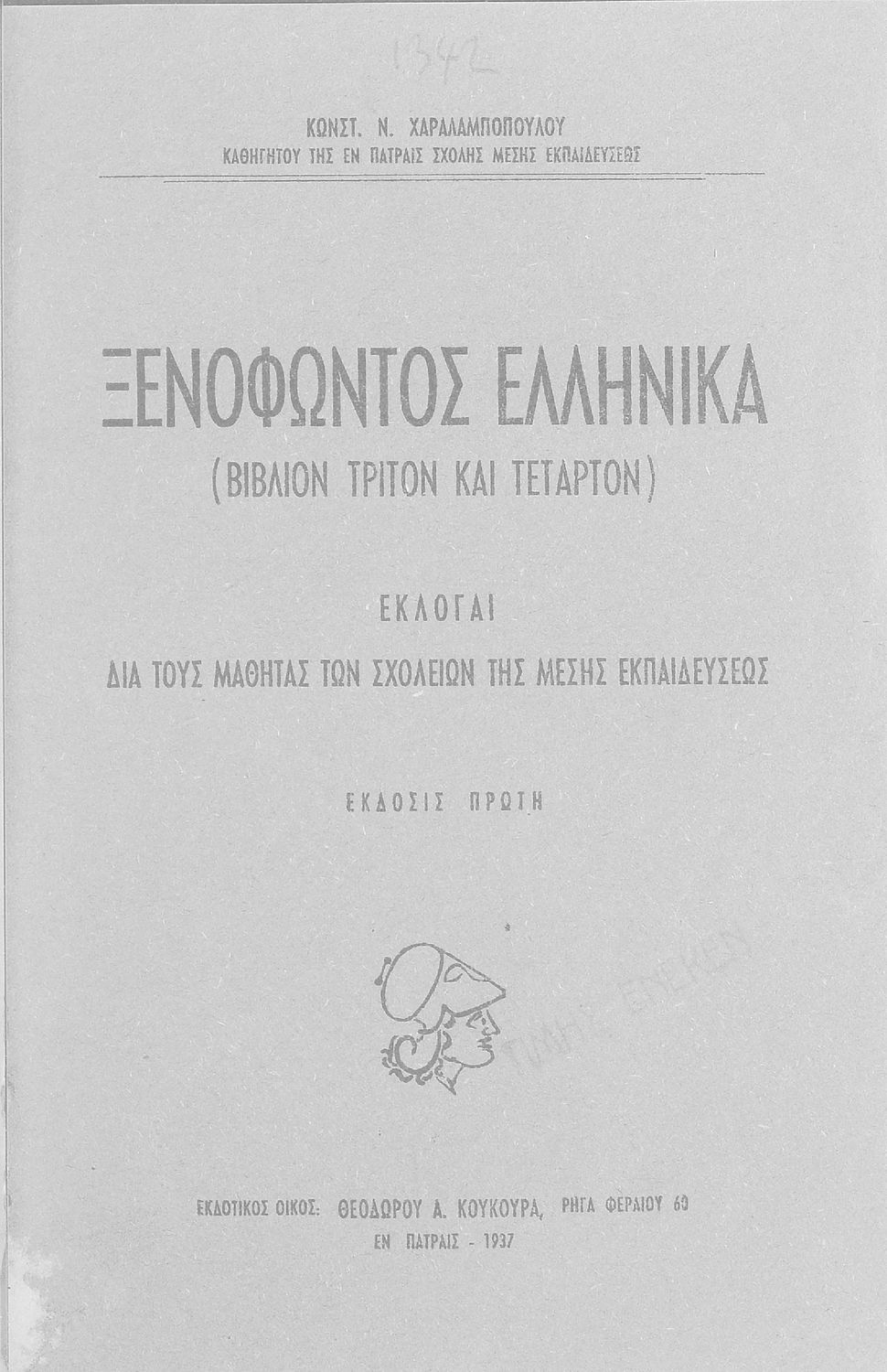 Σχολικό εγχειρίδιο Αρχαίων Ελληνικών που περιλαμβάνει αποσπάσματα από τα Ελληνικά του Ξενοφώντα, την εισαγωγή στο έργο, ερμηνευτικές σημειώσεις και χωρογραφικό πίνακα της περιοχής.