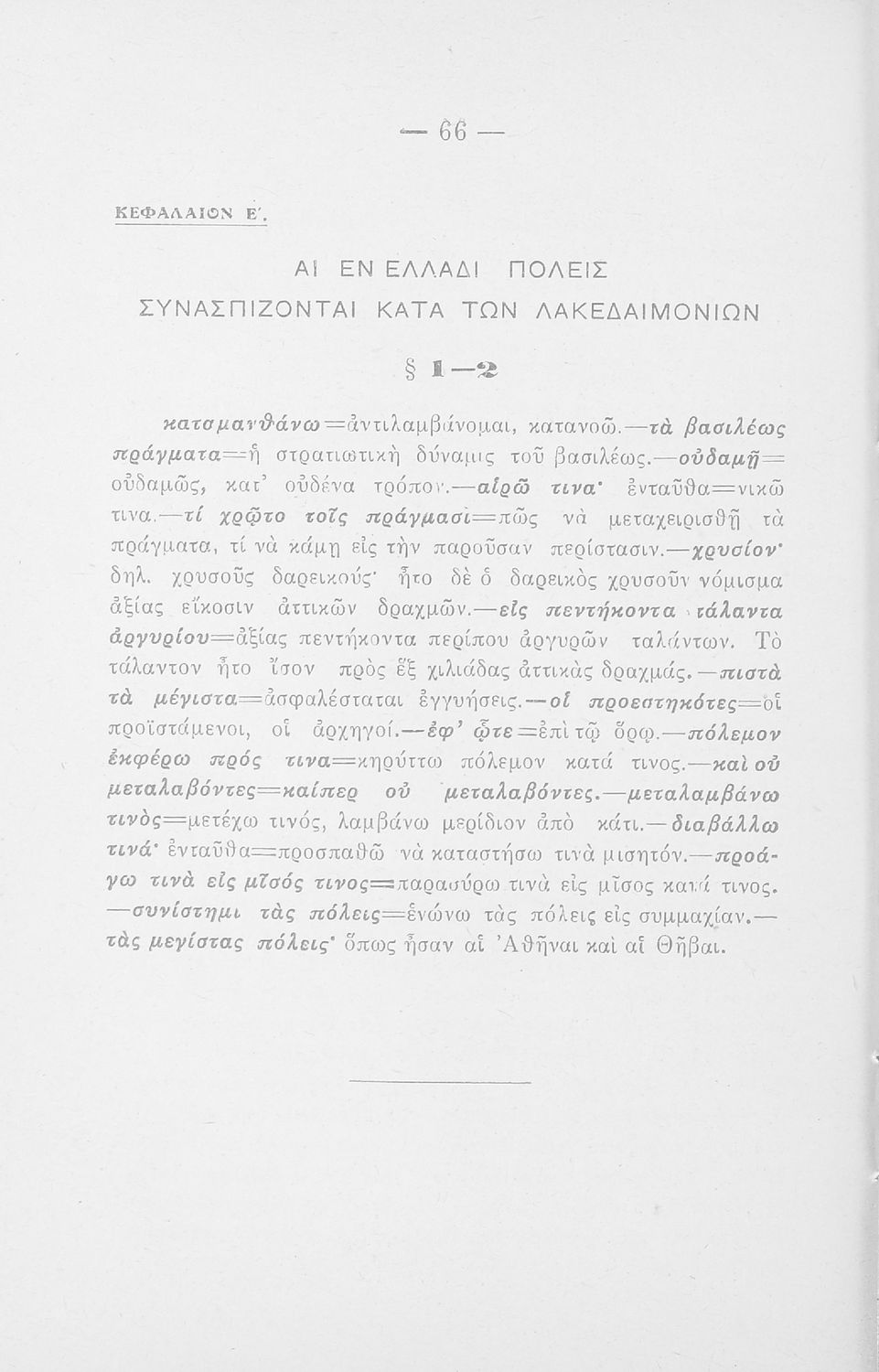 Βαθμίδα εκπαίδευσης: Δευτεροβάθμια Μάθημα: Αρχαία Ελληνικά Γλώσσα: Καθαρεύουσα Παρουσίαση περιεχομένου: Σχολικό εγχειρίδιο Αρχαίων Ελληνικών που περιλαμβάνει αποσπάσματα από τα Ελληνικά του Ξενοφώντα, την εισαγωγή στο έργο, ερμηνευτικές σημειώσεις και χωρογραφικό πίνακα της περιοχής. |