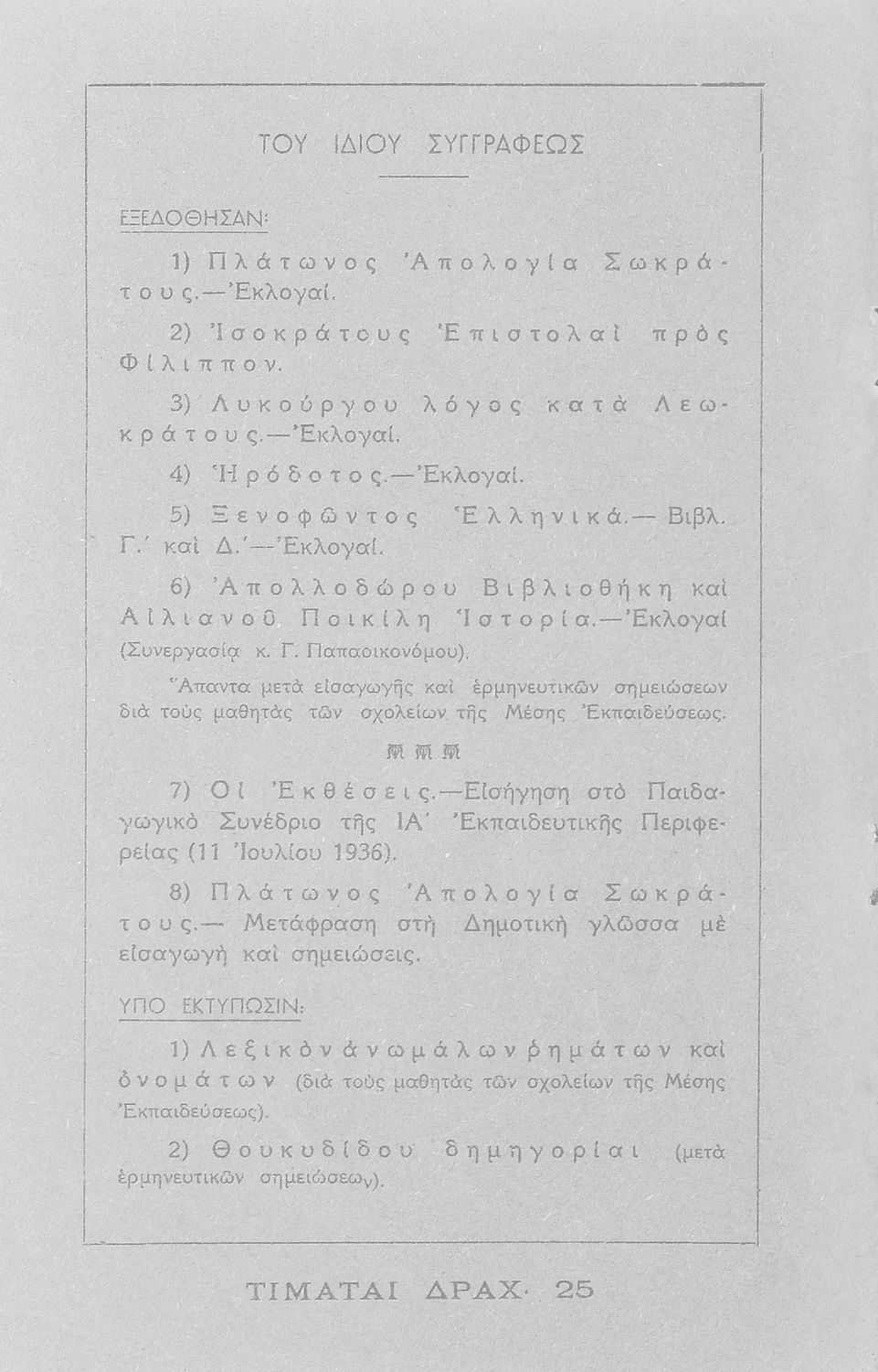 Εκδότης: Θεοδ. Α. Κούκουρας Έτος έκδοσης: 1937 Τόπος έκδοσης: Πάτρα Έκδοση: 1η |