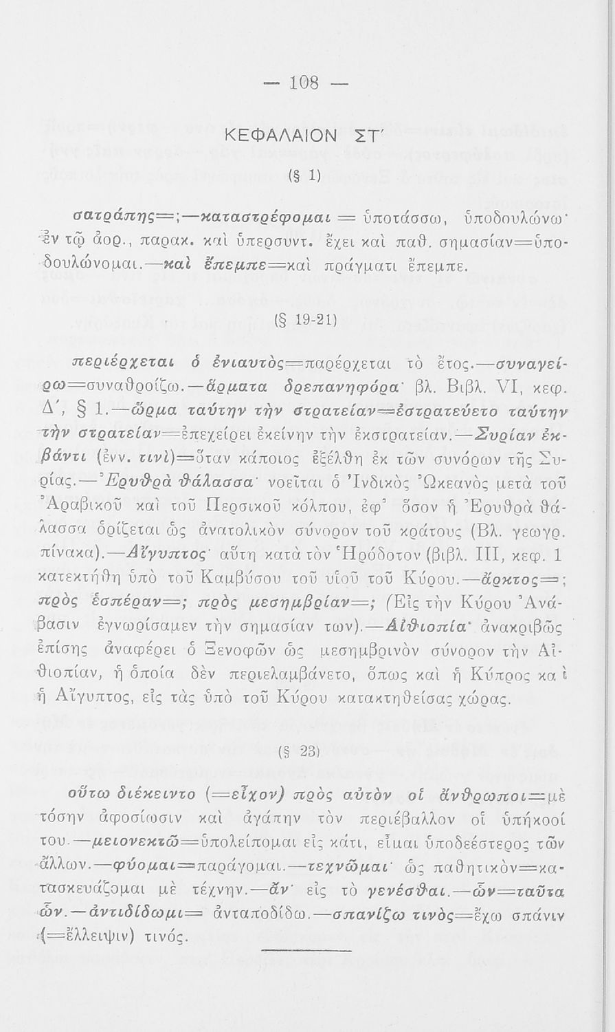 Σχολικό εγχειρίδιο Αρχαίων Ελληνικών για την Γ΄ Εξαταξίου Γυμνασίου που περιλαμβάνει εισαγωγή στη ζωή και το έργο του Ξενοφώντα, αποσπάσματα από το Κύρου Παιδεία, ερμηνευτικές σημειώσεις, σκίτσα που απεικονίζουν πολεμικά όπλα της εποχής και χωρογραφικό πίνακα της περιοχής.