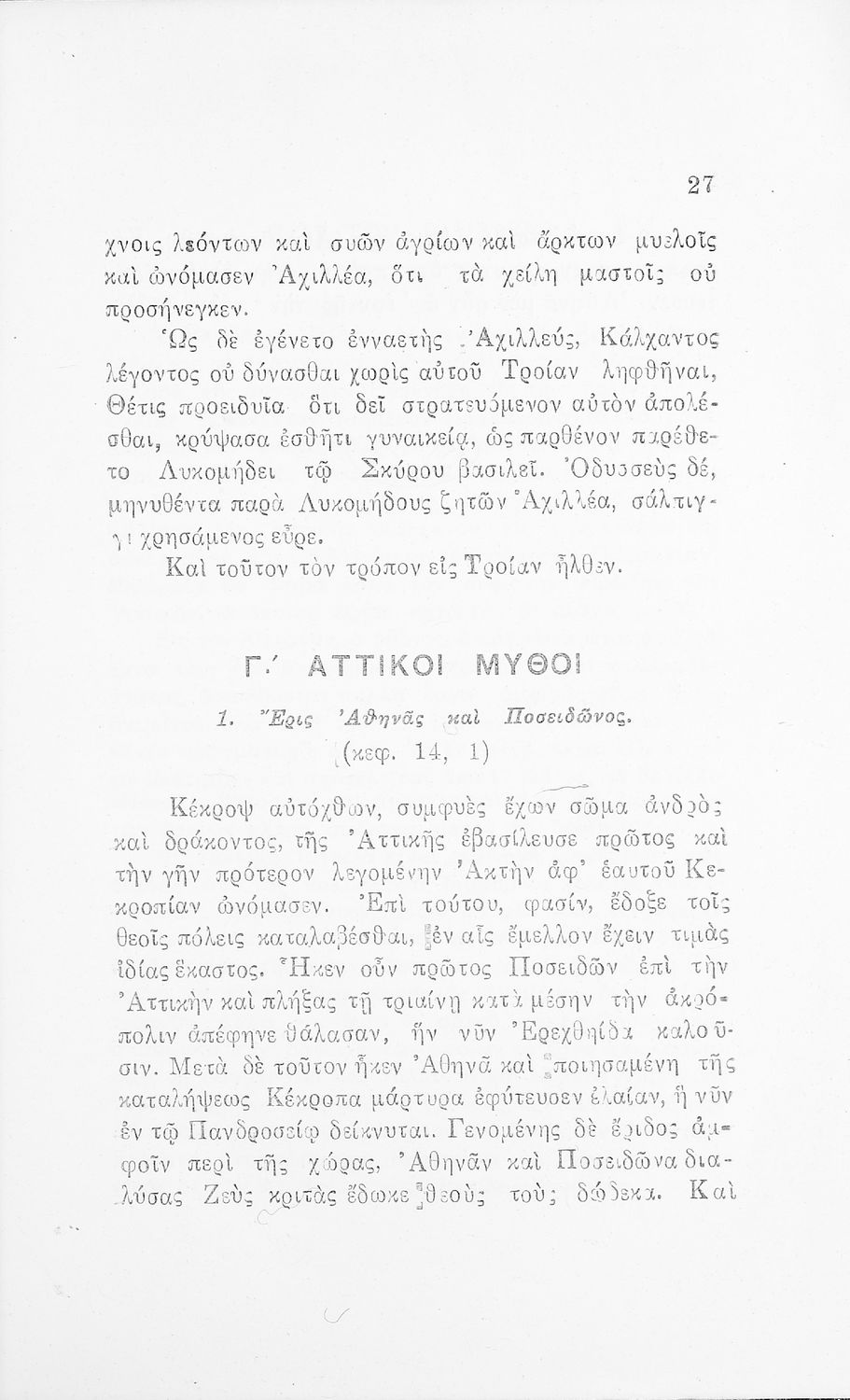 Σχολικό εγχειρίδιο Αρχαίων Ελληνικών Α΄ Γυμνασίου και Πρακτικού Λυκείου που περιλαμβάνει εισαγωγή στη ζωή και το έργο των Απολλόδωρου και Αιλιανού, αποσπάσματα από τη Βιβλιοθήκη του Απολλόδωρου και την Ποικίλη