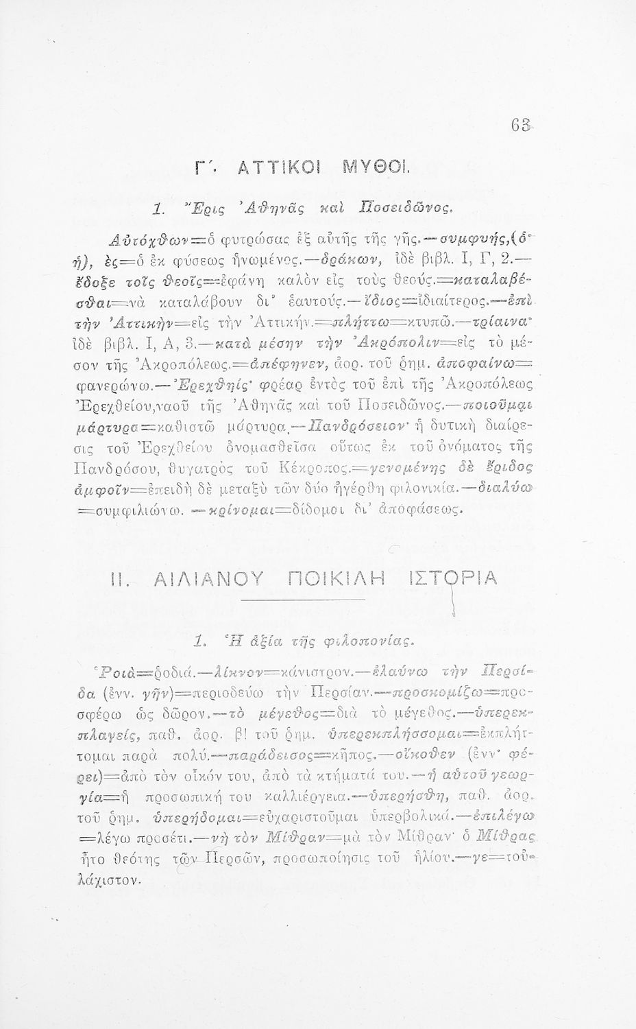 Βαθμίδα εκπαίδευσης: Δευτεροβάθμια Τάξη: Α' Γυμνασίου Μάθημα: Αρχαία Ελληνικά Γλώσσα: Καθαρεύουσα Παρουσίαση περιεχομένου: Σχολικό εγχειρίδιο Αρχαίων Ελληνικών Α΄ Γυμνασίου που περιλαμβάνει εισαγωγή στη ζωή και το έργο των Απολλόδωρου και Αιλιανού, αποσπάσματα από τη Βιβλιοθήκη του Απολλόδωρου και την Ποικίλη Ιστορία του Αιλιανού και ερμηνευτικές παρατηρήσεις και σχόλια. |