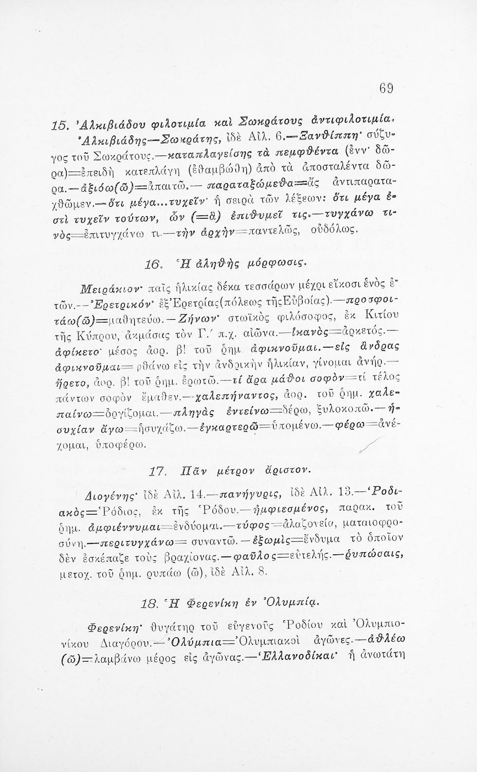 Βαθμίδα εκπαίδευσης: Δευτεροβάθμια Τάξη: Α' Γυμνασίου Μάθημα: Αρχαία Ελληνικά Γλώσσα: Καθαρεύουσα Παρουσίαση περιεχομένου: Σχολικό εγχειρίδιο Αρχαίων Ελληνικών Α΄ Γυμνασίου που περιλαμβάνει εισαγωγή στη ζωή και το έργο των Απολλόδωρου και Αιλιανού, αποσπάσματα από τη Βιβλιοθήκη του Απολλόδωρου και την Ποικίλη Ιστορία του Αιλιανού και ερμηνευτικές παρατηρήσεις και σχόλια. |