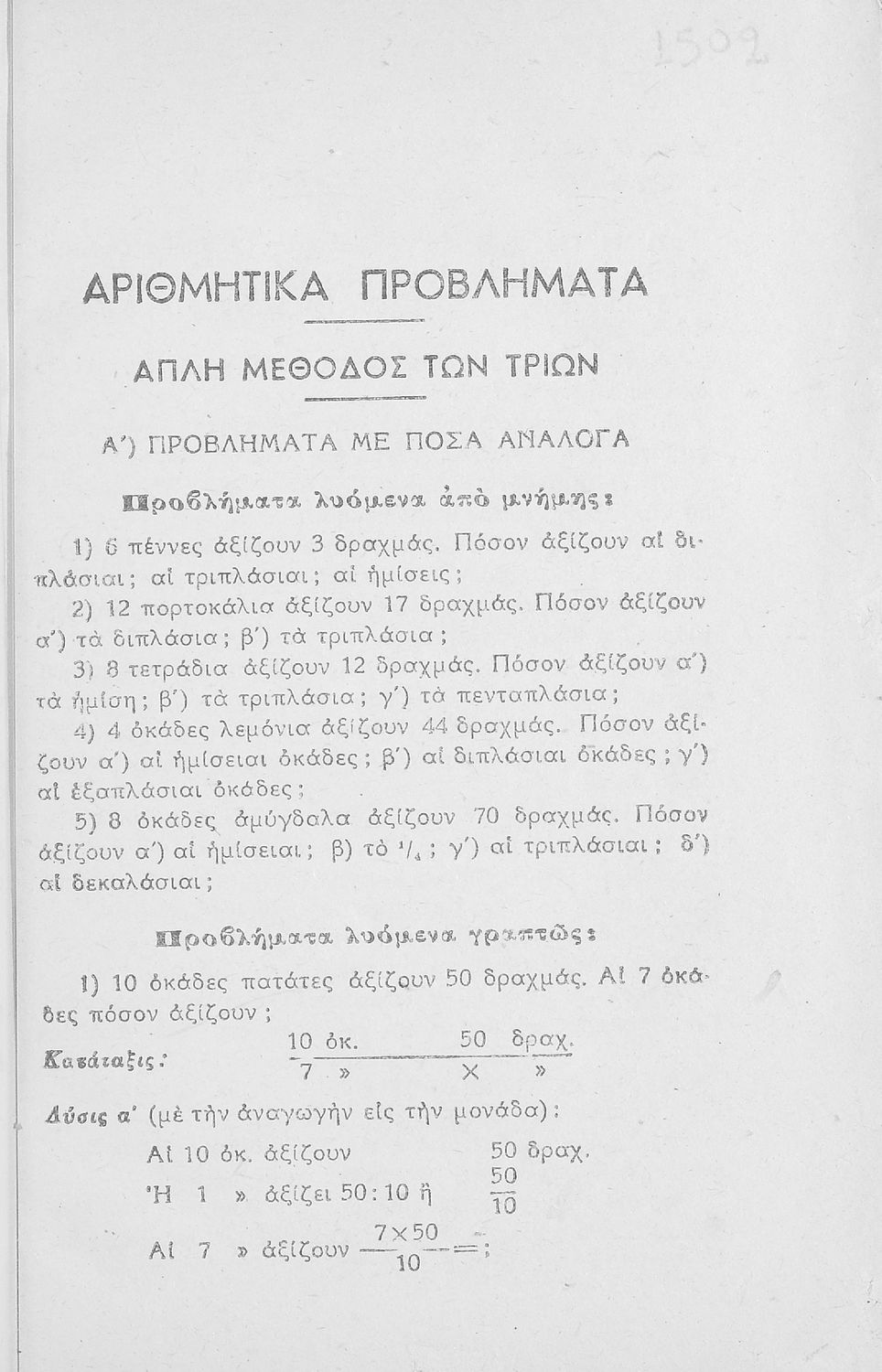 LDR 01150 2200217 4500 035 ## _a20-01502 040 ## _aΚΕΝΕΚ - Εταιρεία Σπουδών Νεοελληνικού Πολιτισμού και Παιδείας 041 ## _ael 100 ## _aΜαρία Λιουδάκη _aΣτέλιος Αλοΐζος 110 ## _a1502 245 0# _aΕγκεκριμένα αριθμητικά προβλήματα ΣΤ΄ Δημοτικού 250 ## _a8η Έκδοση 260 ## _aΑθήνα _bΠέτρος Δημητράκος _c1947 300 ## _a48 _c20 520 ## _aΜαθητικό βοήθημα Αριθμητικής και Γεωμετρίας ΣΤ΄ Δημοτικού που εστιάζει στα αριθμητικά προβλήματα και τα γεωμετρικά σχήματα. 521 ## _aΣΤ' Δημοτικού 522 ## _aΕλλάδα 546 ## _aΚαθαρεύουσα 563 ## _aΜαλακό Εξώφυλλο 583 ## _a50163/19-7-1936 _c1936 650 #4 _aΑριθμητικές πράξεις _aΓεωμετρικά σχήματα _aΕπιτόκιο _aΜέθοδος των τριών _aΜέρισμα _aΠοσοστό