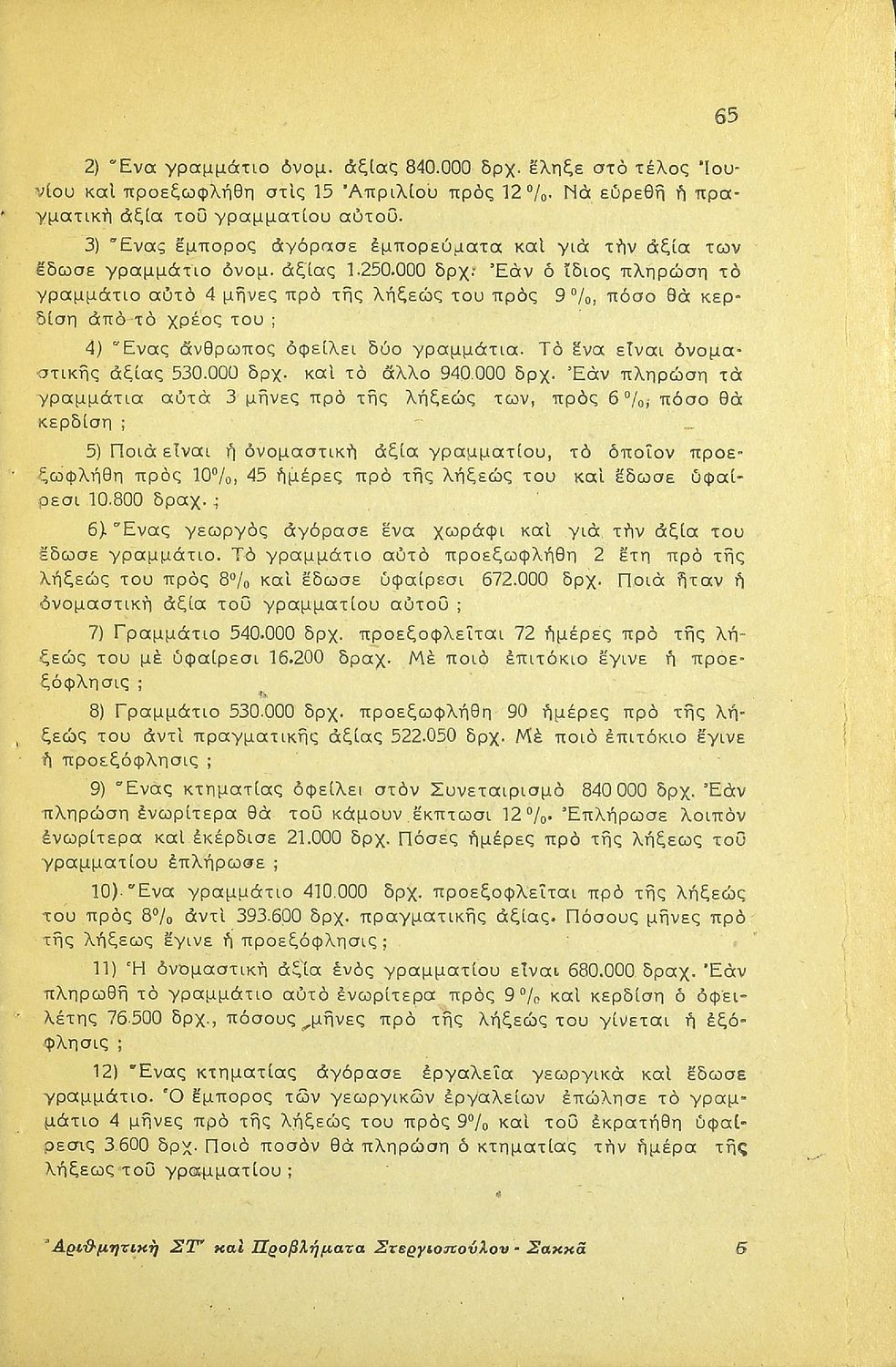 Μαθητικό βοήθημα Αριθμητικής ΣΤ΄ Δημοτικού που περιέχει αριθμητικά προβλήματα με επιχειρηματικό προσανατολισμό.