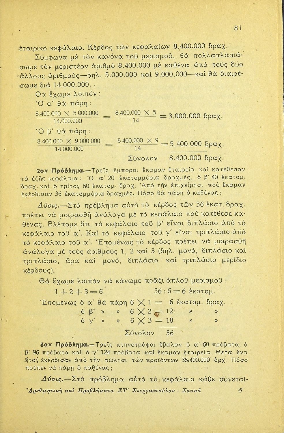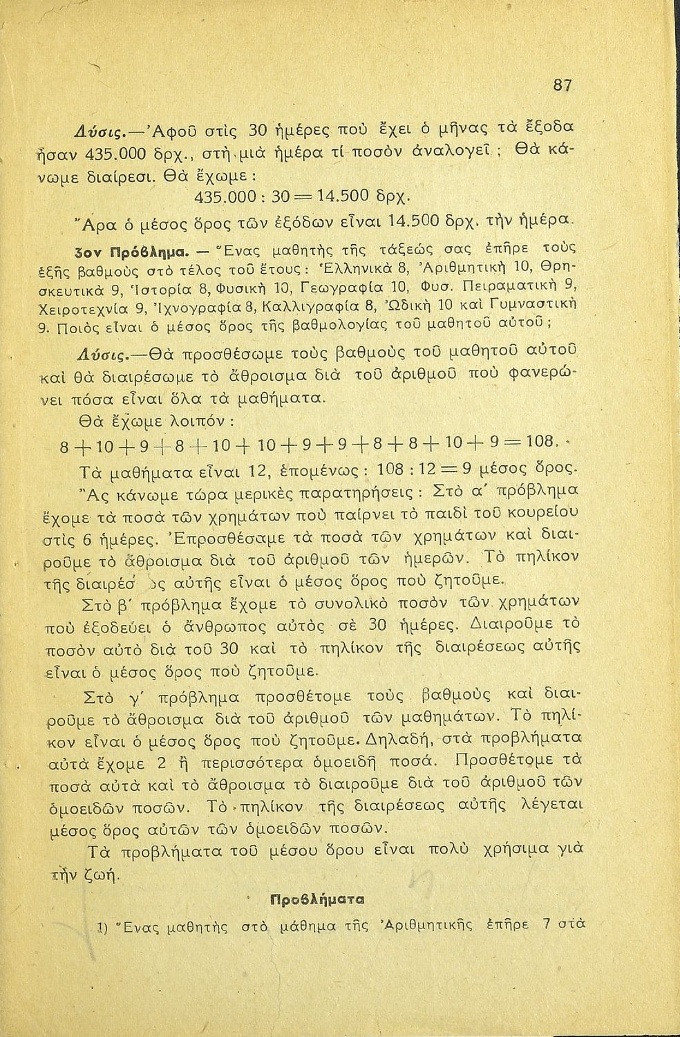 Παιδαγωγικό βοήθημα Αριθμητικής ΣΤ΄ Δημοτικού, γραμμένο σύμφωνα με τις επιταγές του Σχολείου Εργασίας, που περιλαμβάνει 170 μαθήματα, ένα για κάθε μέρα του σχολικού έτους.