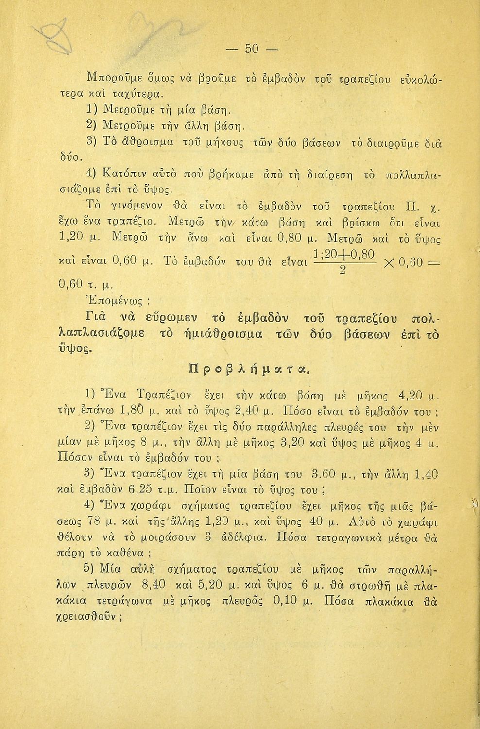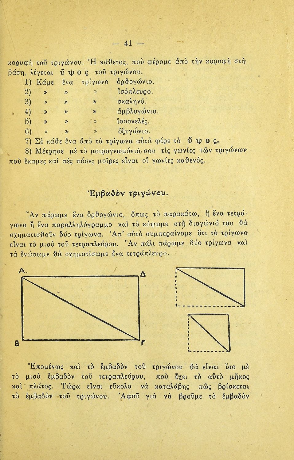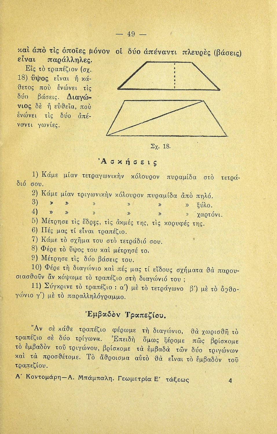 LDR 01113 2200205 4500 035 ## _a20-01510 040 ## _aΚΕΝΕΚ - Εταιρεία Σπουδών Νεοελληνικού Πολιτισμού και Παιδείας 041 ## _ael 100 ## _aΑ. Κοντομάρης _aΑ. Μπάμπαλης 110 ## _a1510 245 0# _aΓεωμετρία για την Πέμπτη τάξη του Δημοτικού Σχολείου 250 ## _a3η Έκδοση 260 ## _aΑθήνα _bΠέτρος Κ. Ράνος _c1948 300 ## _a60 _bΕξώφυλλο (έγχρωμο) _c21 520 ## _aΜαθητικό βοήθημα Γεωμετρίας Ε΄ Δημοτικού που περιλαμβάνει θεωρία, παραδείγματα, ασκήσεις και προβλήματα και εστιάζει στα γεωμετρικά σχήματα και σώματα και στην μέτρησή τους. 521 ## _aΕ' Δημοτικού 522 ## _aΕλλάδα 546 ## _aΔημοτική 563 ## _aΜαλακό Εξώφυλλο 650 #4 _aΕμβαδόν _aΤετράγωνο _aΤρίγωνο