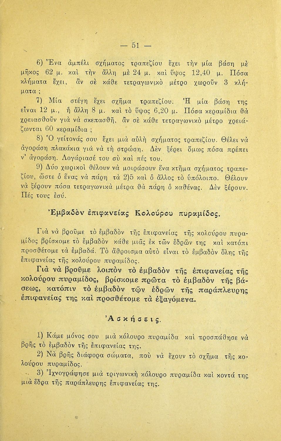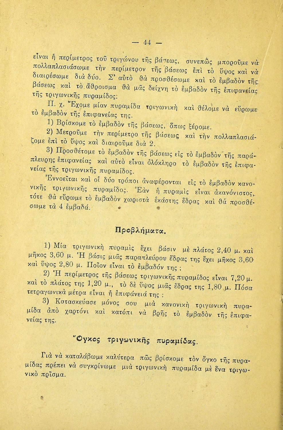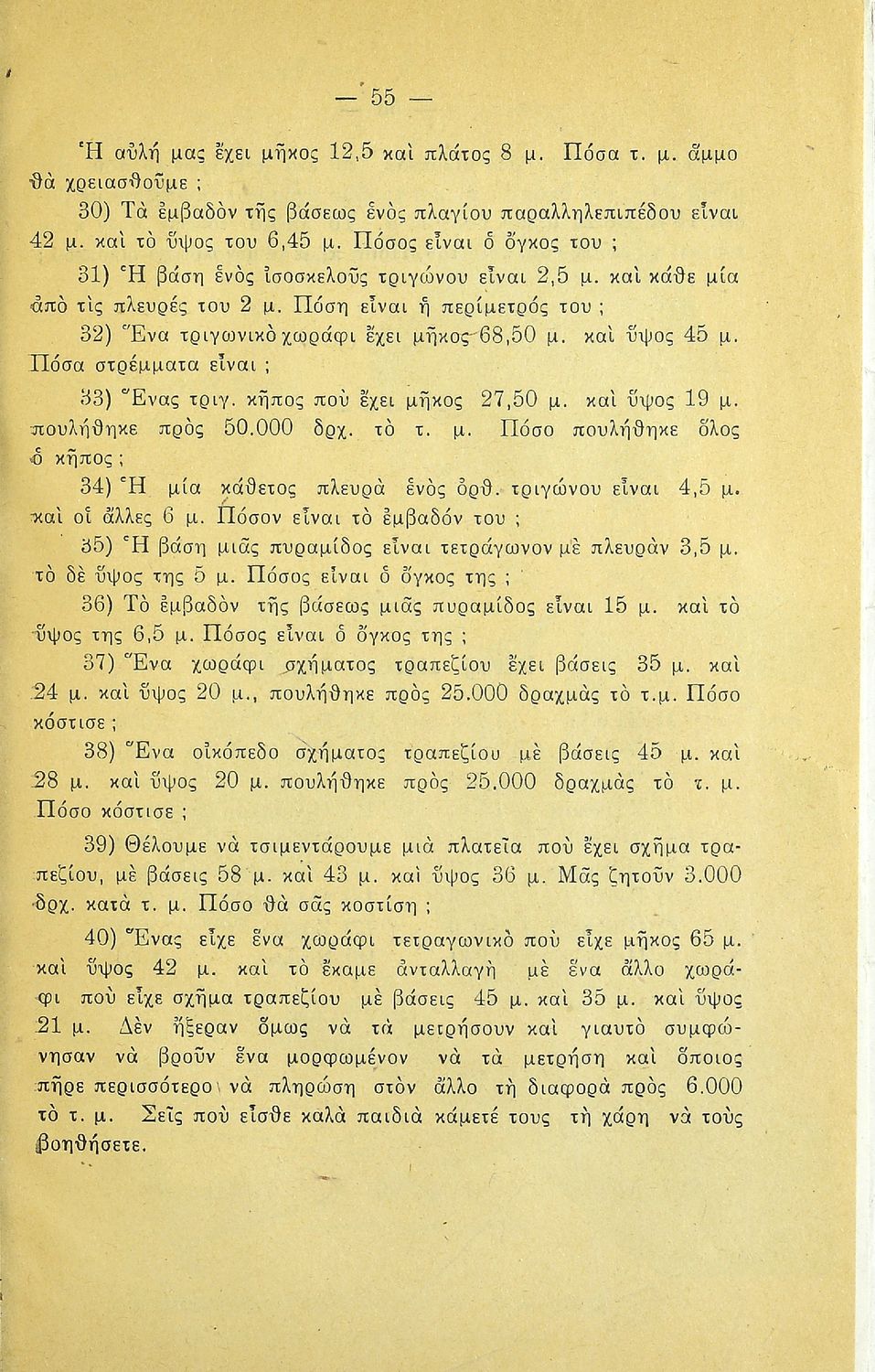 LDR 01113 2200205 4500 035 ## _a20-01510 040 ## _aΚΕΝΕΚ - Εταιρεία Σπουδών Νεοελληνικού Πολιτισμού και Παιδείας 041 ## _ael 100 ## _aΑ. Κοντομάρης _aΑ. Μπάμπαλης 110 ## _a1510 245 0# _aΓεωμετρία για την Πέμπτη τάξη του Δημοτικού Σχολείου 250 ## _a3η Έκδοση 260 ## _aΑθήνα _bΠέτρος Κ. Ράνος _c1948 300 ## _a60 _bΕξώφυλλο (έγχρωμο) _c21 520 ## _aΜαθητικό βοήθημα Γεωμετρίας Ε΄ Δημοτικού που περιλαμβάνει θεωρία, παραδείγματα, ασκήσεις και προβλήματα και εστιάζει στα γεωμετρικά σχήματα και σώματα και στην μέτρησή τους. 521 ## _aΕ' Δημοτικού 522 ## _aΕλλάδα 546 ## _aΔημοτική 563 ## _aΜαλακό Εξώφυλλο 650 #4 _aΕμβαδόν _aΤετράγωνο _aΤρίγωνο