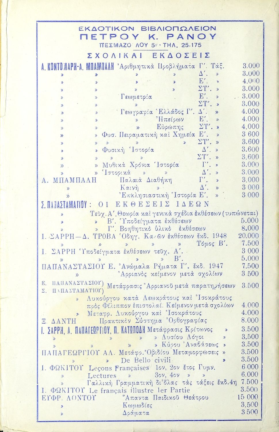 Εκδότης: Πέτρος Κ. Ράνος Έτος έκδοσης: 1948 Τόπος έκδοσης: Αθήνα Έκδοση: 3η |