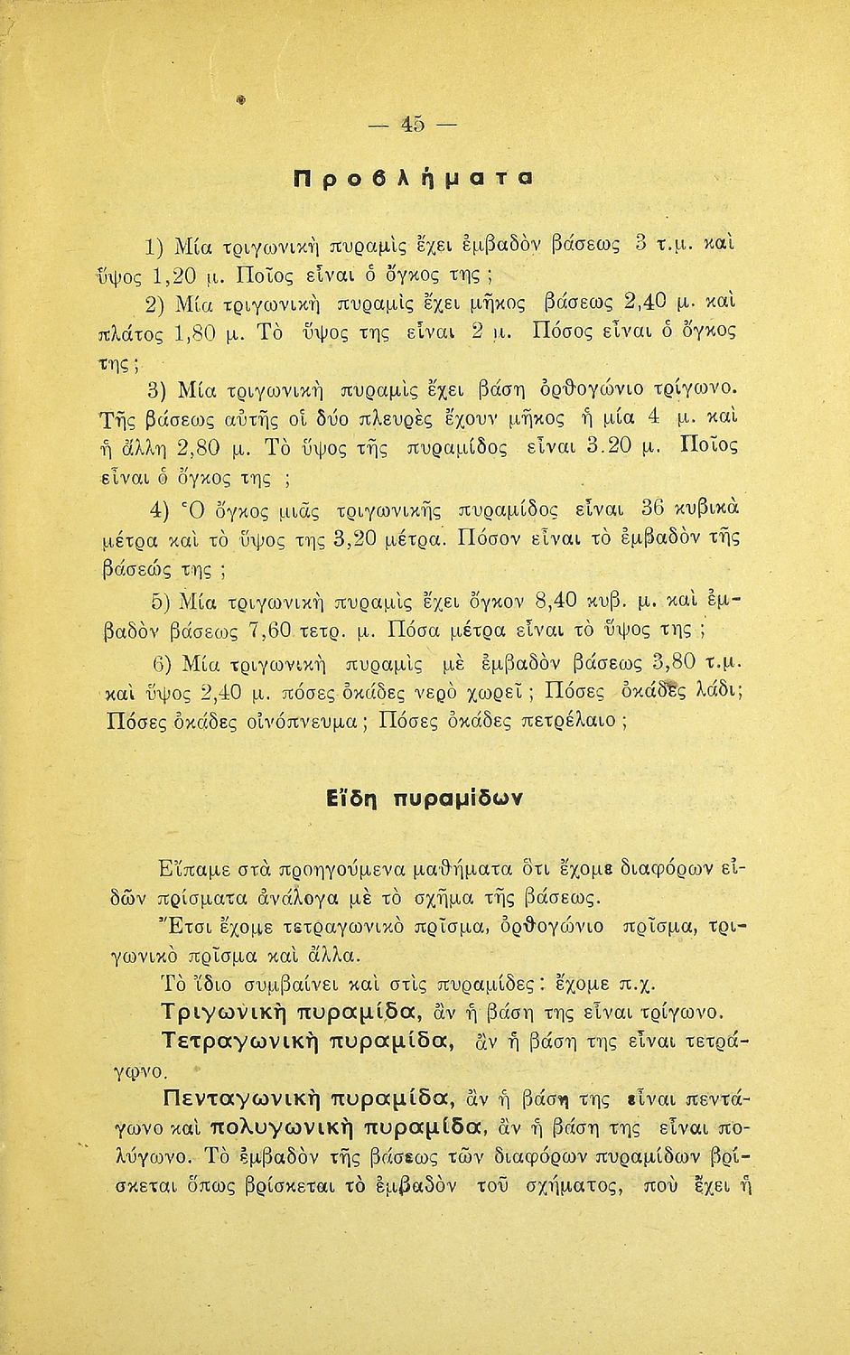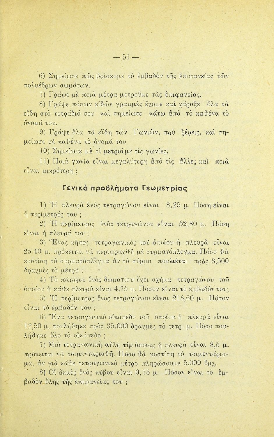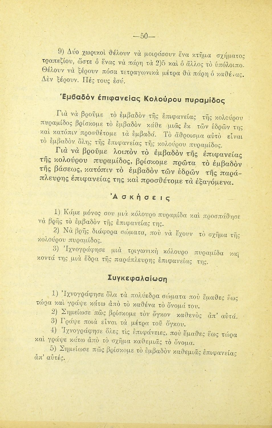 Σχετιζόμενοι όροι:  γεωμετρικά σχήματα, εμβαδά, όγκοι