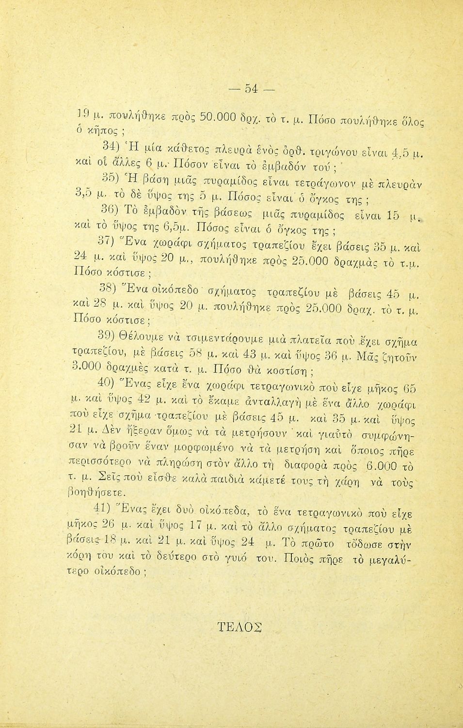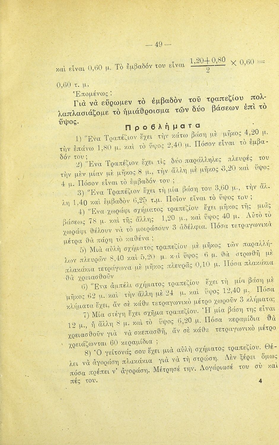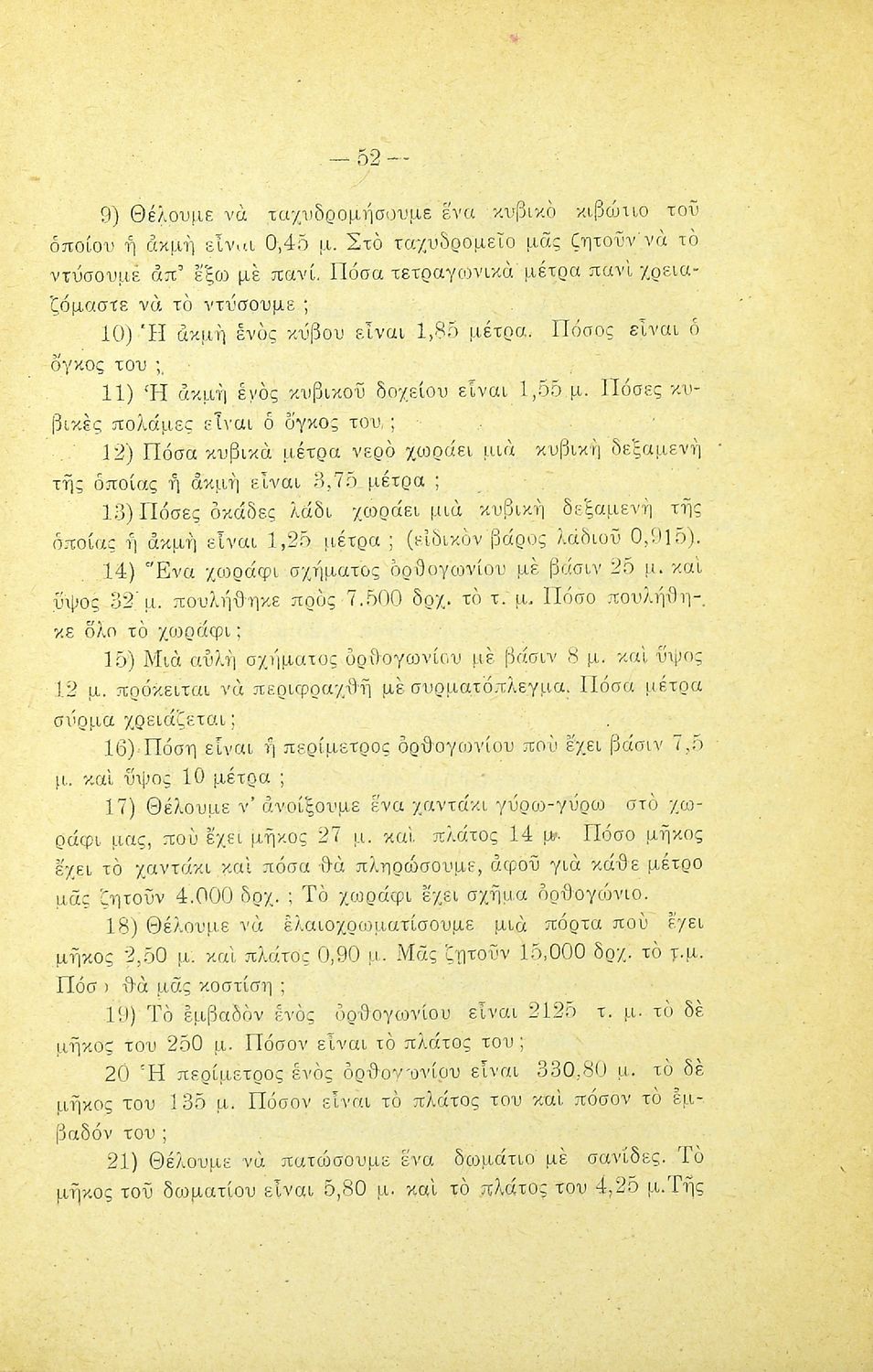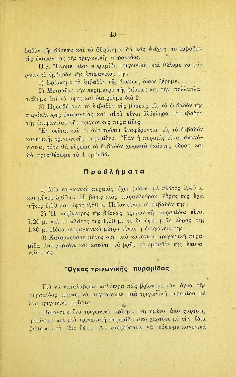 Σχετιζόμενοι όροι:  γεωμετρικά σχήματα, εμβαδά, όγκοι