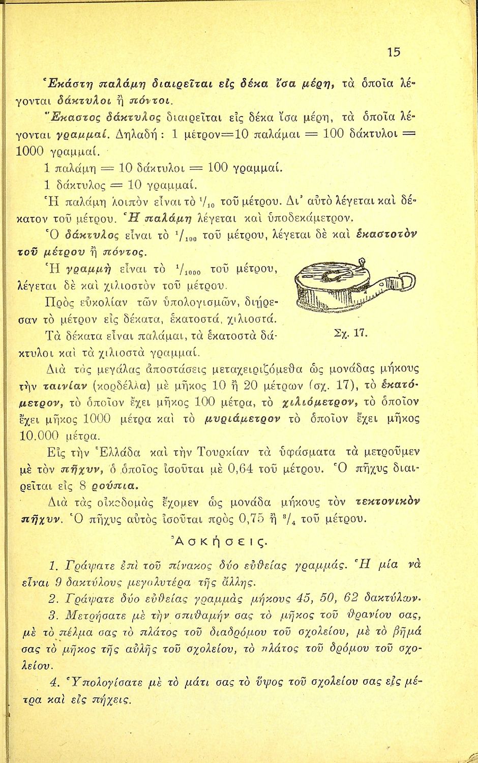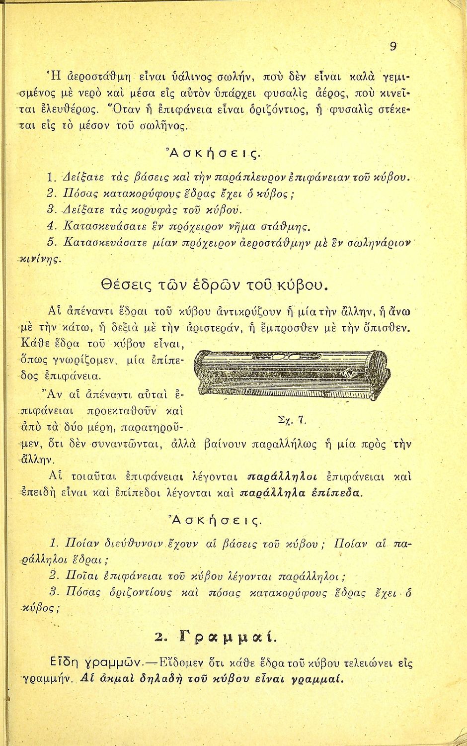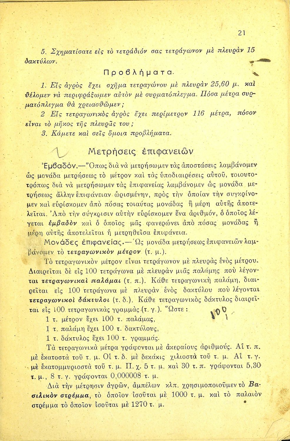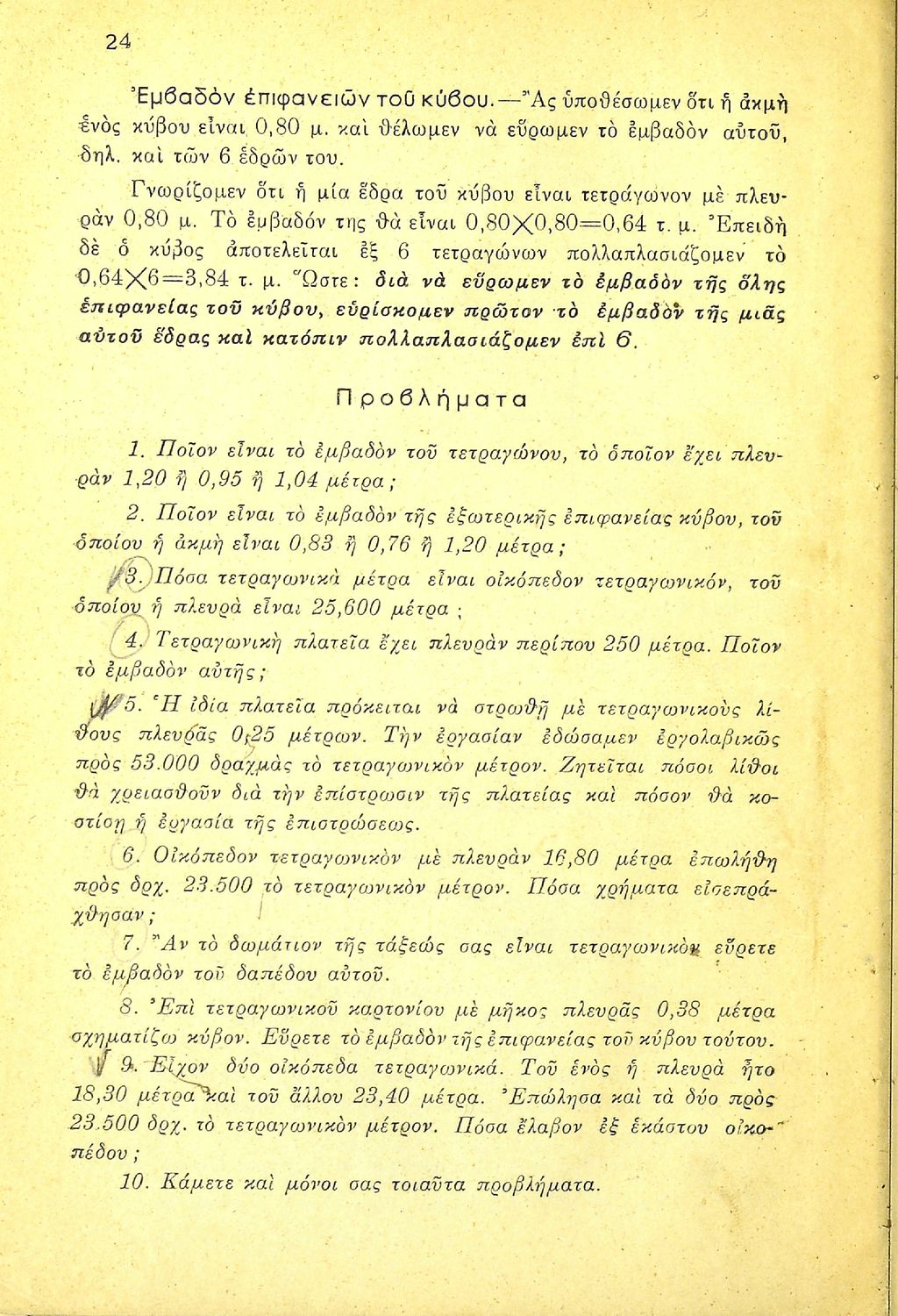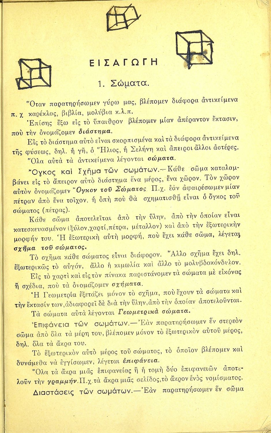 LDR 01215 2200205 4500 035 ## _a20-01513 040 ## _aΚΕΝΕΚ - Εταιρεία Σπουδών Νεοελληνικού Πολιτισμού και Παιδείας 041 ## _ael 100 ## _aΠαναγ. Δ. Παπαδόπουλος 110 ## _a1513 245 0# _aΠρακτική γεωμετρία προς χρήσιν των μαθητών της Ε΄ και ΣΤ΄ τάξεως των Δημοτικών Σχολείων 260 ## _aΑθήνα _bΠέτρος Δημητράκος _c1952 300 ## _a100 _bΕξώφυλλο (έγχρωμο) _c20 520 ## _aΜαθητικό βοήθημα Γεωμετρίας Ε΄ και ΣΤ΄ Δημοτικού που περιλαμβάνει θεωρία, παραδείγματα, ασκήσεις και προβλήματα και εστιάζει στα γεωμετρικά σχήματα και σώματα και στην μέτρησή τους. 521 ## _aΕ' Δημοτικού / ΣΤ' Δημοτικού 522 ## _aΕλλάδα 546 ## _aΚαθαρεύουσα 563 ## _aΜαλακό Εξώφυλλο 583 ## _a61452/12-6-1952 650 #4 _aΓωνία _aΚύκλος _aΌγκος _aΣφαίρα