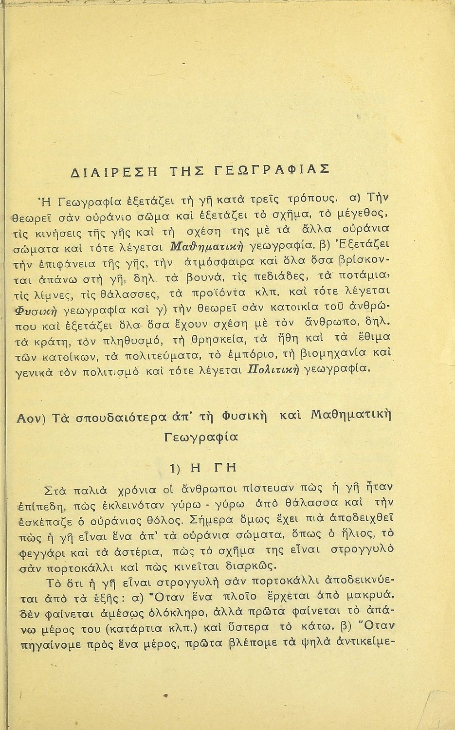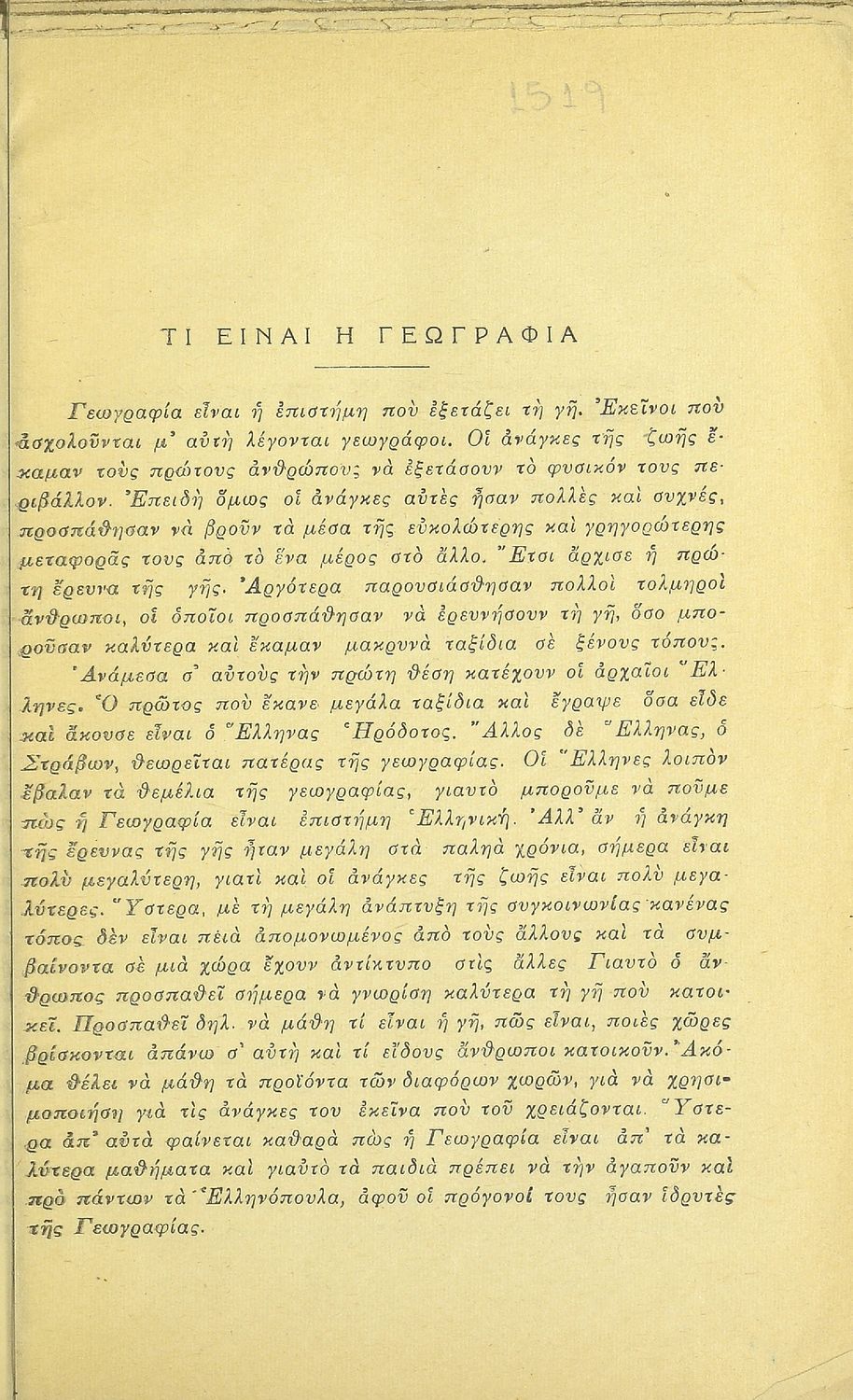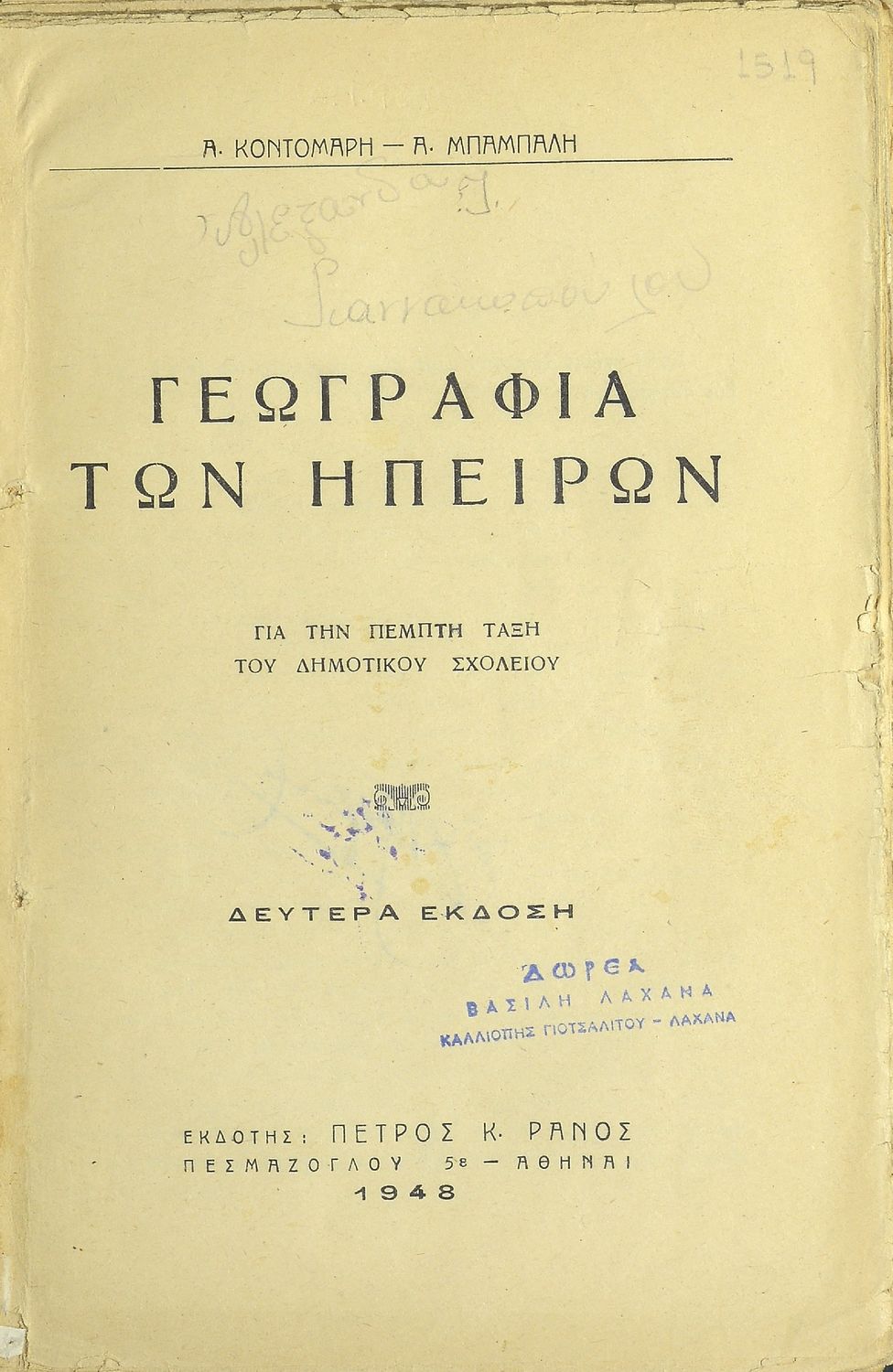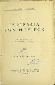 Σχολικό εγχειρίδιο Γεωγραφίας Α' Ελληνικού Σχολείου και Παρθεναγωγείου που περιλαμβάνει εισαγωγή περιέχει εισαγωγή στη μαθηματική, φυσική, φυσιογραφική και ανθρωπολογική γεωγραφία και εξετάζει τη ...
