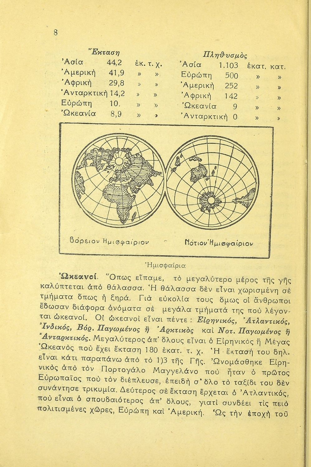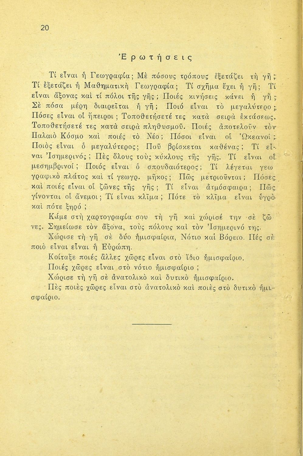 Μαθητικό βοήθημα Γεωγραφίας Ε΄ Δημοτικού που πραγματεύεται την σύσταση και δομή της Γης, τις ηπείρους πλην της Ευρώπης και τις μεγαλύτερες πληθυσμιακά πόλεις κατά το 1920. Περιέχει και συγκριτική μελέτη για ...