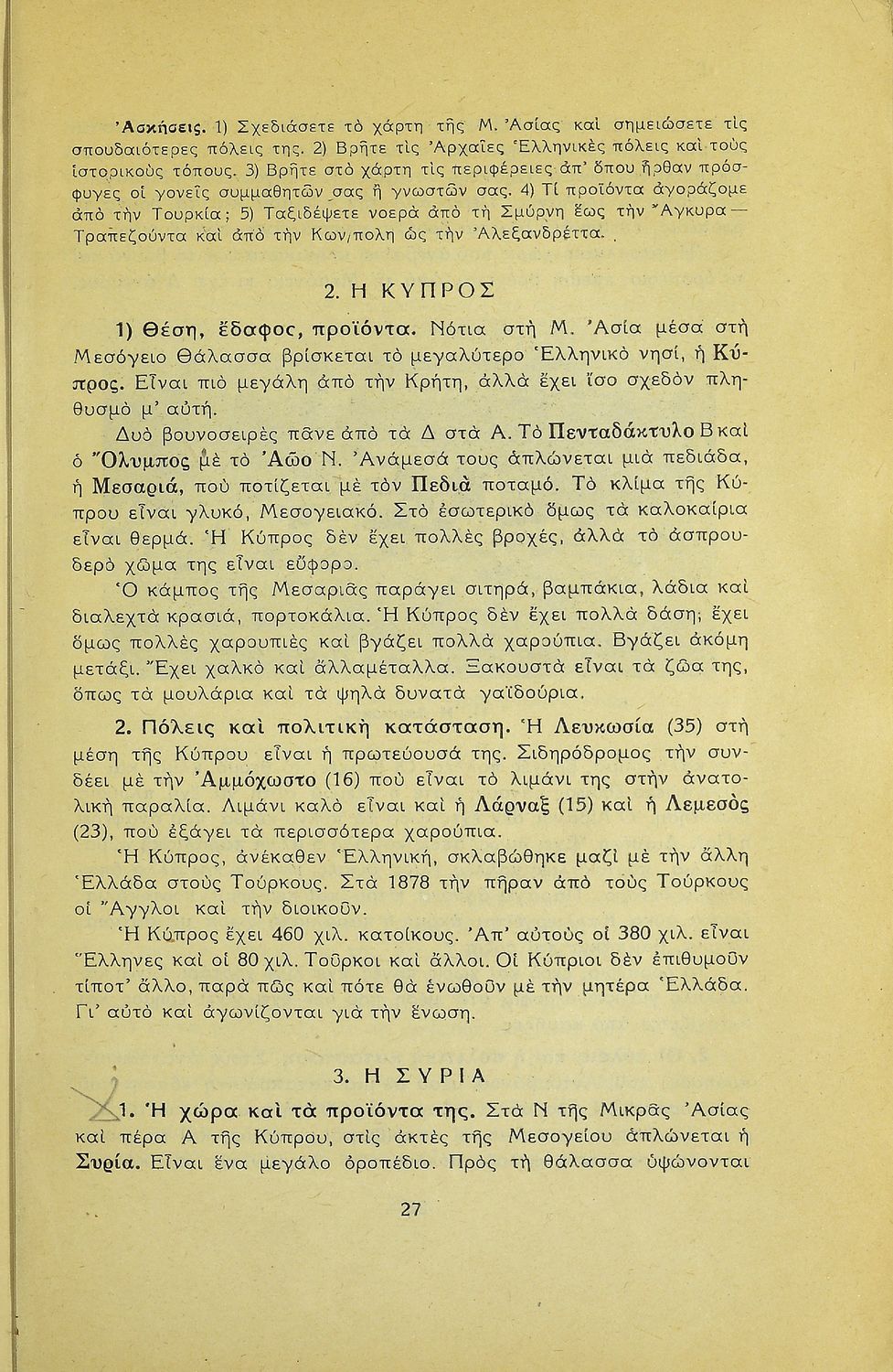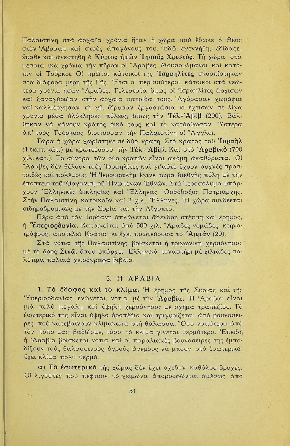 Βαθμίδα εκπαίδευσης: Πρωτοβάθμια Τάξη: Ε' Δημοτικού Μάθημα: Γεωγραφία Γλώσσα: Δημοτική Παρουσίαση περιεχομένου: Σχολικό εγχειρίδιο Γεωγραφίας Ε΄ Δημοτικού που πραγματεύεται ζητήματα φυσικής και μαθηματικής γεωγραφίας και εστιάζει στην γεωμορφολογική σύσταση και γεωπολιτική σύνθεση της Ασίας, της Αφρικής και της Αμερικής. |