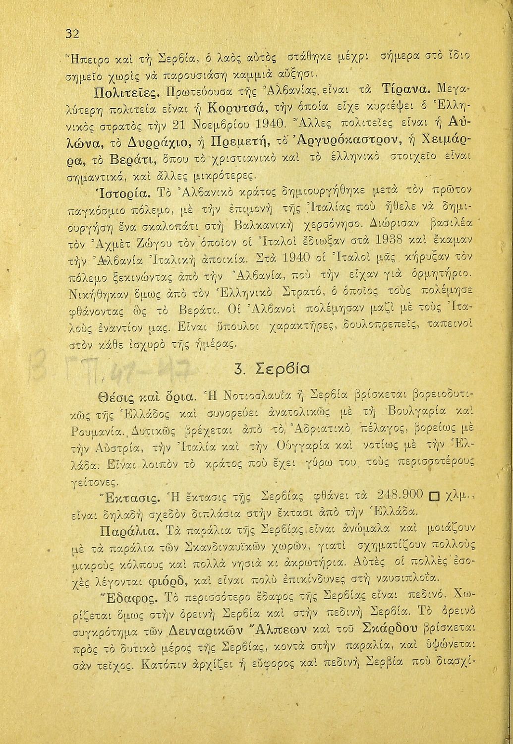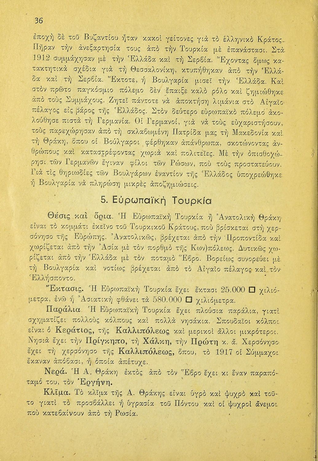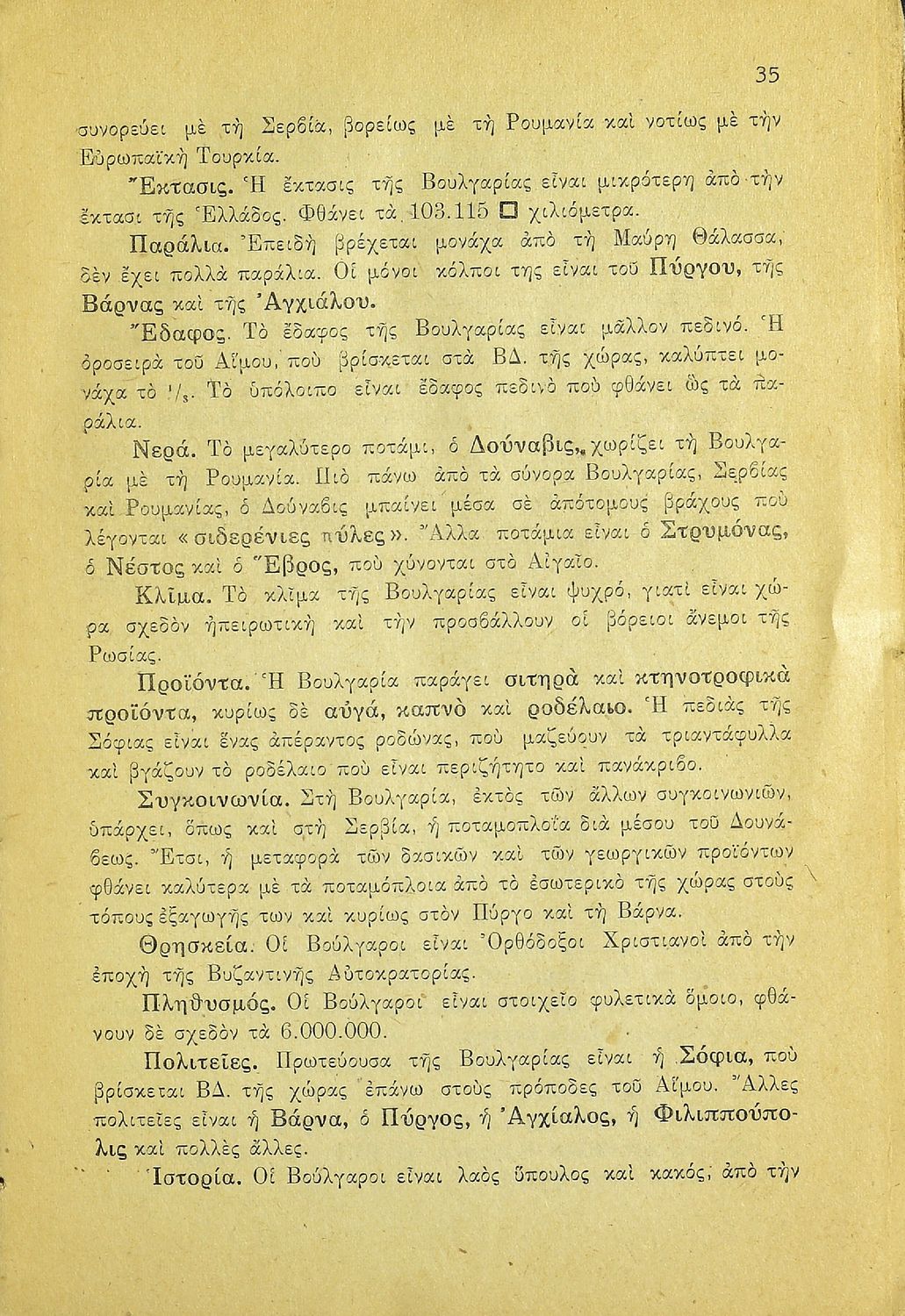 Βαθμίδα εκπαίδευσης: Πρωτοβάθμια Τάξη: ΣΤ' Δημοτικού Μάθημα: Γεωγραφία Γλώσσα: Απλή καθαρεύουσα Παρουσίαση περιεχομένου: Μαθητικό βοήθημα Γεωγραφίας ΣΤ΄ Γυμνασίου που περιέχει στοιχεία φυσικής και μαθηματικής γεωγραφίας και εξετάζει τα κράτη της Ευρώπη από γεωφυσική, πολιτική και οικονομική άποψη. Περιλαμβάνει και στοιχεία ανθρωπογεωγραφίας. |