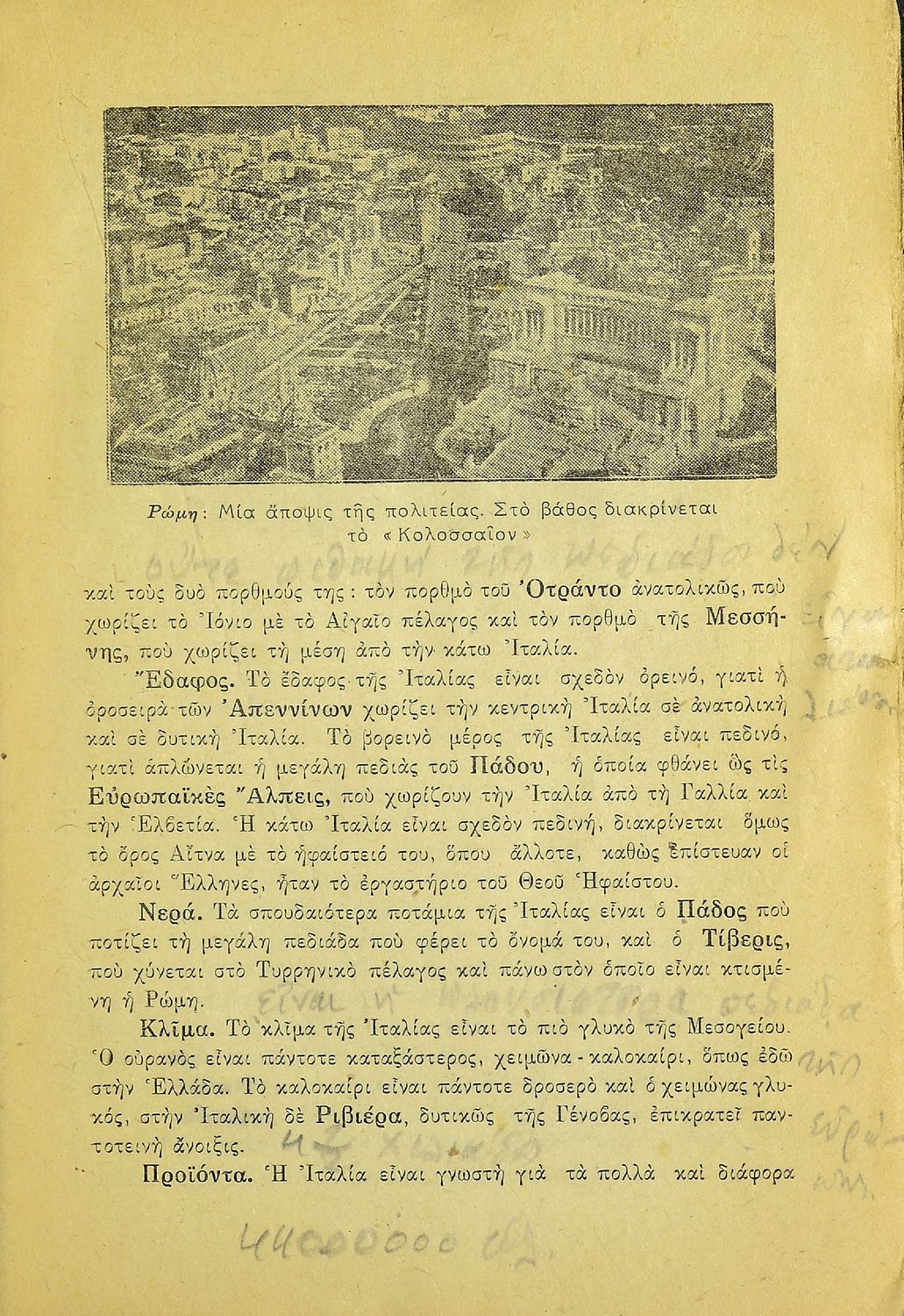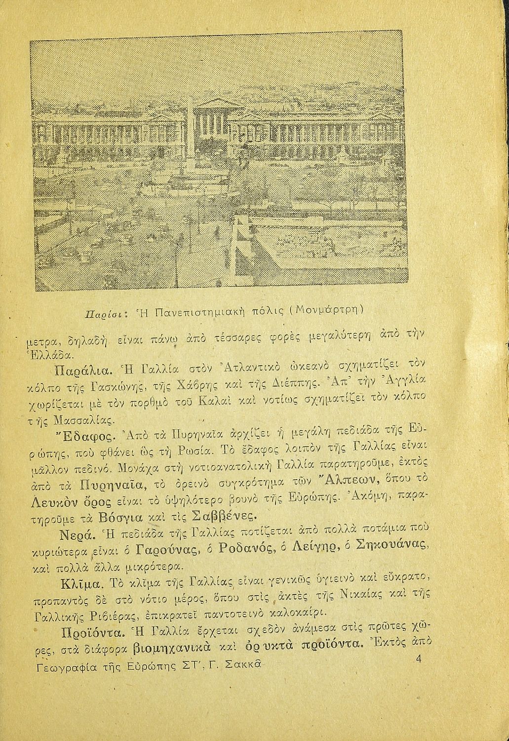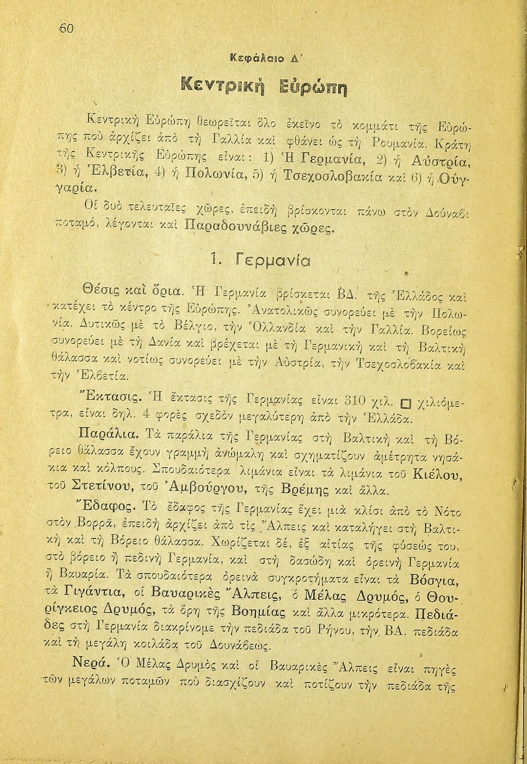 Βαθμίδα εκπαίδευσης: Πρωτοβάθμια Τάξη: ΣΤ' Δημοτικού Μάθημα: Γεωγραφία Γλώσσα: Απλή καθαρεύουσα Παρουσίαση περιεχομένου: Μαθητικό βοήθημα Γεωγραφίας ΣΤ΄ Γυμνασίου που περιέχει στοιχεία φυσικής και μαθηματικής γεωγραφίας και εξετάζει τα κράτη της Ευρώπη από γεωφυσική, πολιτική και οικονομική άποψη. Περιλαμβάνει και στοιχεία ανθρωπογεωγραφίας. |