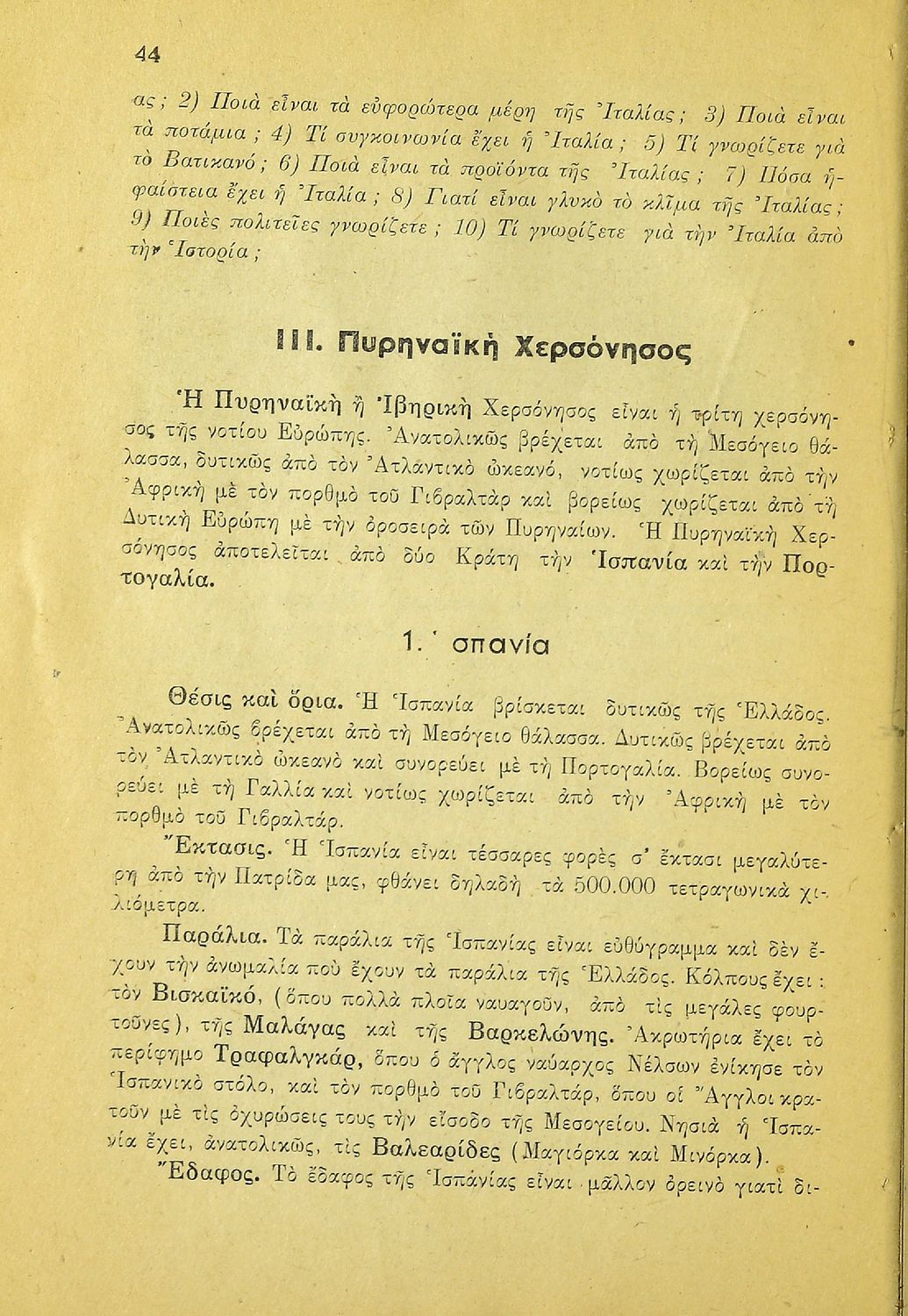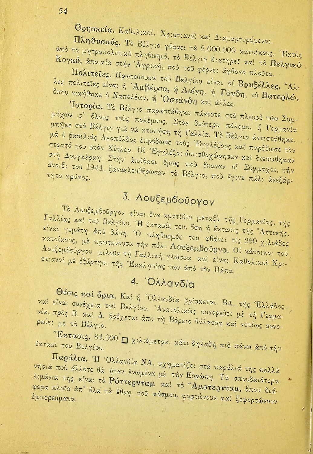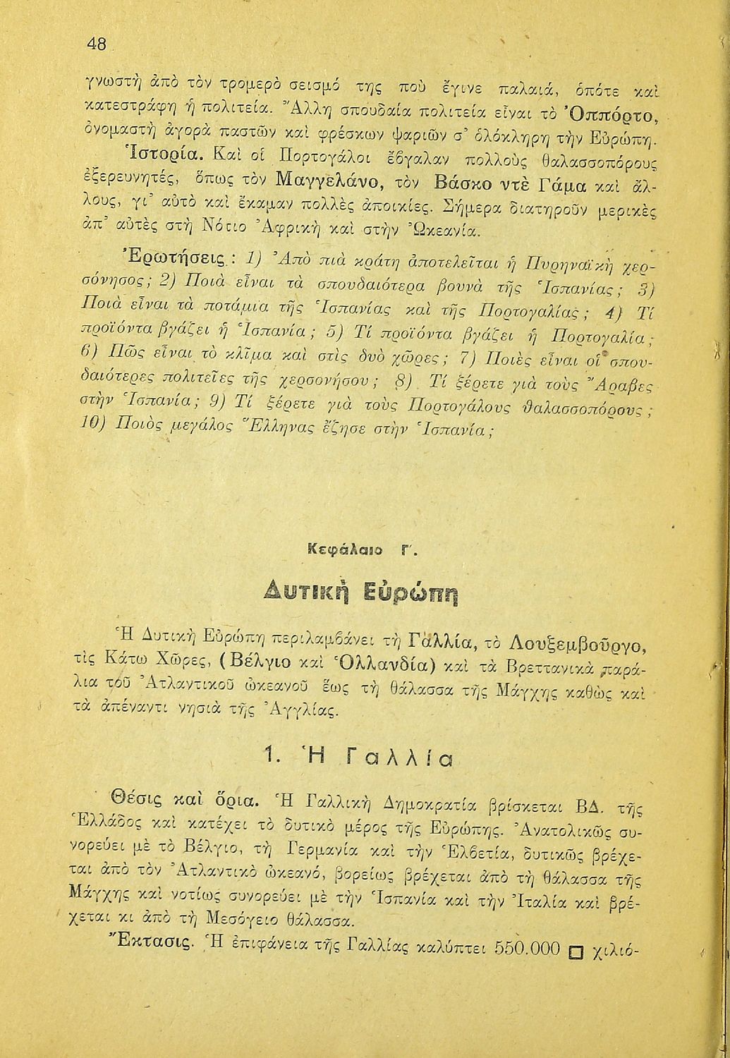 Βαθμίδα εκπαίδευσης: Πρωτοβάθμια Τάξη: ΣΤ' Δημοτικού Μάθημα: Γεωγραφία Γλώσσα: Απλή καθαρεύουσα Παρουσίαση περιεχομένου: Μαθητικό βοήθημα Γεωγραφίας ΣΤ΄ Γυμνασίου που περιέχει στοιχεία φυσικής και μαθηματικής γεωγραφίας και εξετάζει τα κράτη της Ευρώπη από γεωφυσική, πολιτική και οικονομική άποψη. Περιλαμβάνει και στοιχεία ανθρωπογεωγραφίας. |