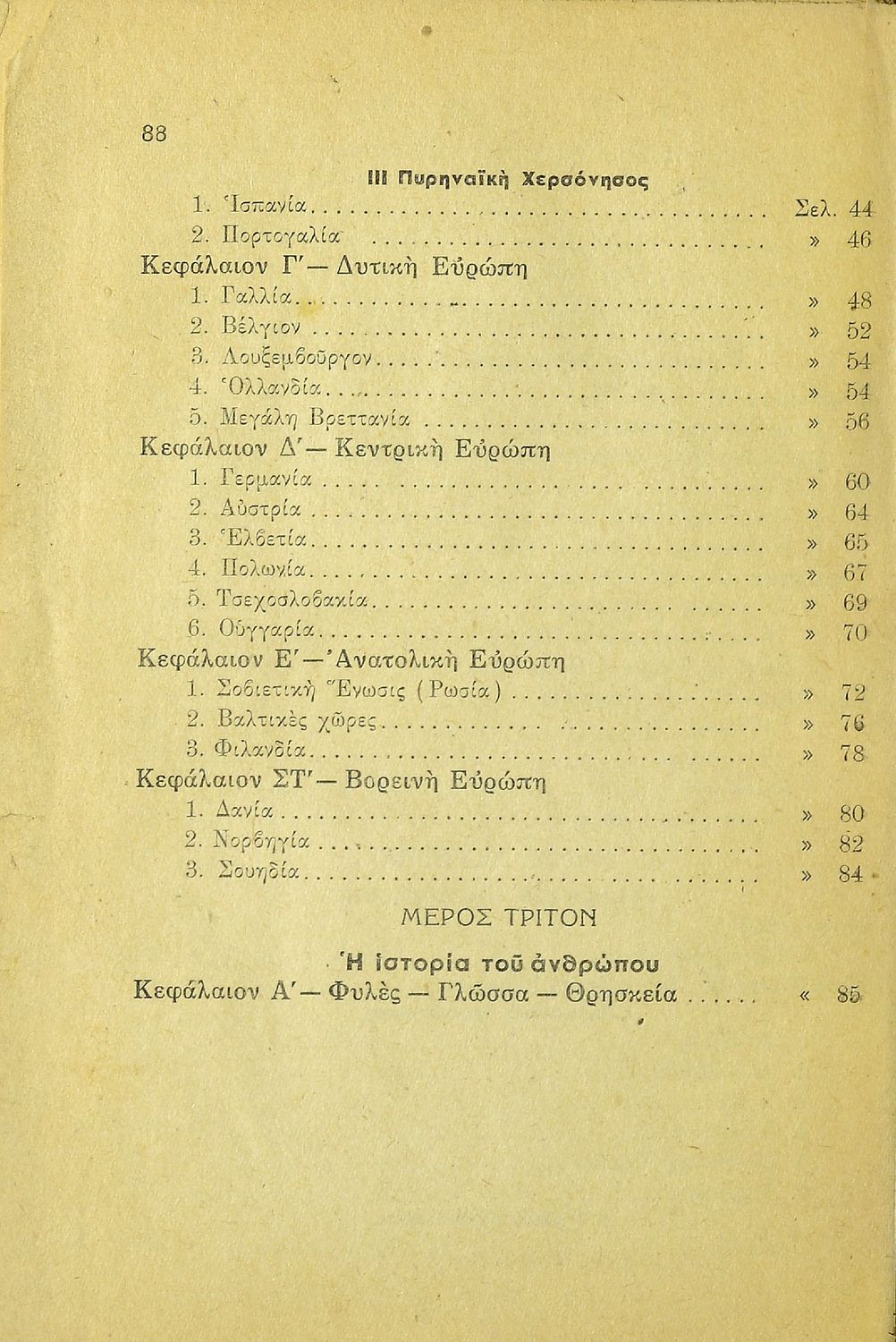 Βαθμίδα εκπαίδευσης: Πρωτοβάθμια Τάξη: ΣΤ' Δημοτικού Μάθημα: Γεωγραφία Γλώσσα: Απλή καθαρεύουσα Παρουσίαση περιεχομένου: Μαθητικό βοήθημα Γεωγραφίας ΣΤ΄ Γυμνασίου που περιέχει στοιχεία φυσικής και μαθηματικής γεωγραφίας και εξετάζει τα κράτη της Ευρώπη από γεωφυσική, πολιτική και οικονομική άποψη. Περιλαμβάνει και στοιχεία ανθρωπογεωγραφίας. |