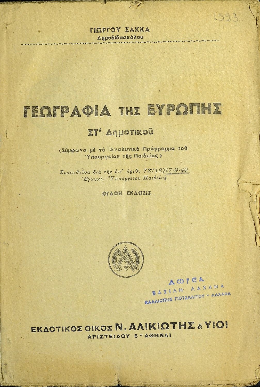 Εκδότης: Εκδόσεις Ατλαντίς Έτος έκδοσης: 1949 Τόπος έκδοσης: Αθήνα Έκδοση: 8η Υπουργική απόφαση / Σύμβαση: 73718/17-9-1949 Έτος έγκρισης: 1949 |