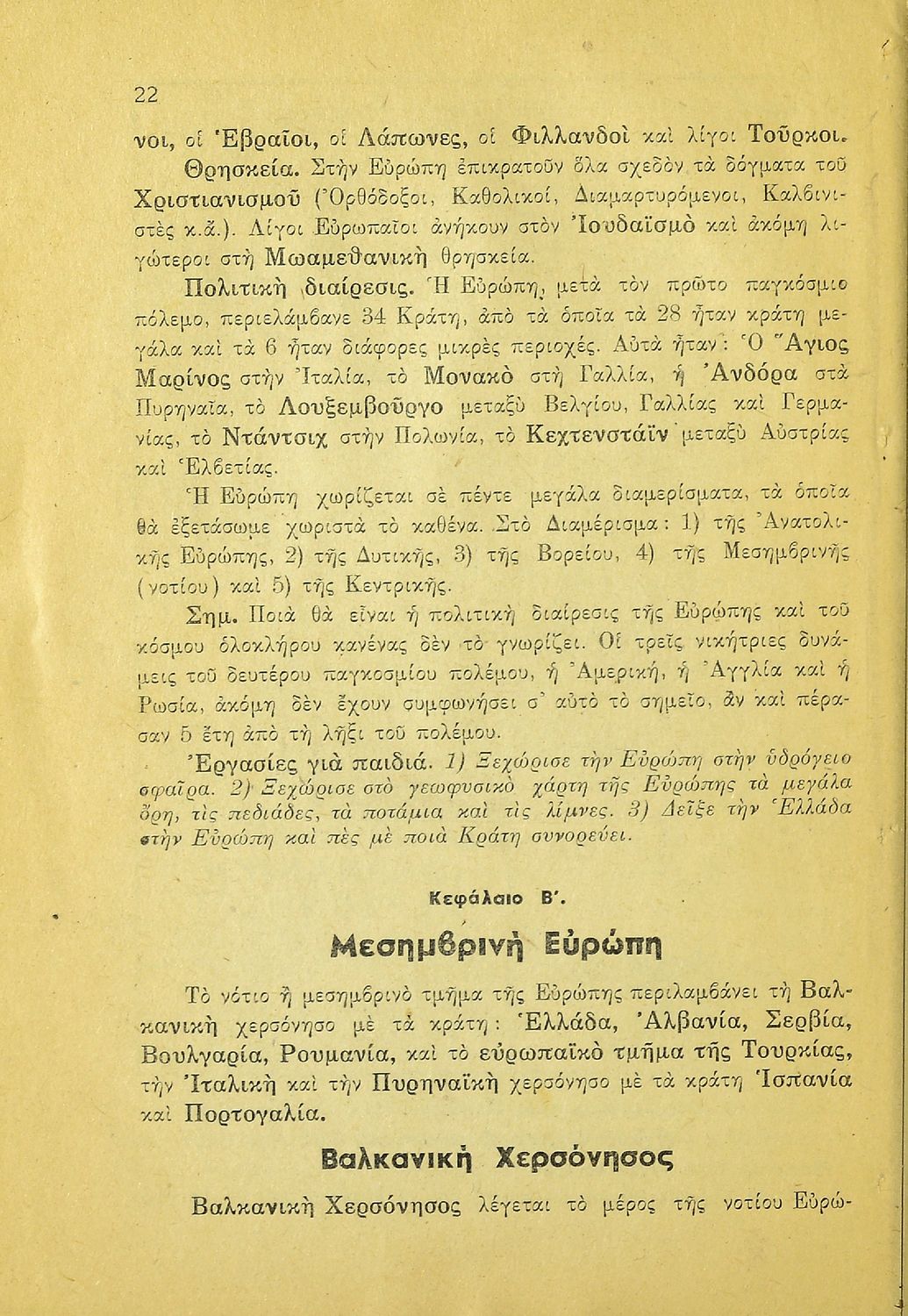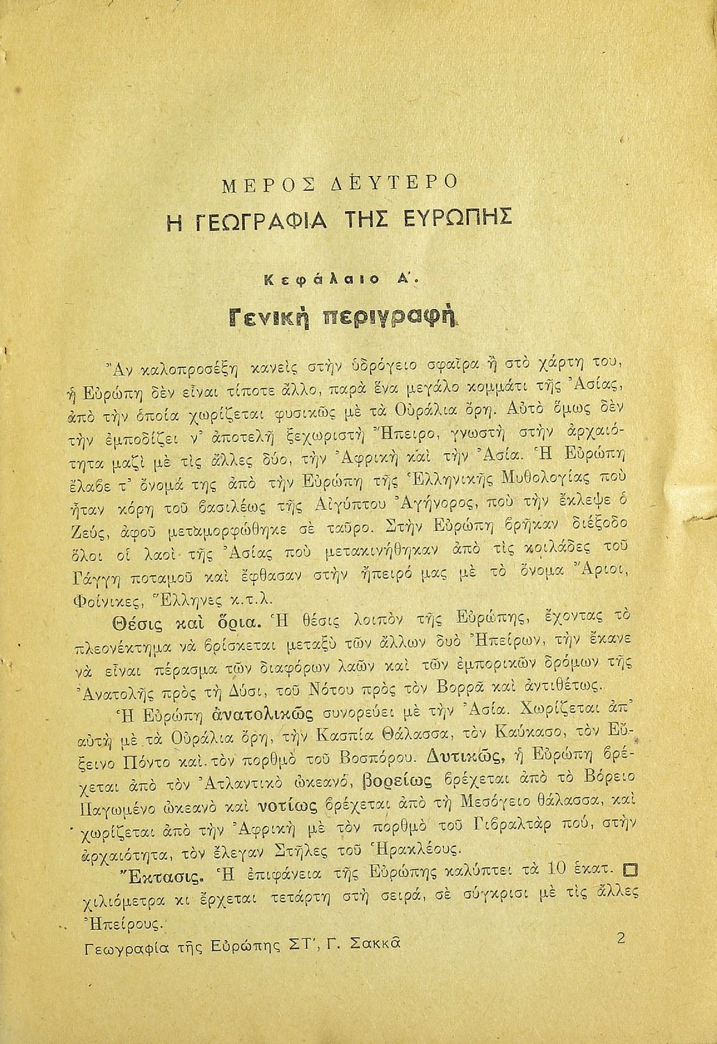 Μαθητικό βοήθημα Γεωγραφίας ΣΤ΄ Γυμνασίου που περιέχει στοιχεία φυσικής και μαθηματικής γεωγραφίας και εξετάζει τα κράτη της Ευρώπη από γεωφυσική, πολιτική και οικονομική άποψη. Περιλαμβάνει και στοιχεία ανθρωπογεωγραφίας.