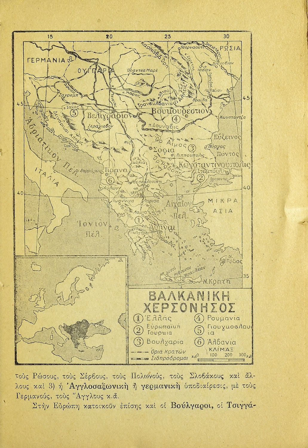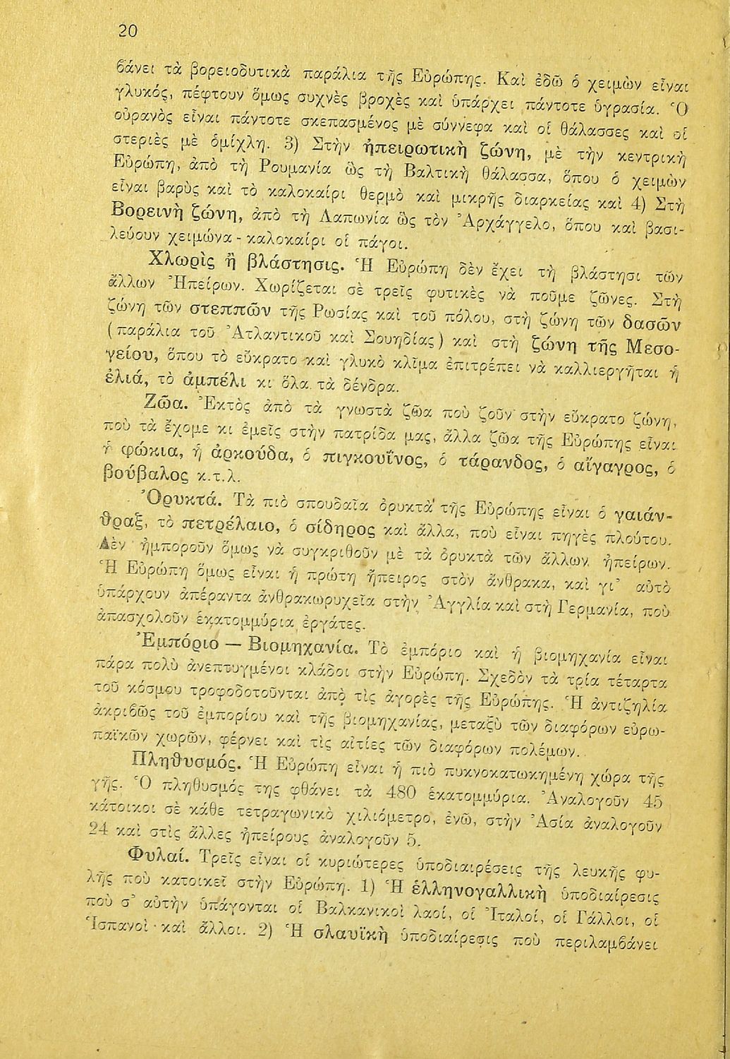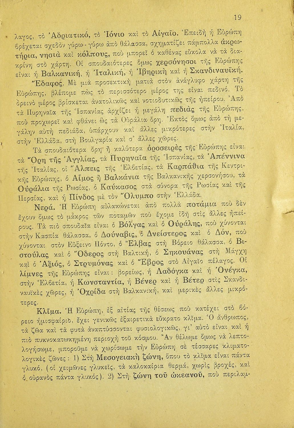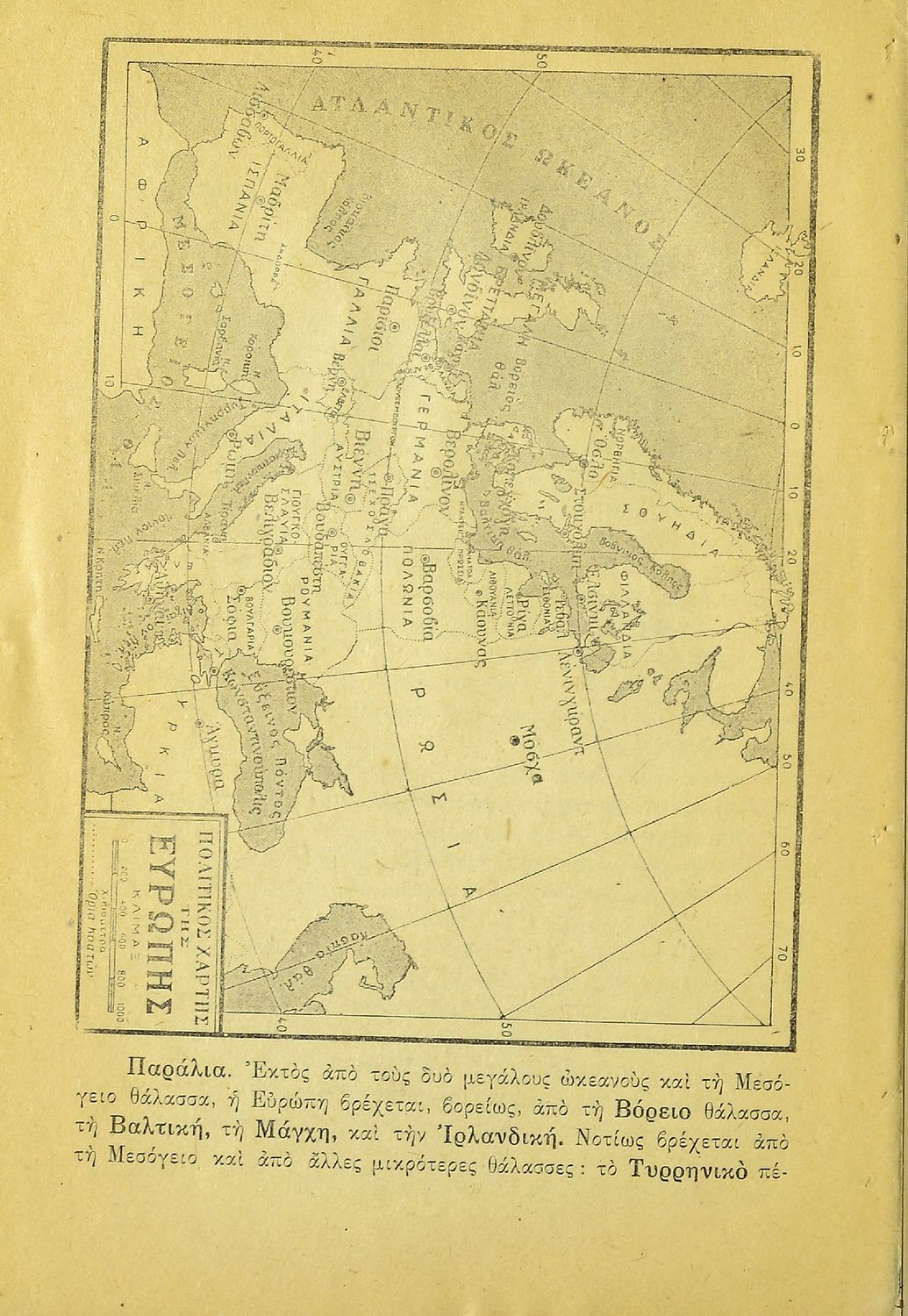 Βαθμίδα εκπαίδευσης: Πρωτοβάθμια Τάξη: ΣΤ' Δημοτικού Μάθημα: Γεωγραφία Γλώσσα: Απλή καθαρεύουσα Παρουσίαση περιεχομένου: Μαθητικό βοήθημα Γεωγραφίας ΣΤ΄ Γυμνασίου που περιέχει στοιχεία φυσικής και μαθηματικής γεωγραφίας και εξετάζει τα κράτη της Ευρώπη από γεωφυσική, πολιτική και οικονομική άποψη. Περιλαμβάνει και στοιχεία ανθρωπογεωγραφίας. |