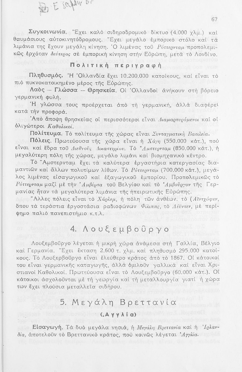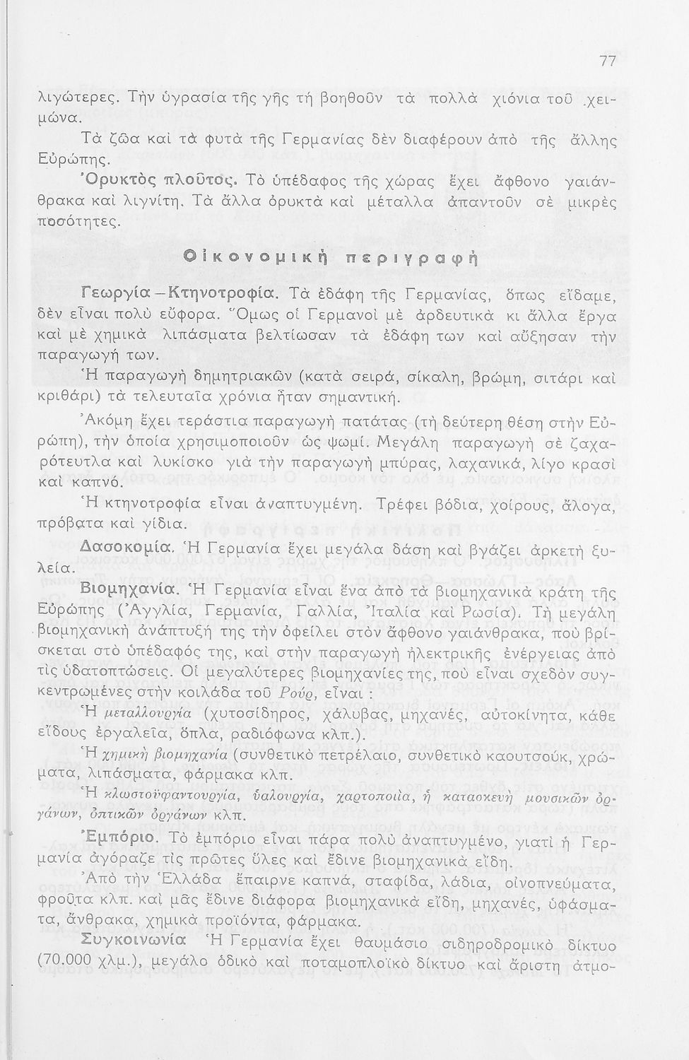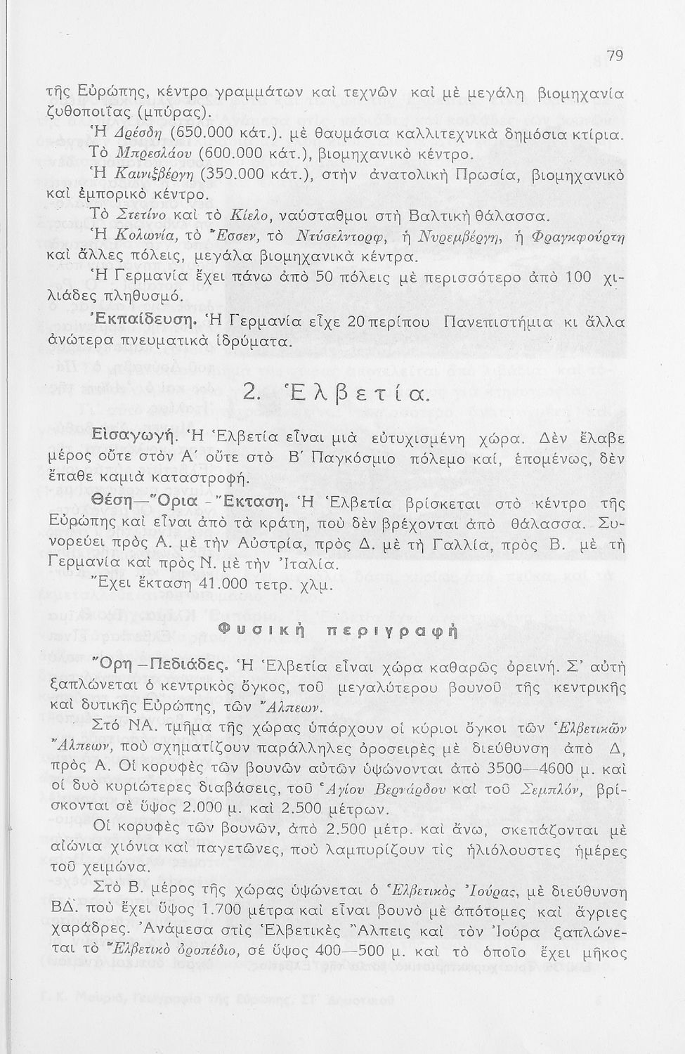 Βαθμίδα εκπαίδευσης: Πρωτοβάθμια Τάξη: ΣΤ' Δημοτικού Μάθημα: Γεωγραφία Γλώσσα: Δημοτική με στοιχεία καθαρεύουσας Παρουσίαση περιεχομένου: Μαθητικό βοήθημα Γεωγραφίας ΣΤ΄ Γυμνασίου που περιέχει στοιχεία φυσικής και μαθηματικής γεωγραφίας και εξετάζει τα κράτη της Ευρώπη από γεωφυσική, πολιτική και οικονομική άποψη. Περιλαμβάνει και στοιχεία ανθρωπογεωγραφίας. |