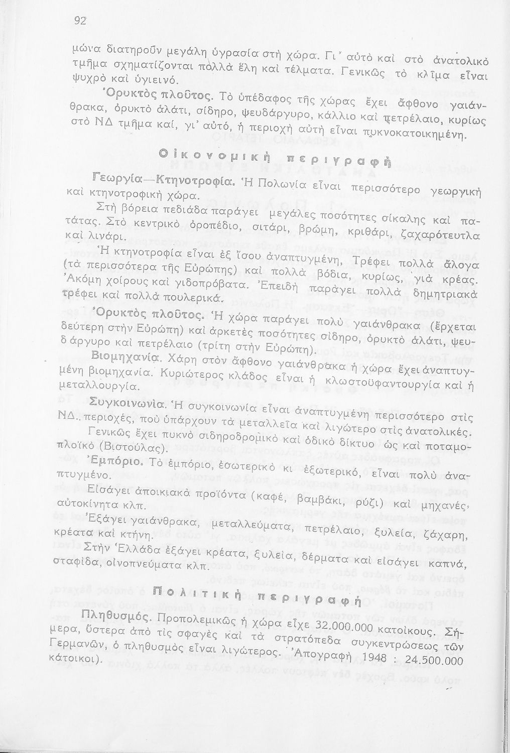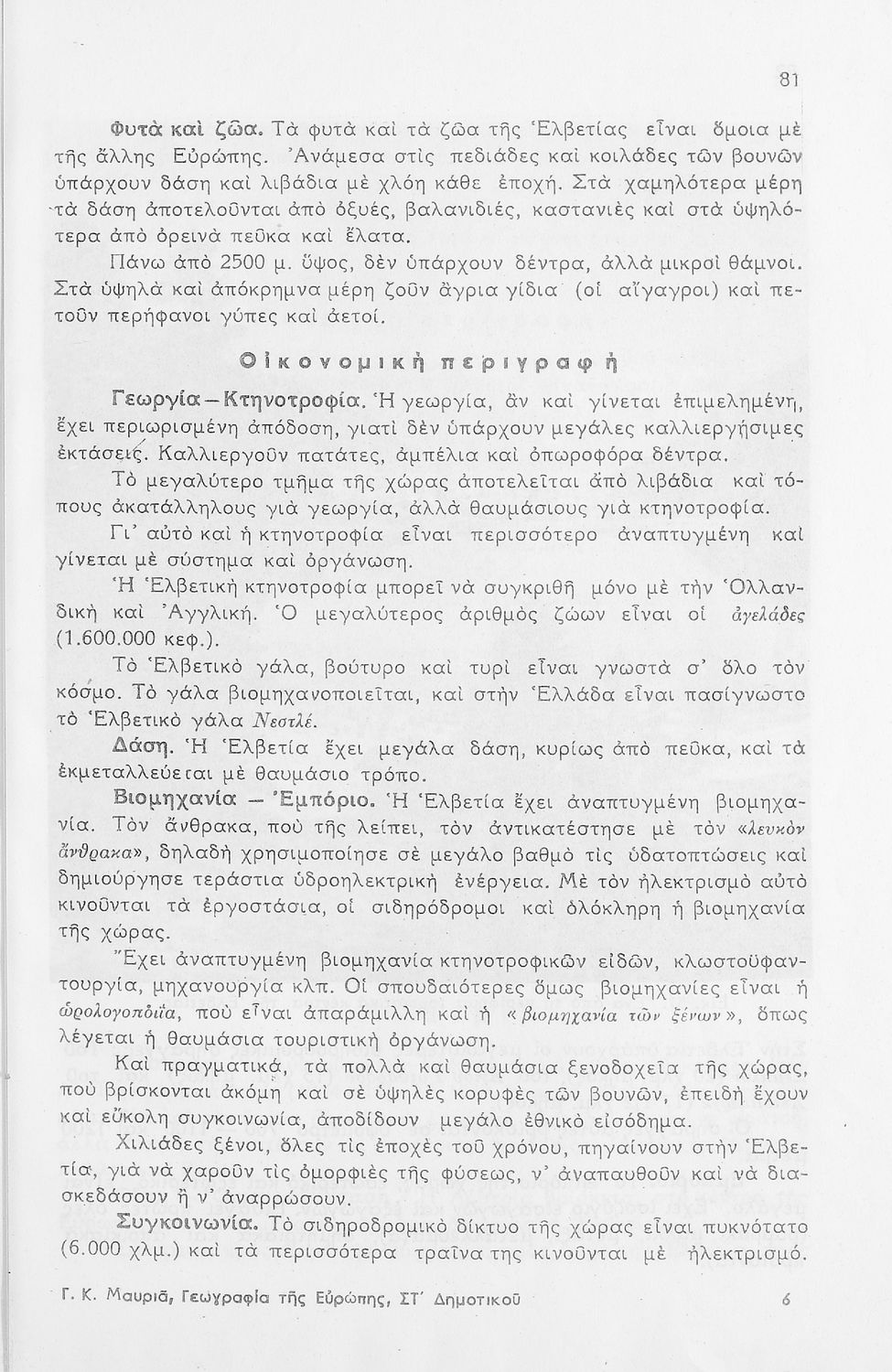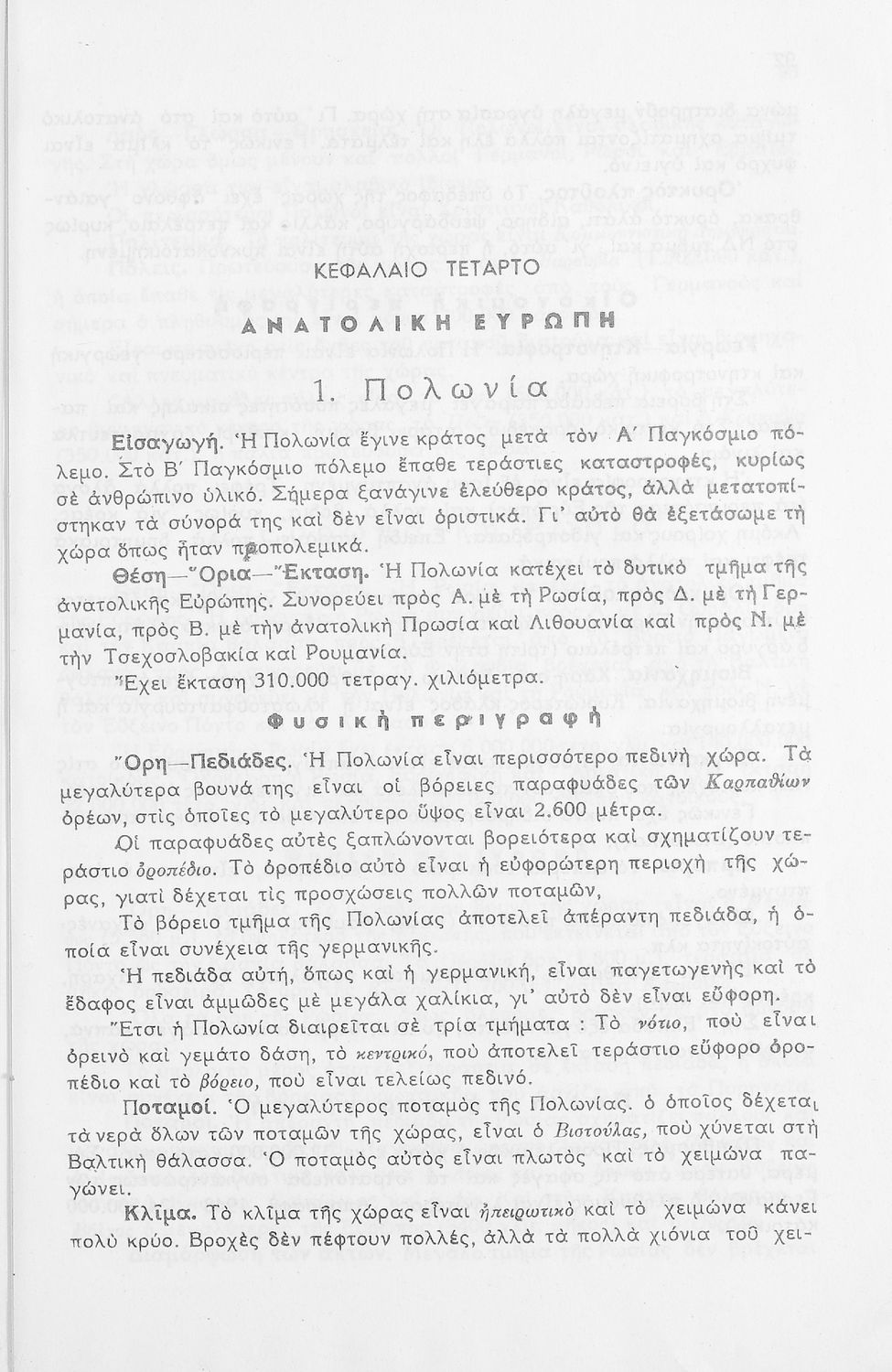 Βαθμίδα εκπαίδευσης: Πρωτοβάθμια Τάξη: ΣΤ' Δημοτικού Μάθημα: Γεωγραφία Γλώσσα: Δημοτική με στοιχεία καθαρεύουσας Παρουσίαση περιεχομένου: Μαθητικό βοήθημα Γεωγραφίας ΣΤ΄ Γυμνασίου που περιέχει στοιχεία φυσικής και μαθηματικής γεωγραφίας και εξετάζει τα κράτη της Ευρώπη από γεωφυσική, πολιτική και οικονομική άποψη. Περιλαμβάνει και στοιχεία ανθρωπογεωγραφίας. |