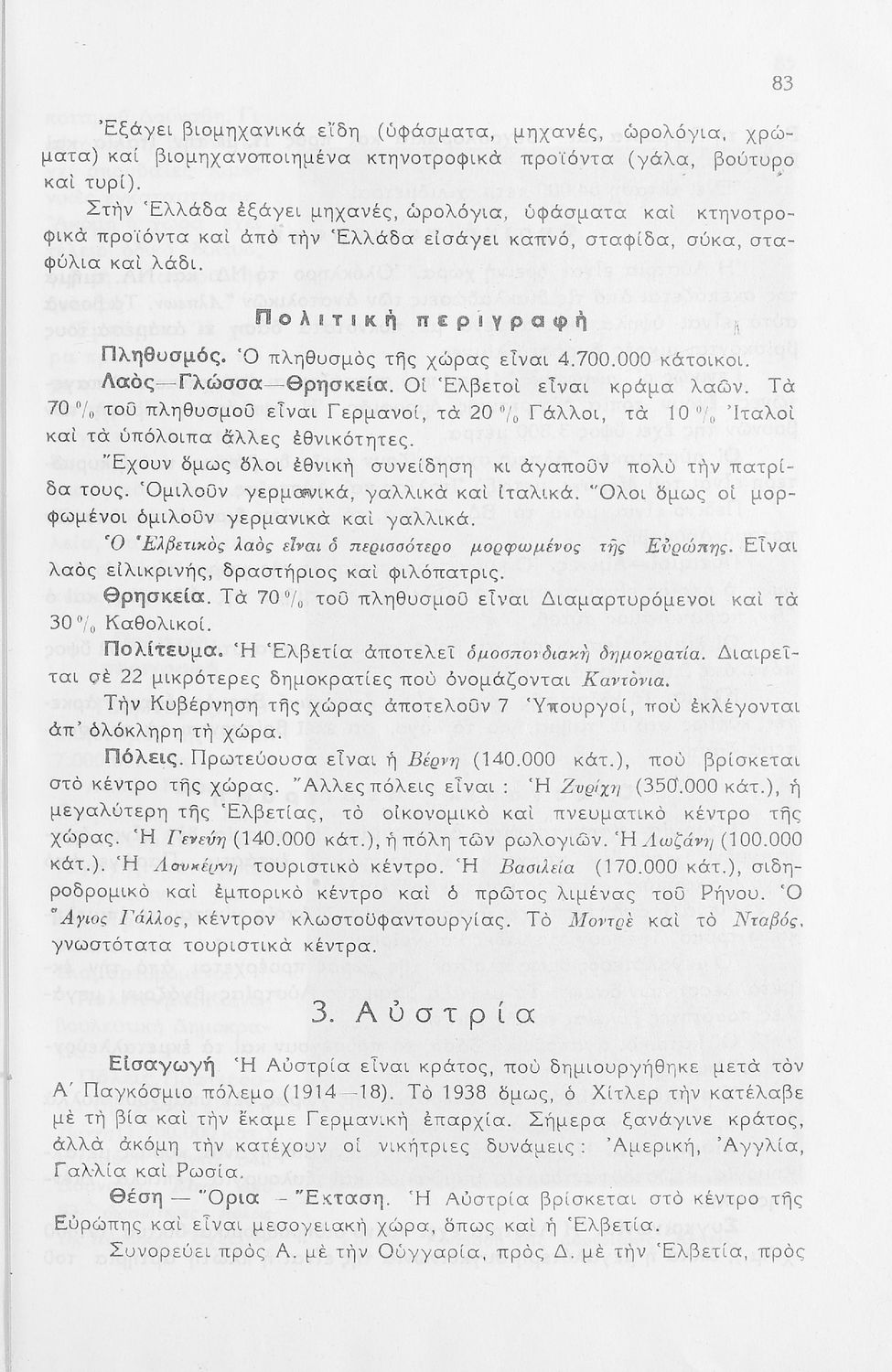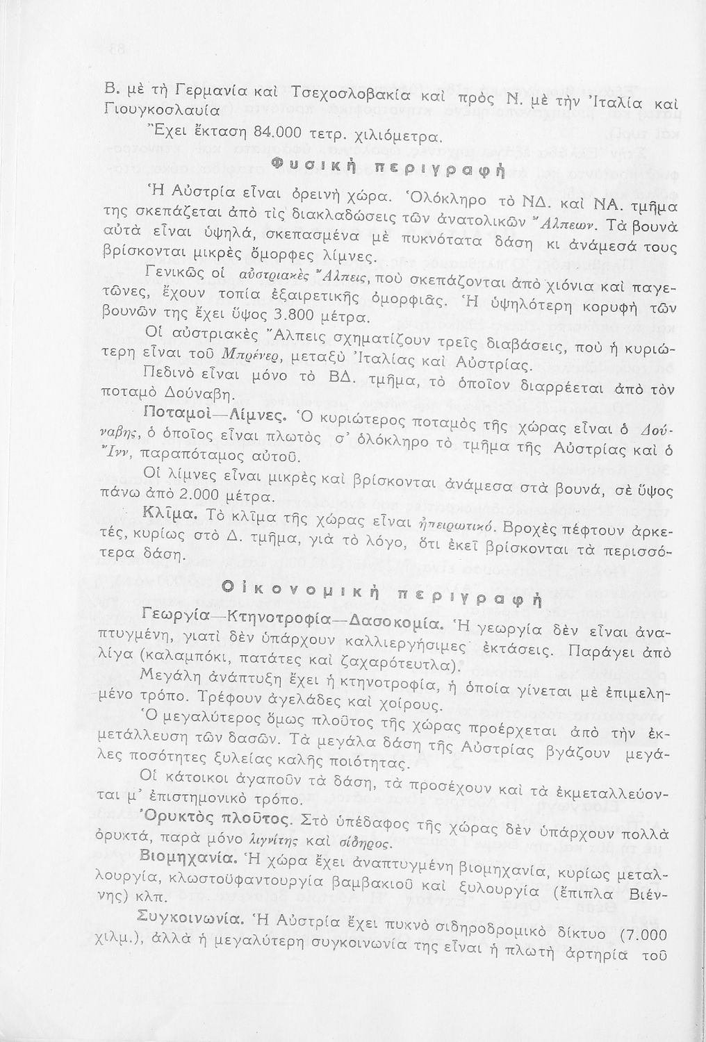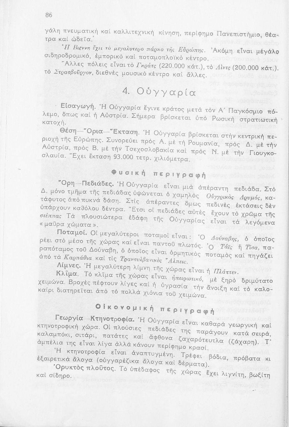 Βαθμίδα εκπαίδευσης: Πρωτοβάθμια Τάξη: ΣΤ' Δημοτικού Μάθημα: Γεωγραφία Γλώσσα: Δημοτική με στοιχεία καθαρεύουσας Παρουσίαση περιεχομένου: Μαθητικό βοήθημα Γεωγραφίας ΣΤ΄ Γυμνασίου που περιέχει στοιχεία φυσικής και μαθηματικής γεωγραφίας και εξετάζει τα κράτη της Ευρώπη από γεωφυσική, πολιτική και οικονομική άποψη. Περιλαμβάνει και στοιχεία ανθρωπογεωγραφίας. |
